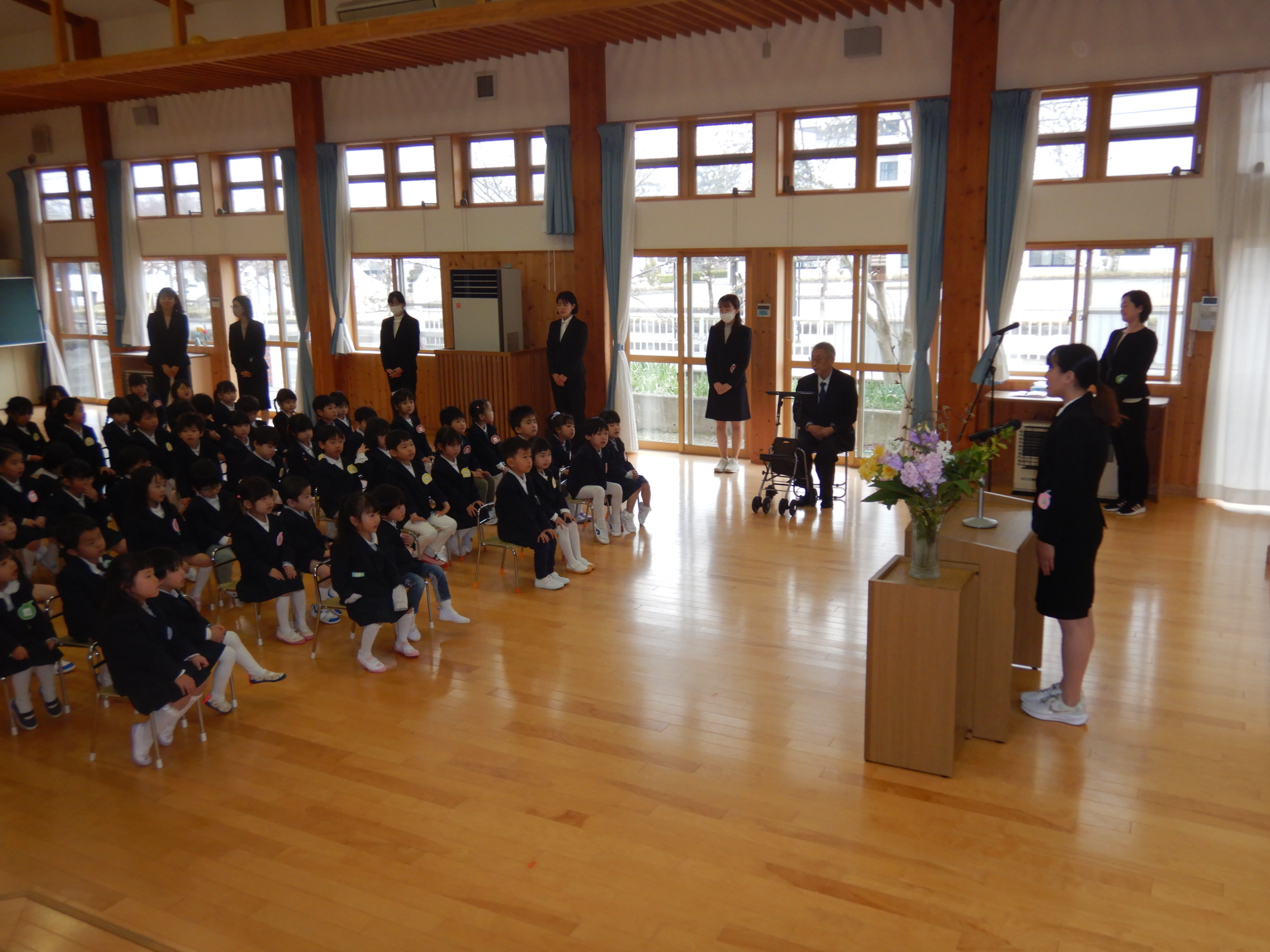胸に新しいバッチ📛を付けてもらい、子ども達の嬉しそうな表情がたくさん見られ、これから始まる新しい生活に期待を膨らませているようです✨また、園長先生や新しいクラスのお友達、担任の先生と「よろしくお願いします!」のご挨拶もとても立派で頼もしく感じました!