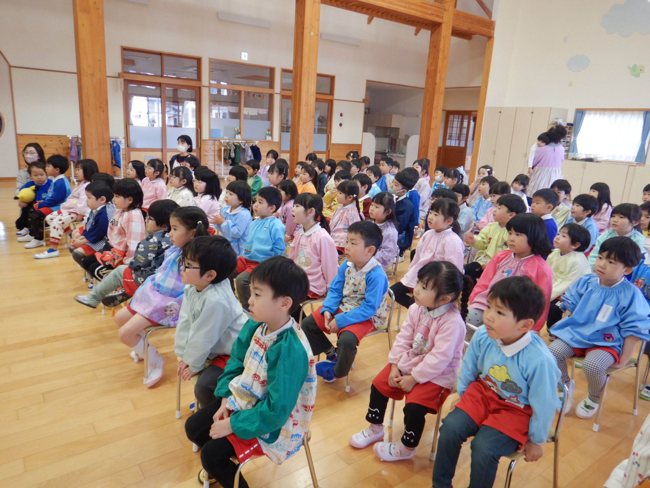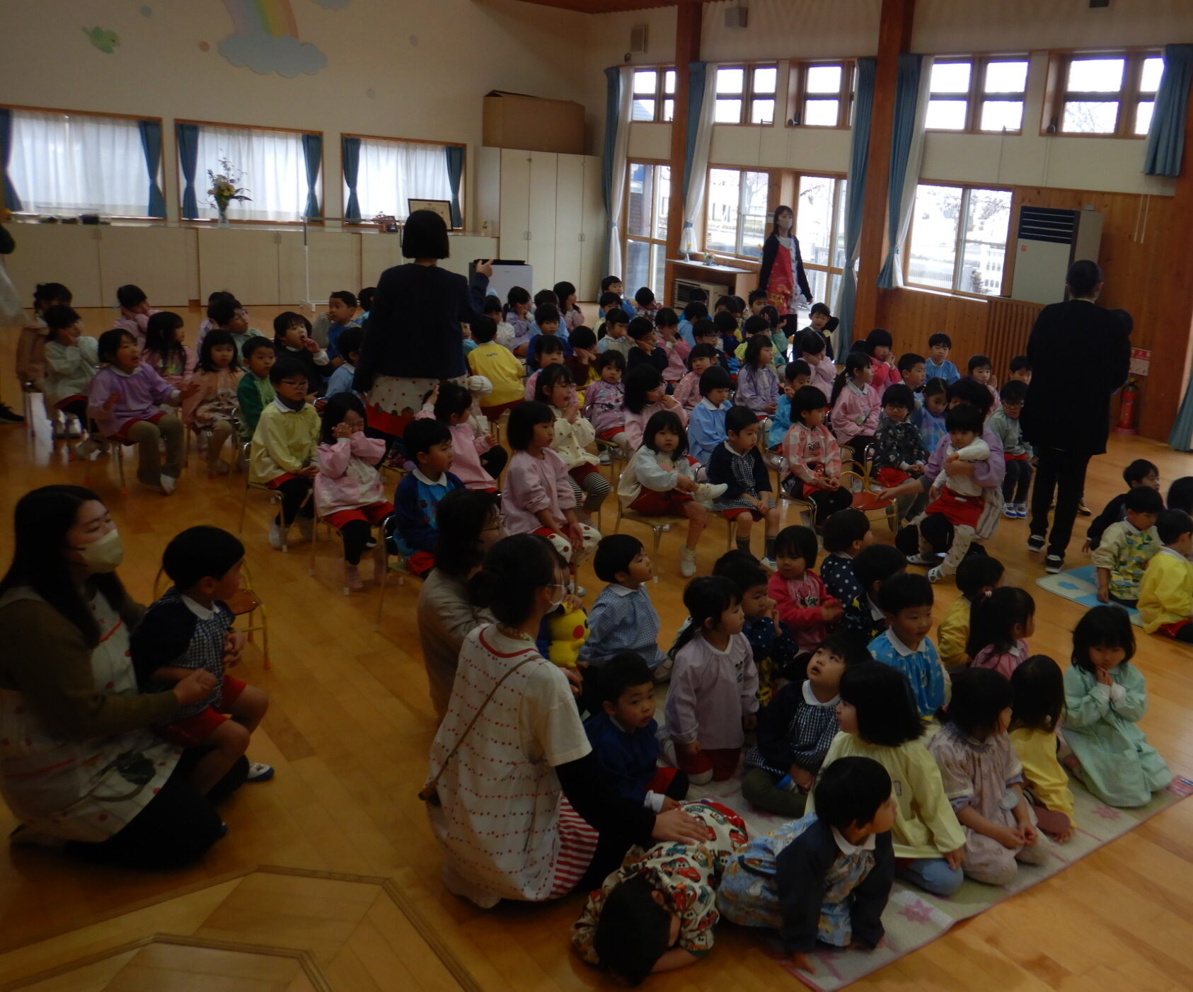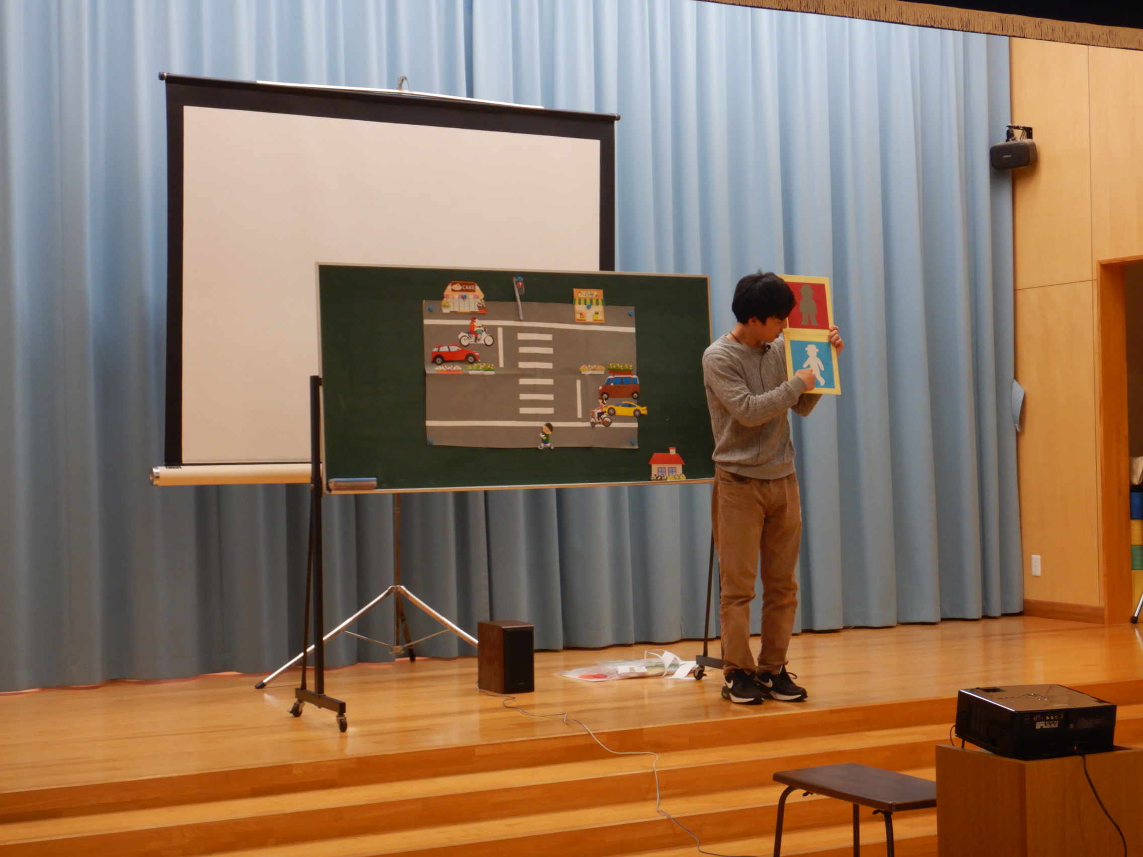 その後は、ホールが映画館に変身して「こぎつねの交通安全」のDVDを視聴しました。🦊