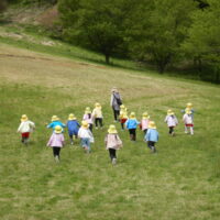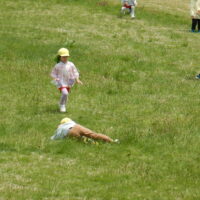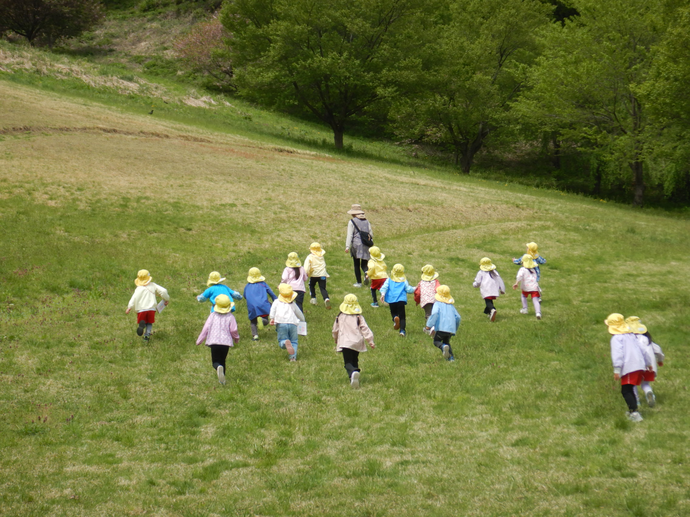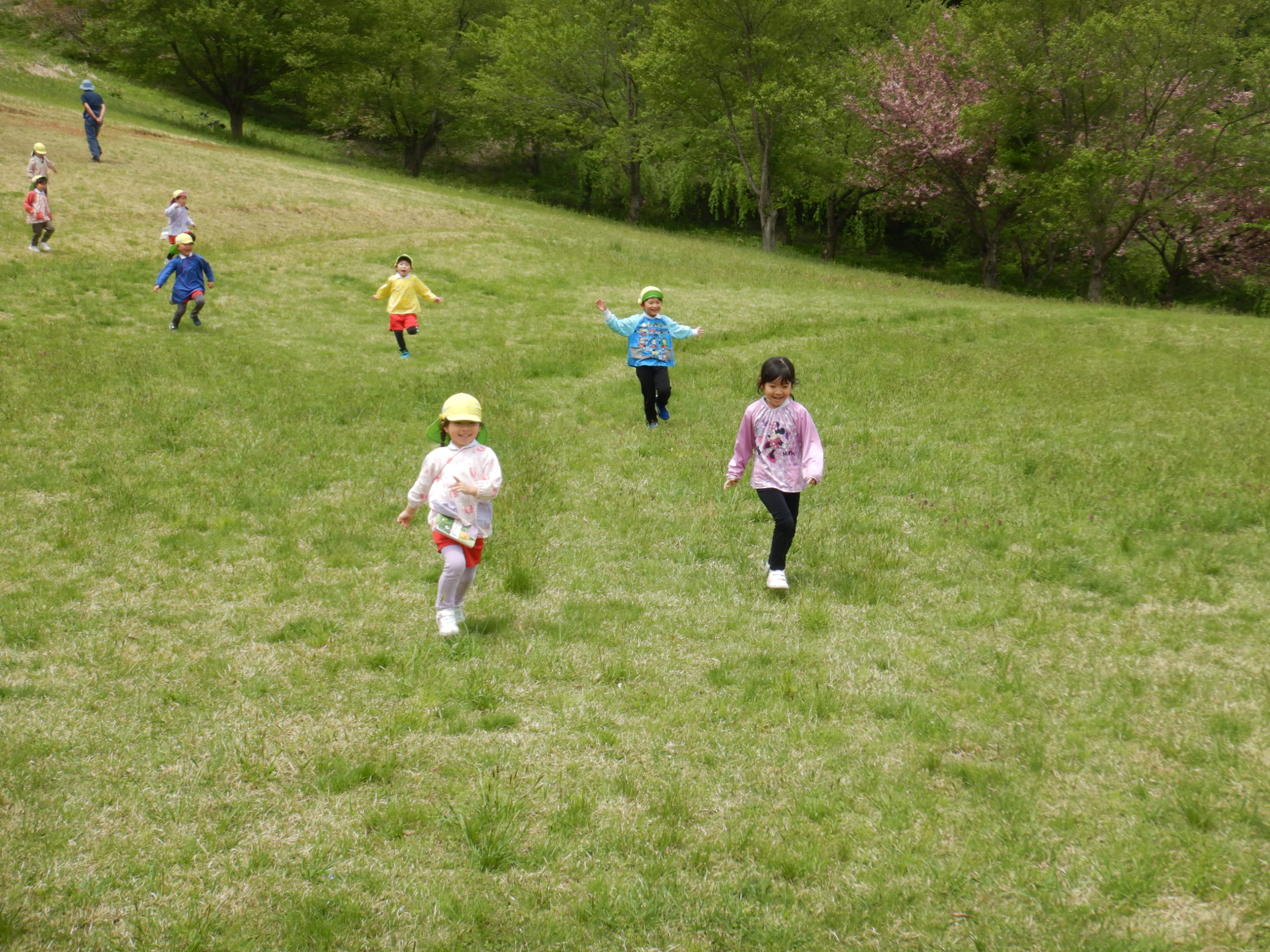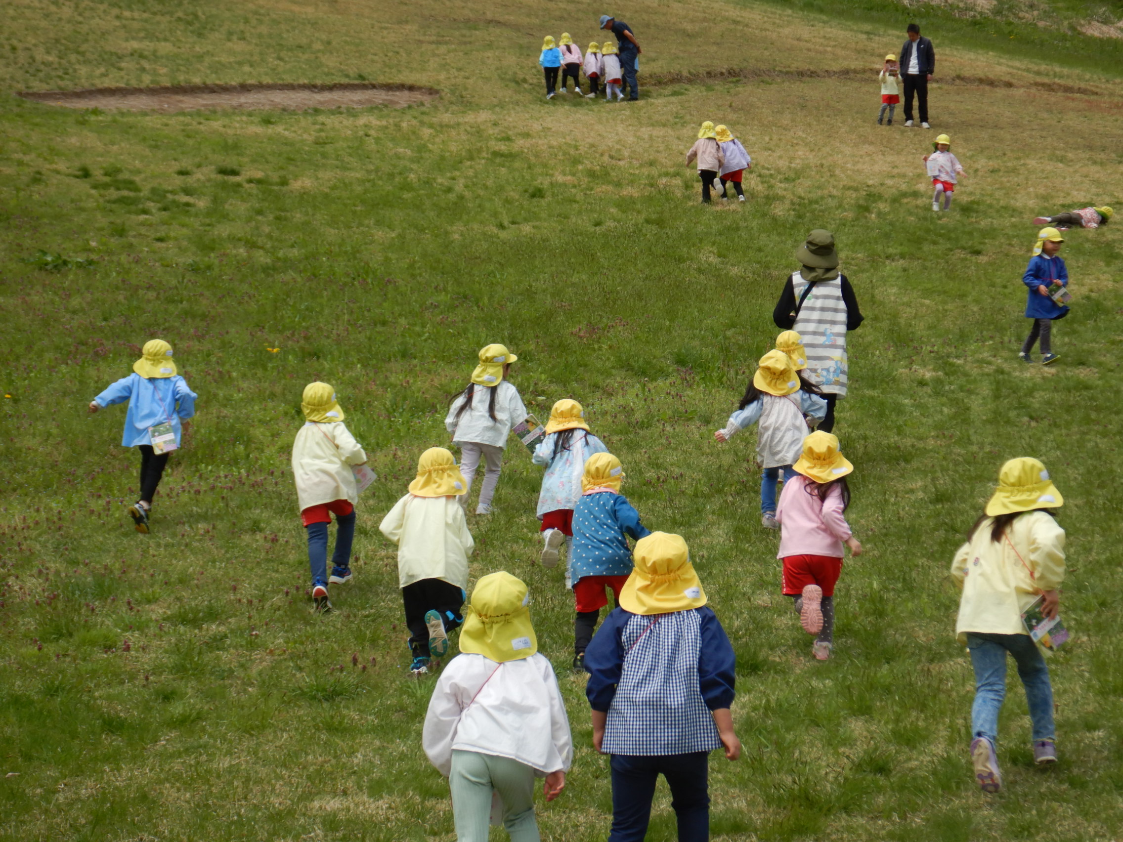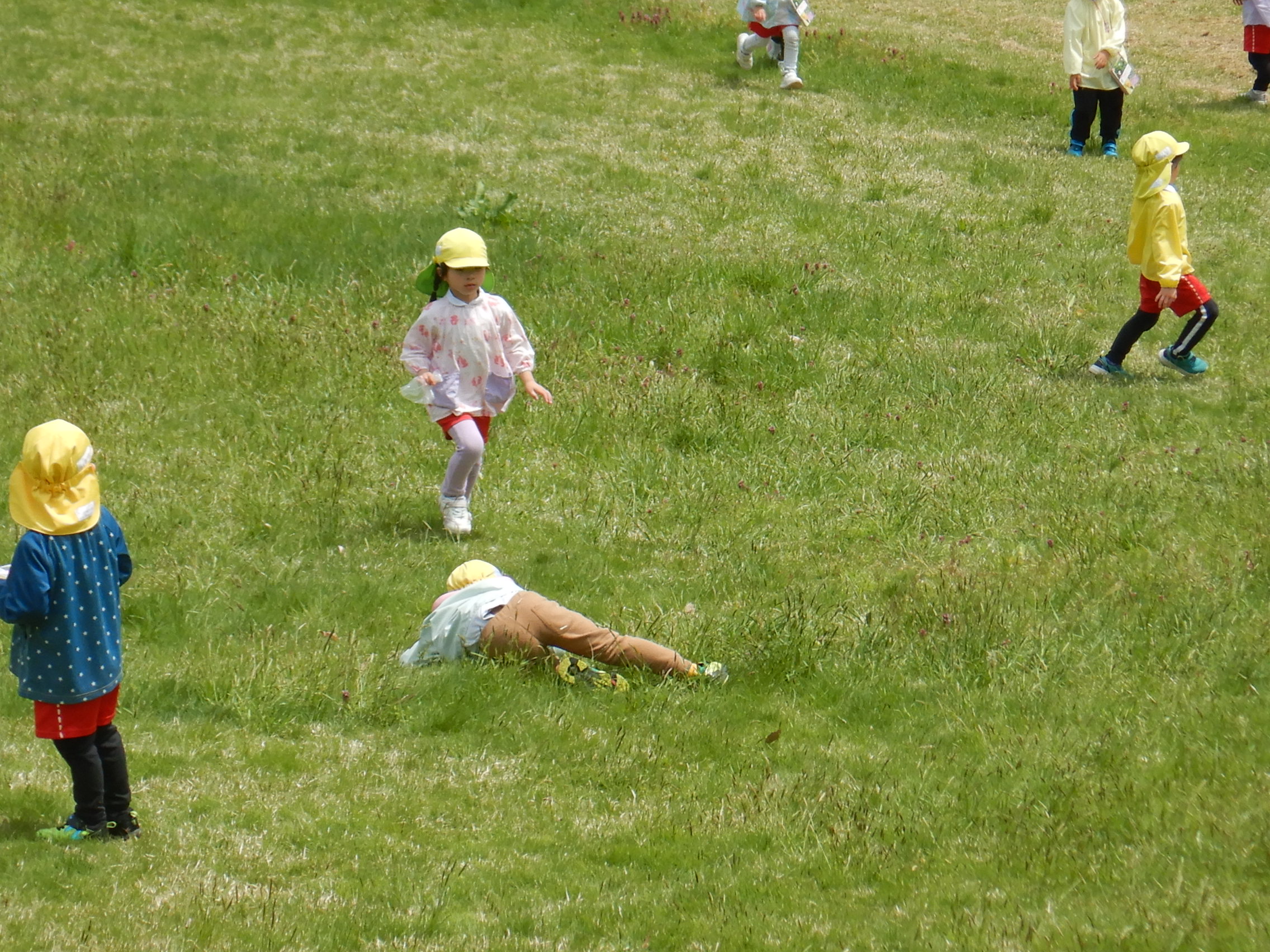 見つけた草花を図鑑で調べ友達と伝え合ったり、坂を登り駆け下りるスピード感を楽しんだり、転がったりと