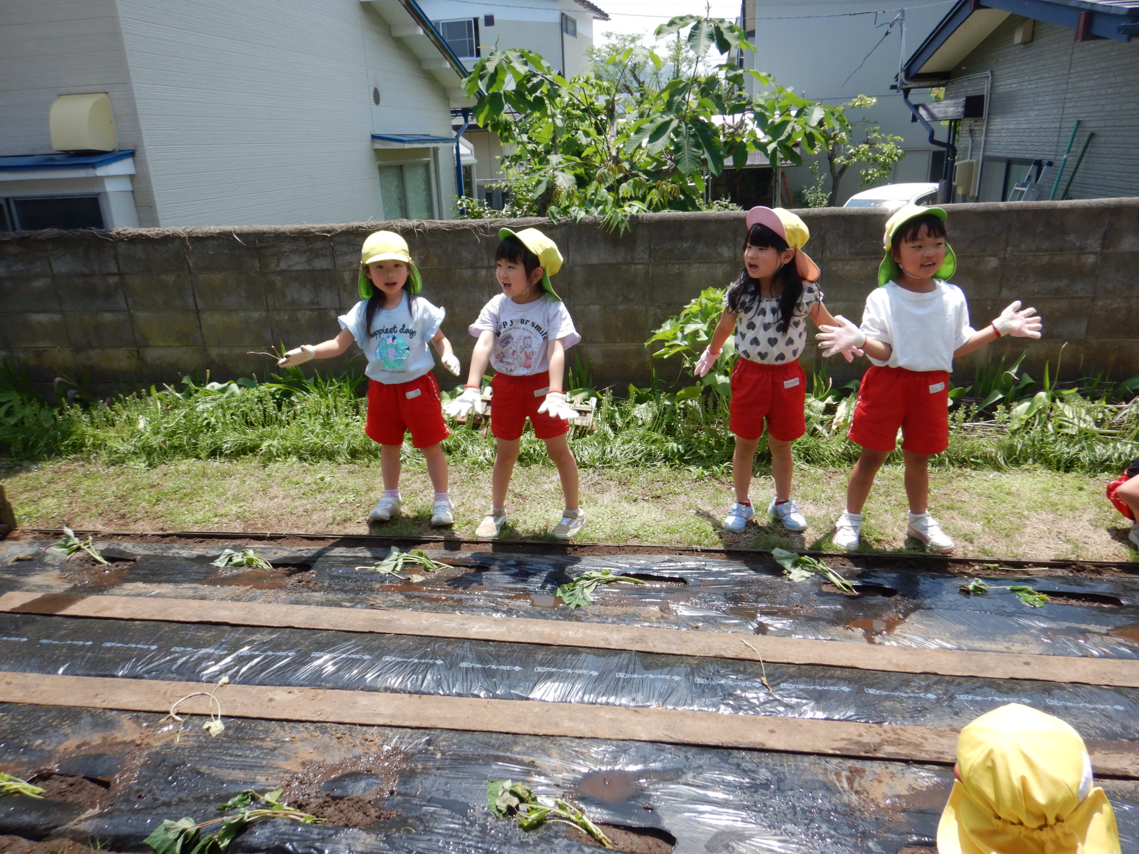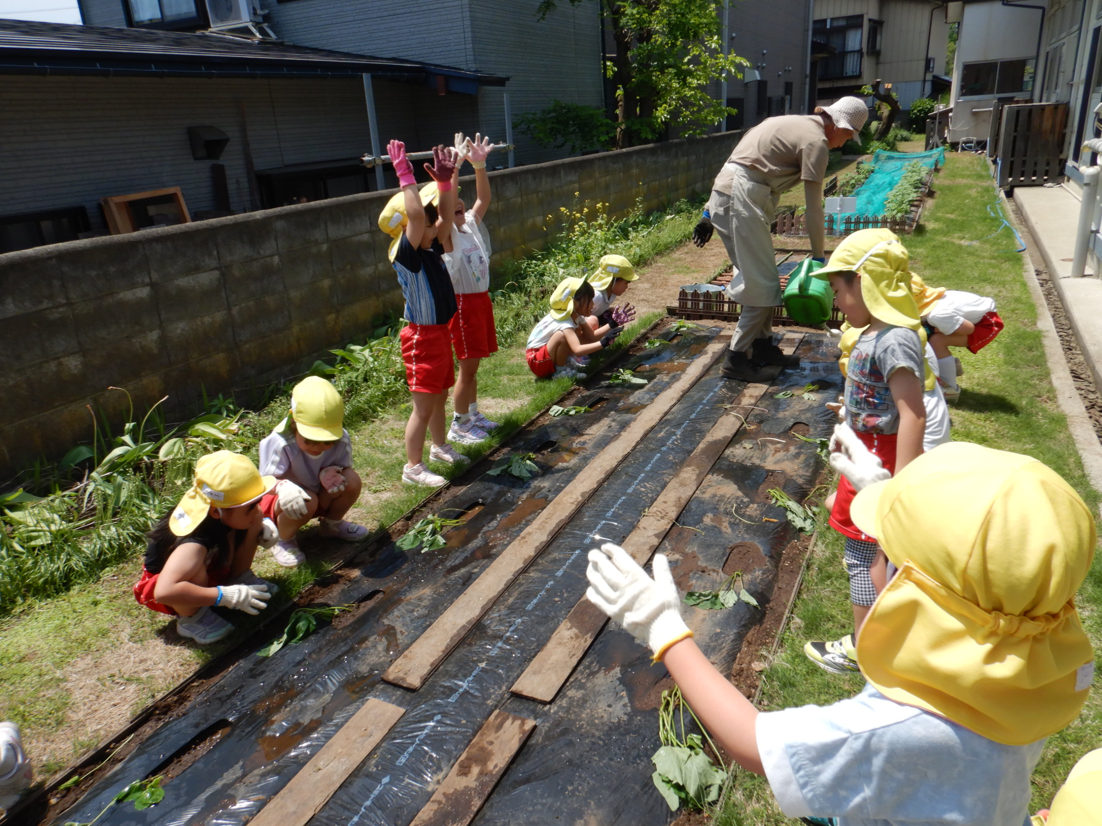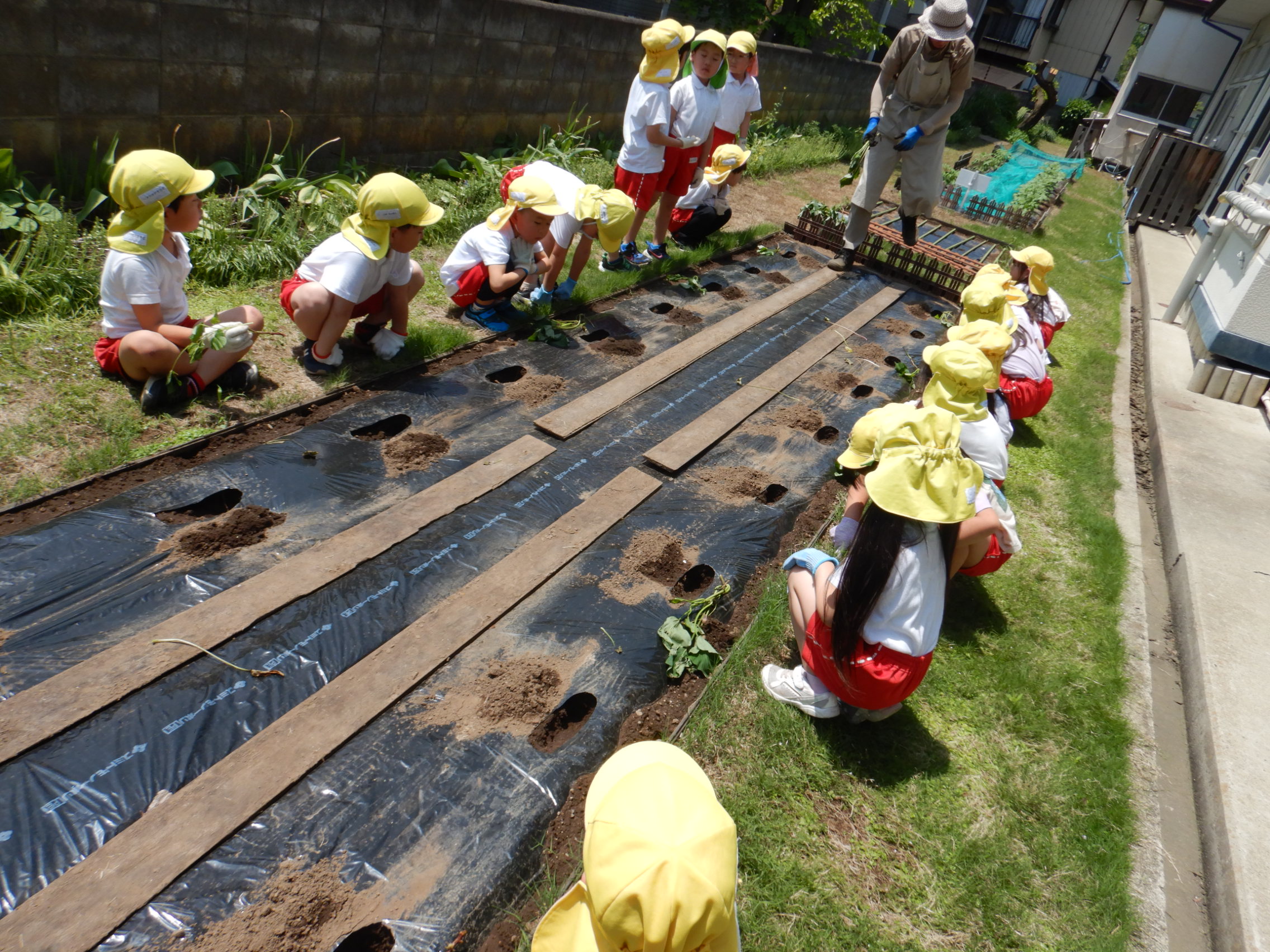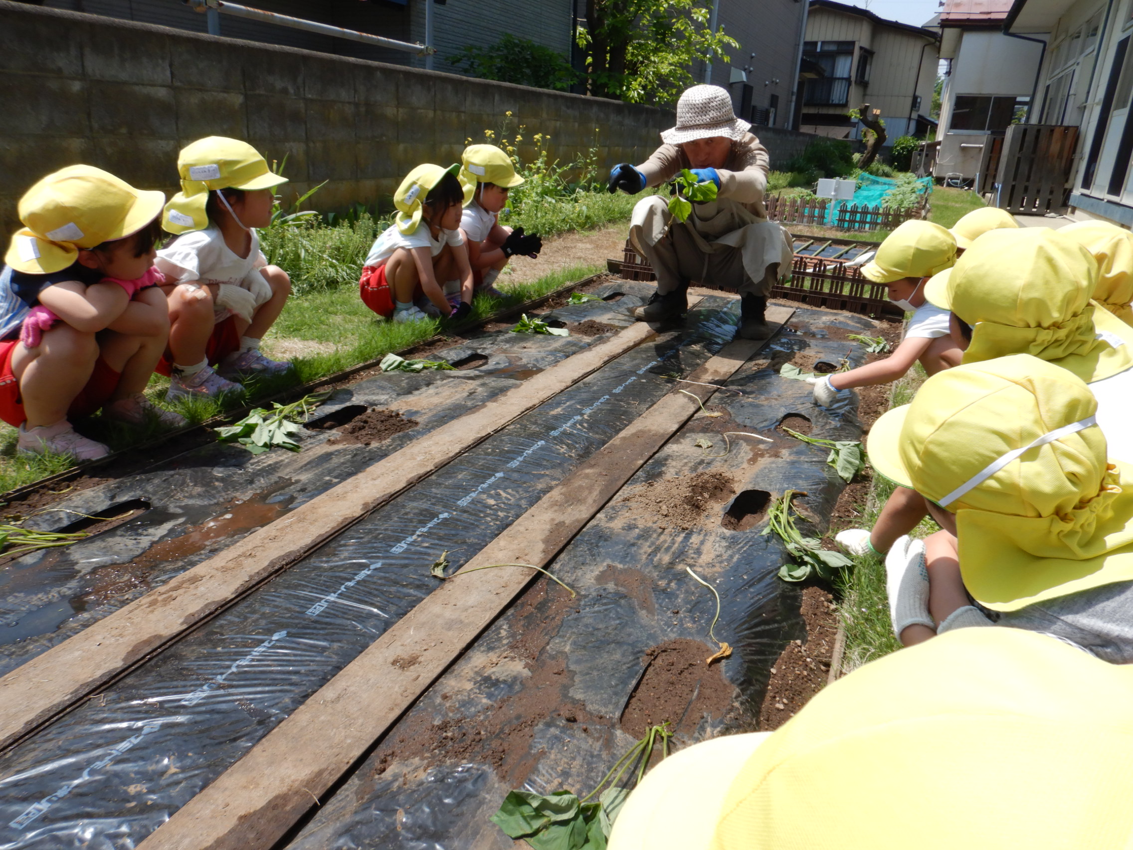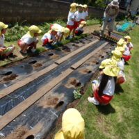 これからじゃがいもと一緒にさつまいももどんな風に大きくなっていくのか、みんなでお世話をしながら観察し生長を見守っていきたいと思います!