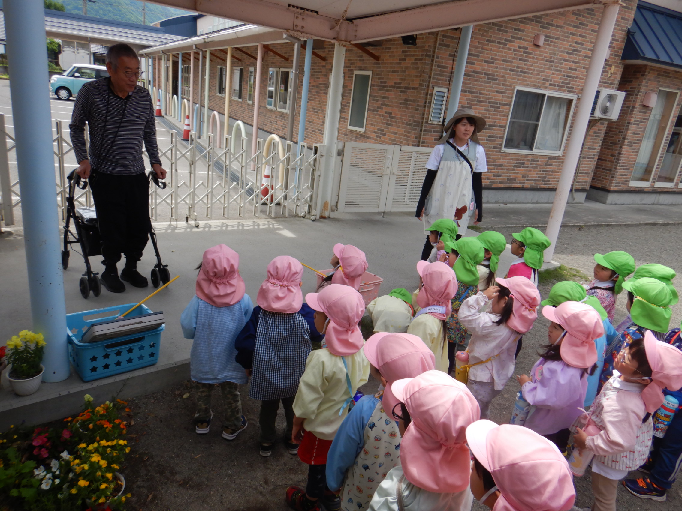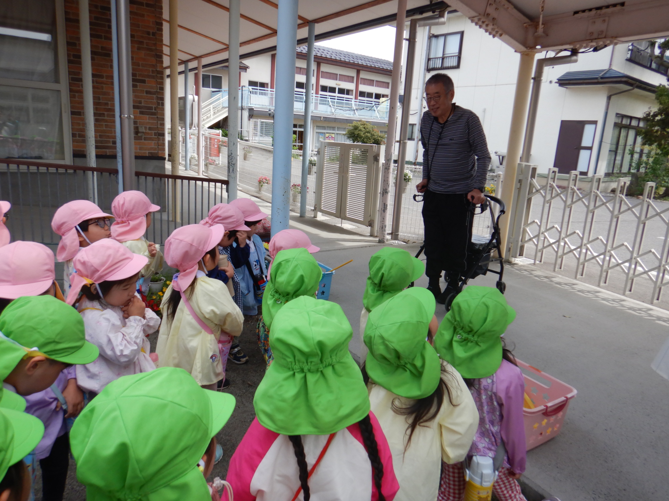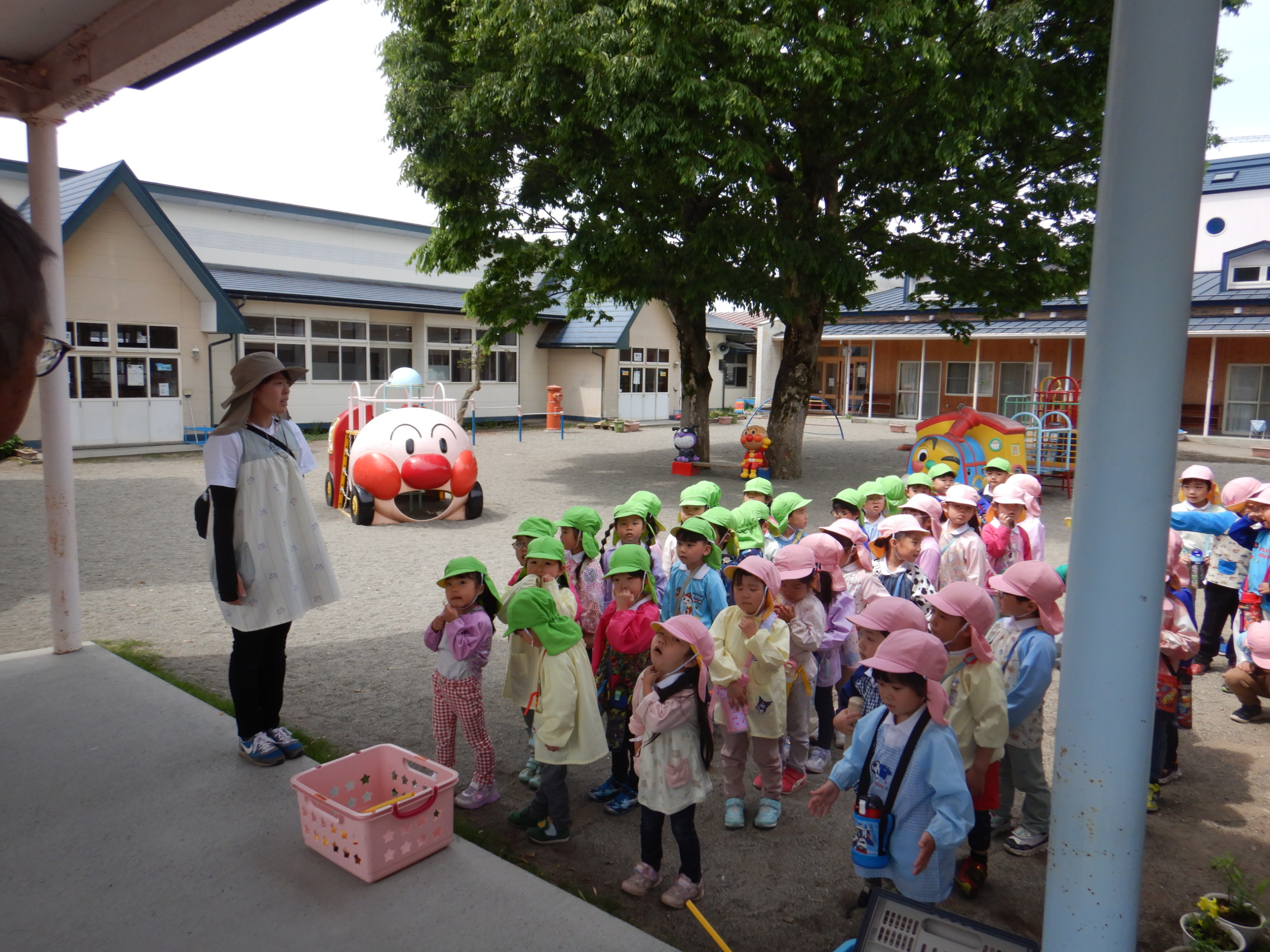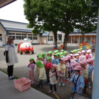 バスの乗り方やこどもの森に着いてからのお約束を確認して、園長先生に「いってきます!!」のご挨拶をしてしゅっぱ~つ🚐