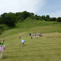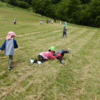 一気に坂を駆け上がったりコロコロ転がったり、たんぽぽの花や小さな花が咲いているのを見つけたり、ダンゴムシを探したり・・・と体いっぱいに自然を満喫!!