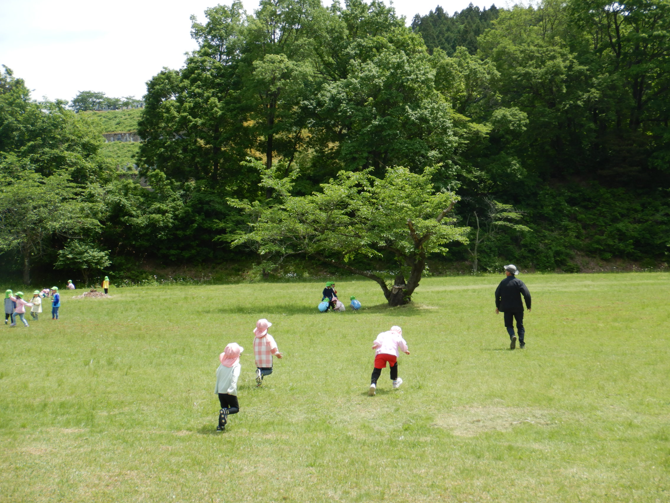 こどもの森に到着すると、広々とした光景に子ども達は「わぁ~~!!!」「ひろ~い!」と大歓声をあげていました😆