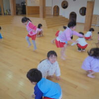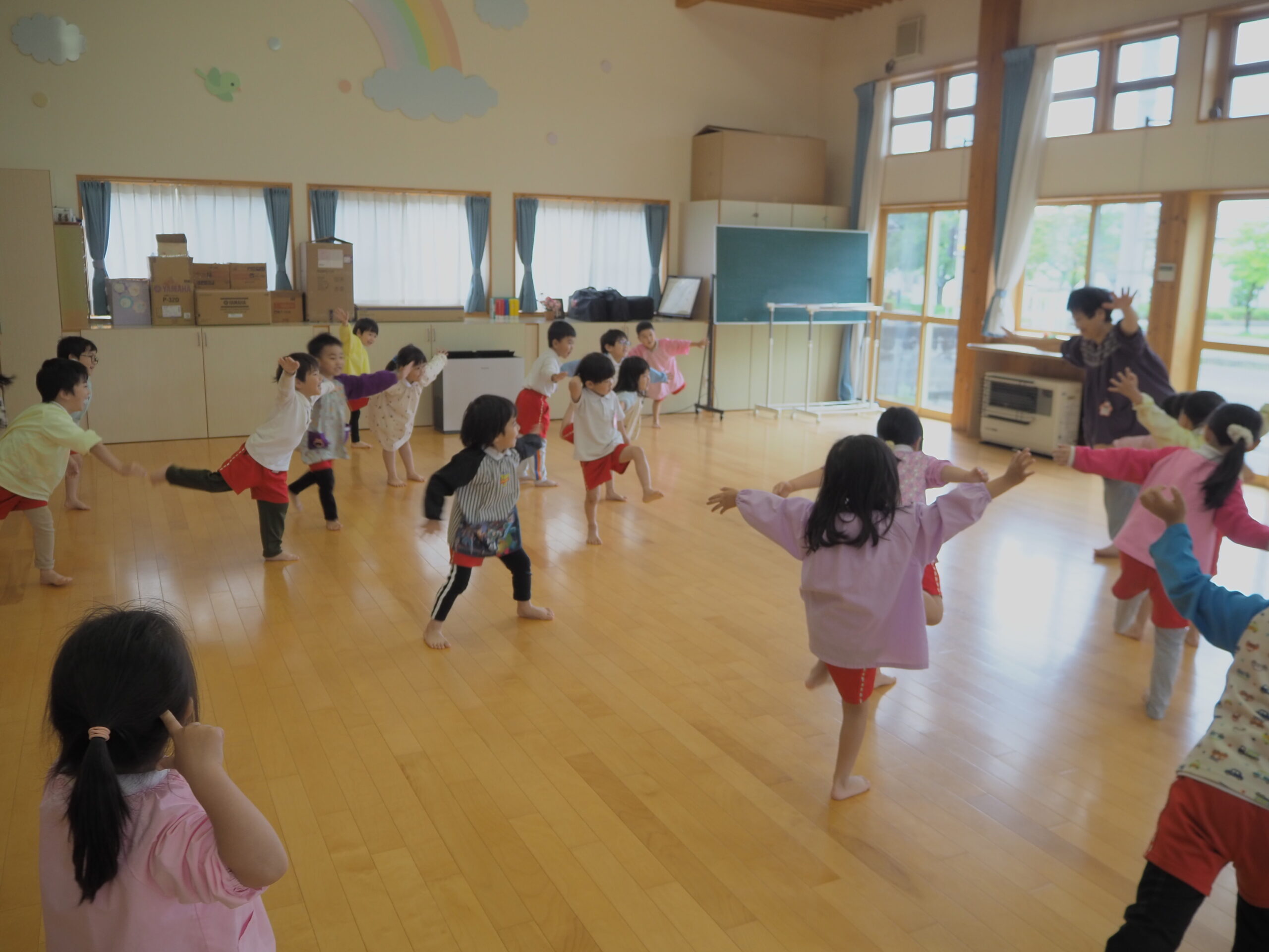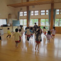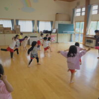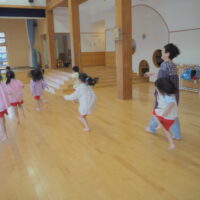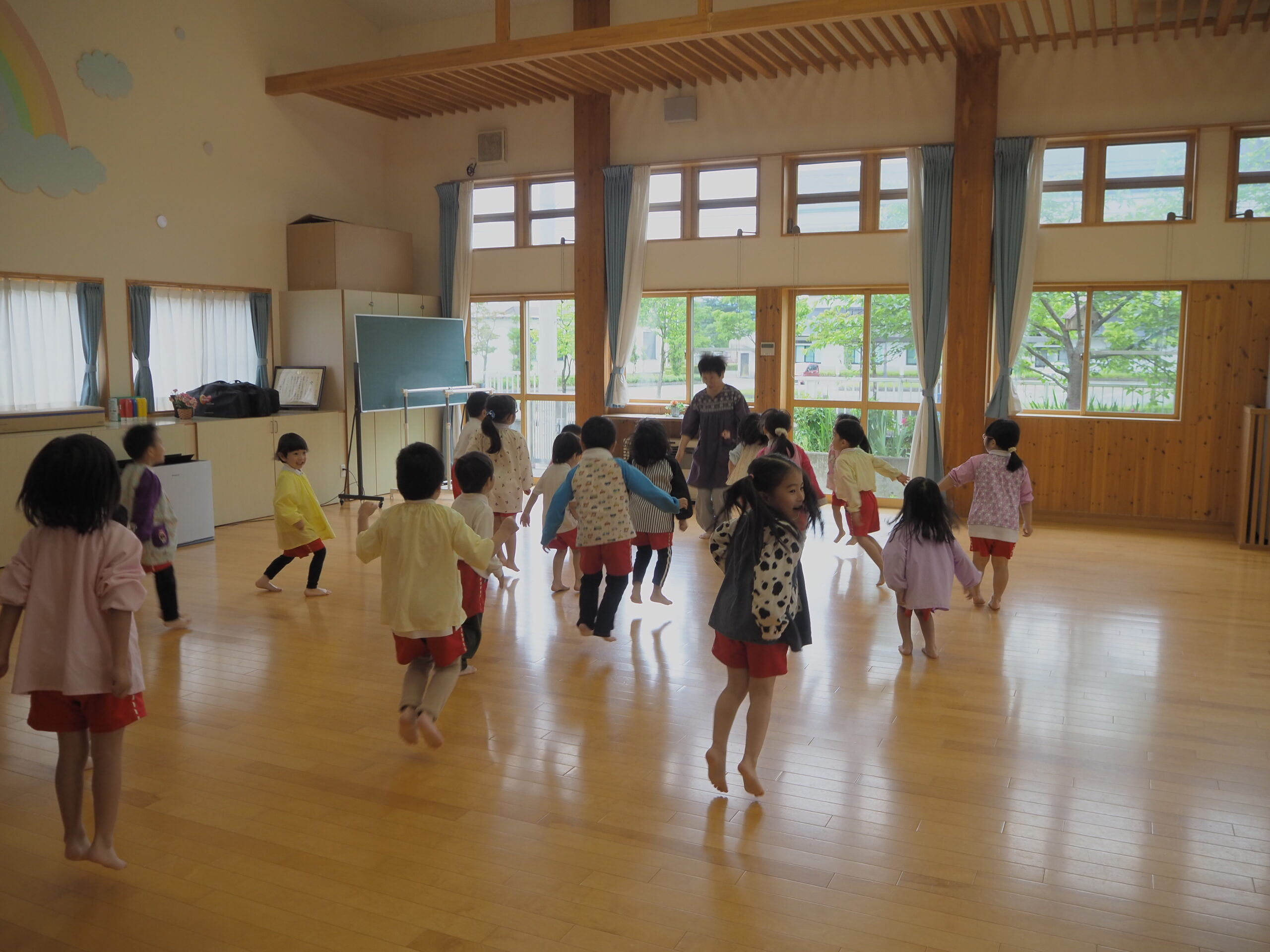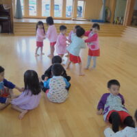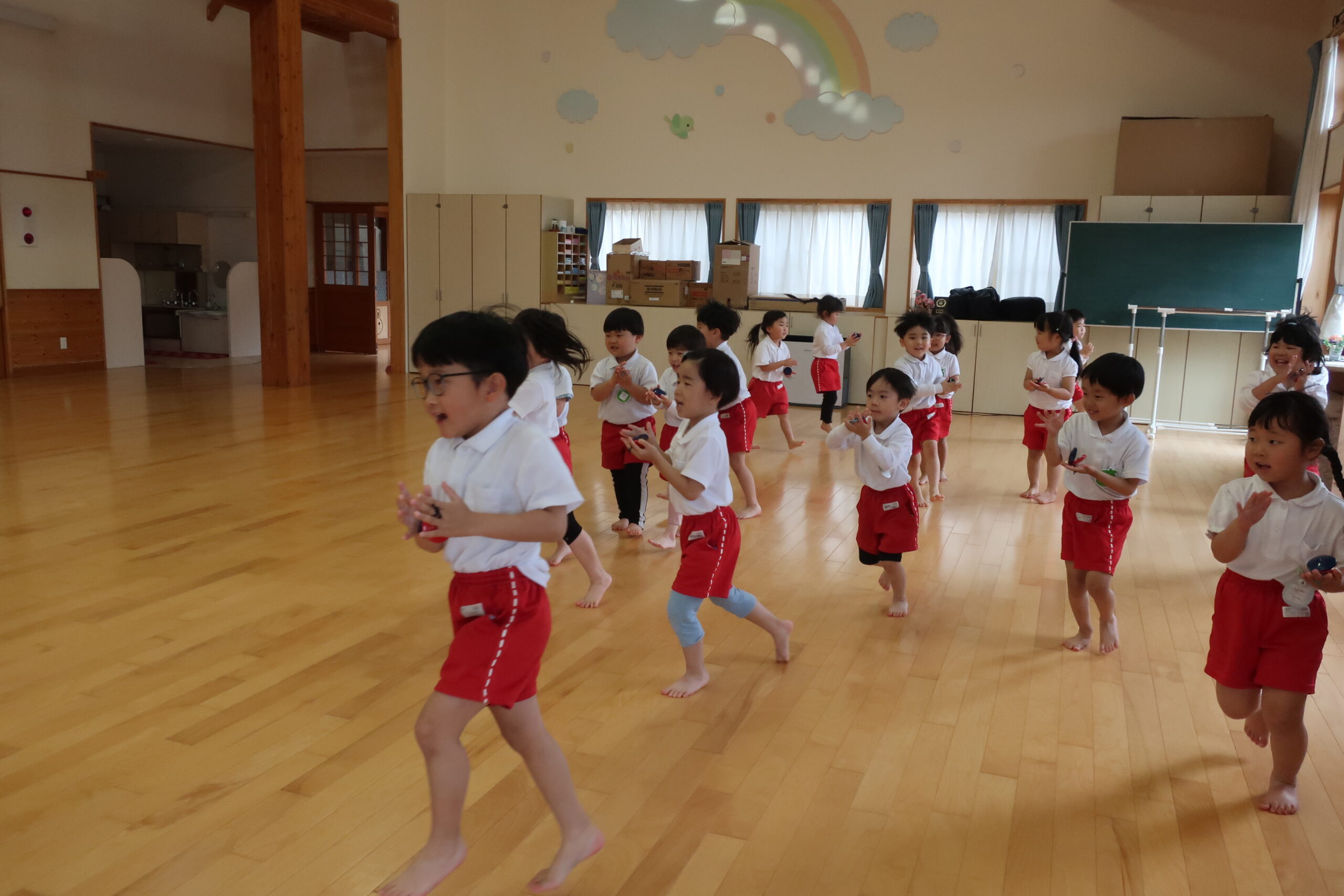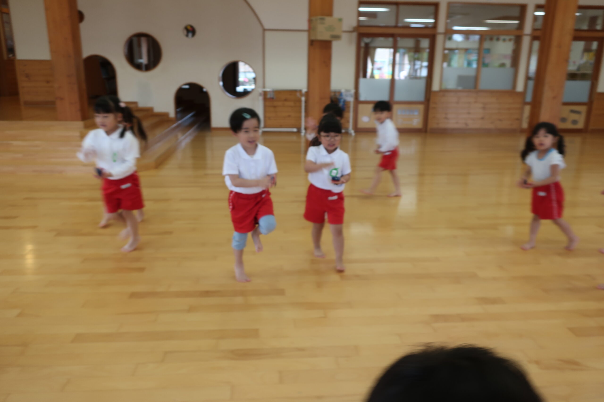 最後にちあき先生がたたいたタンバリンの数に合わせて友達が集まると、円になってユラユラゆれたり、向かい合って手をたたいたりとリズムに合わせてた~くさん身体を動かしました😊たのしかったね!