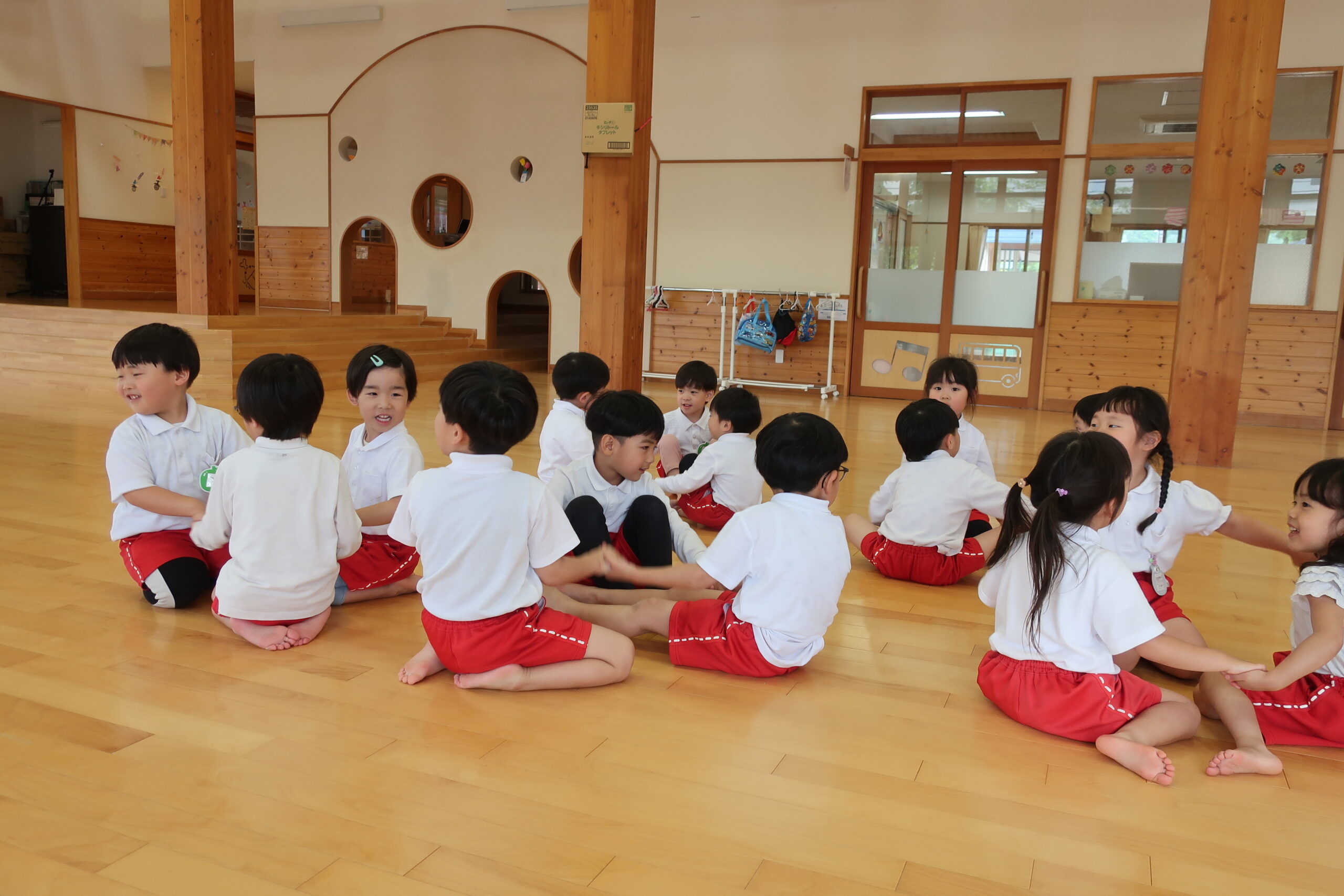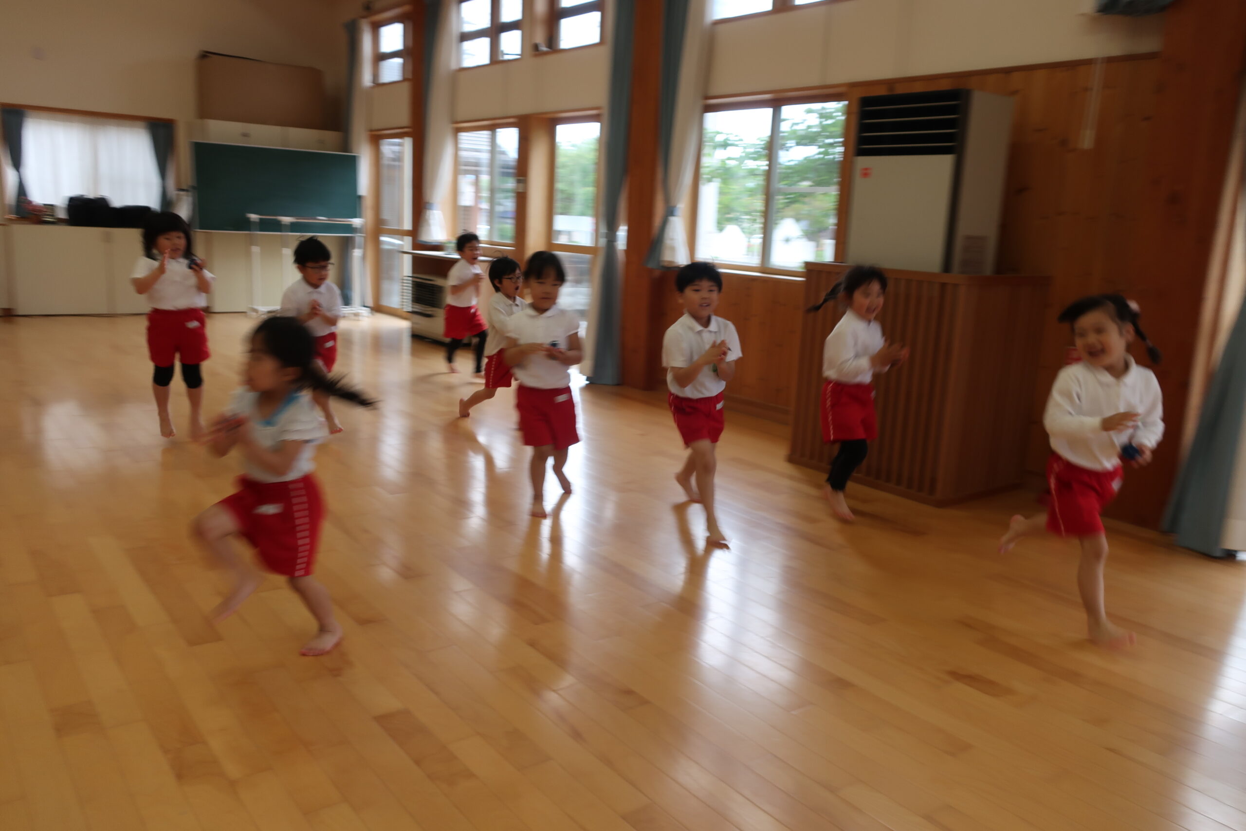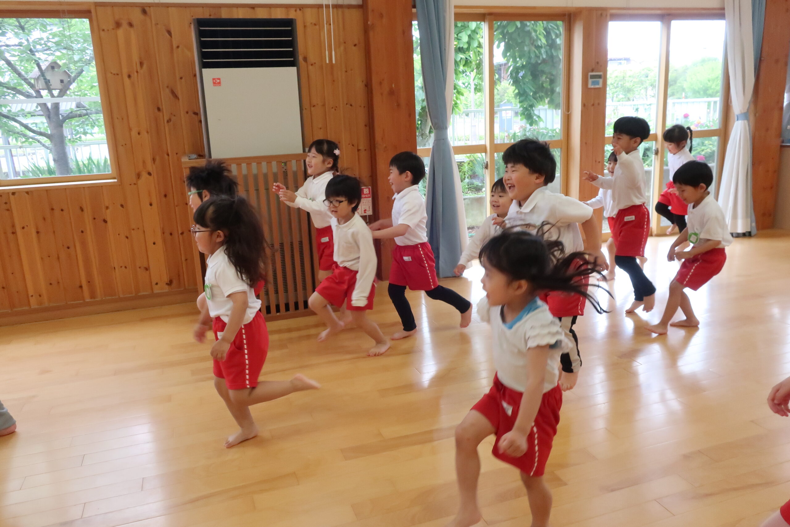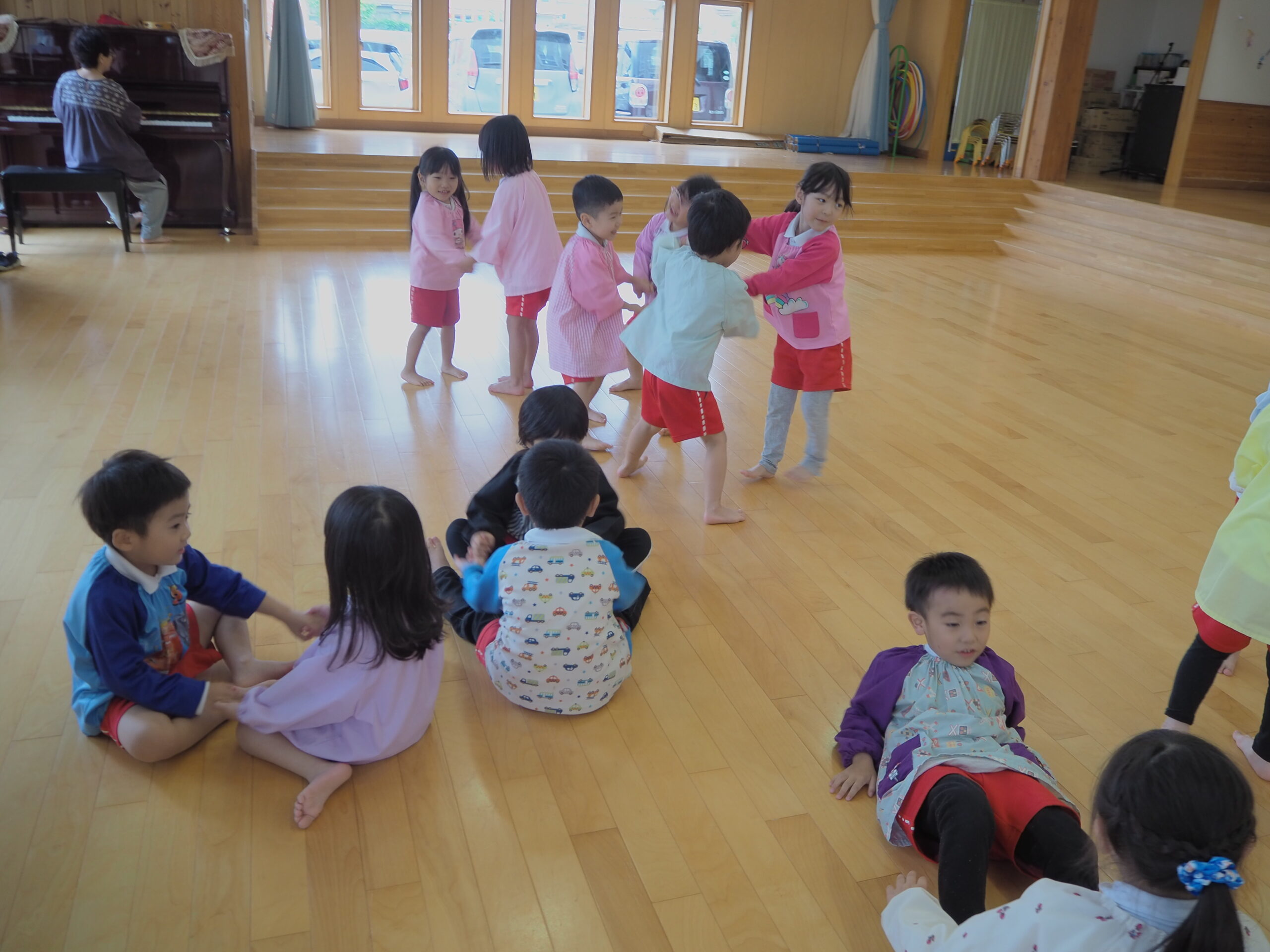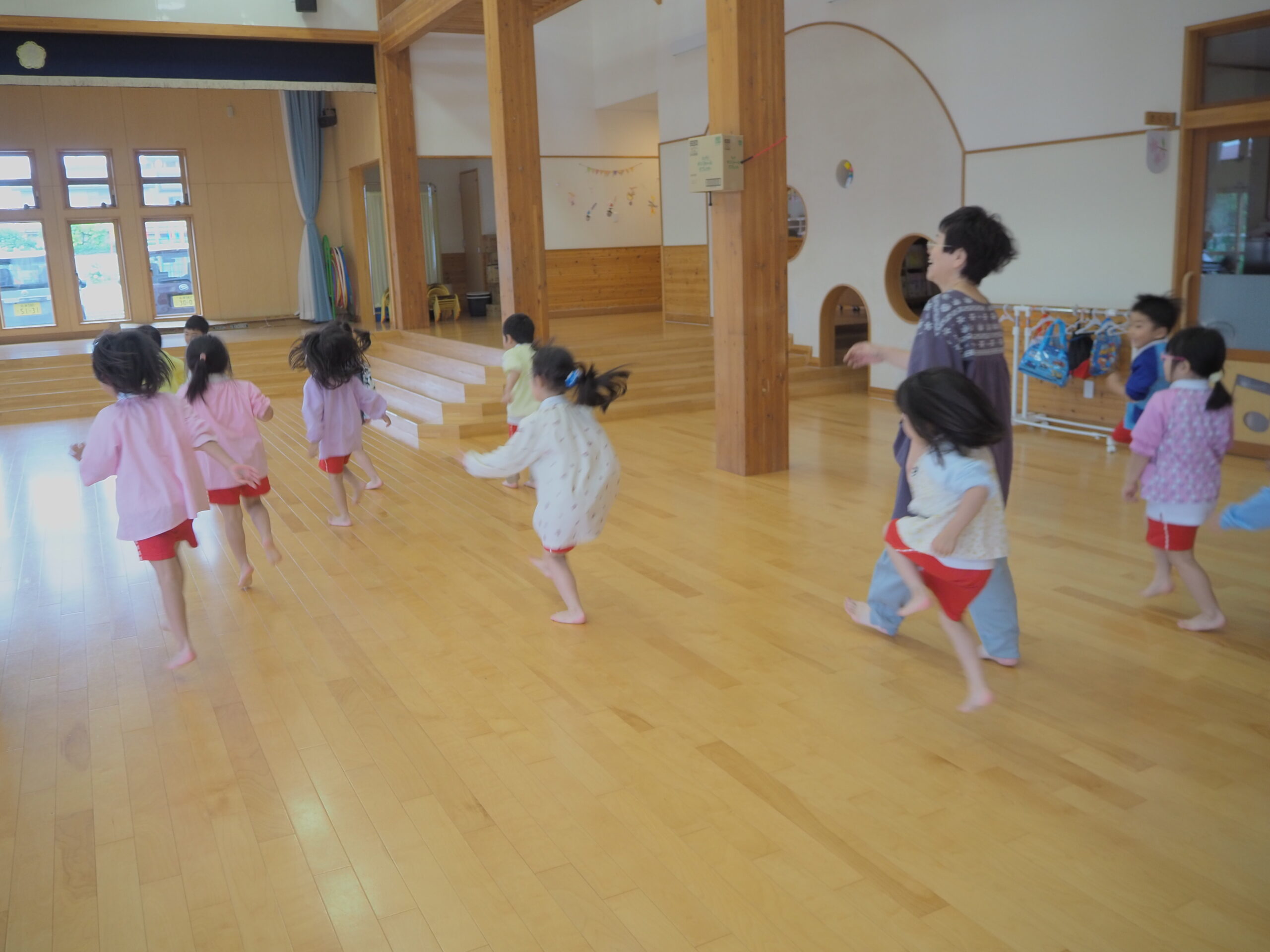 最後にちあき先生がたたいたタンバリンの数に合わせて友達が集まると、円になってユラユラゆれたり、向かい合って手をたたいたりとリズムに合わせてた~くさん身体を動かしました😊たのしかったね!