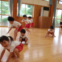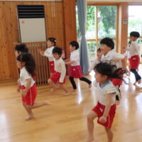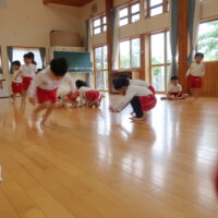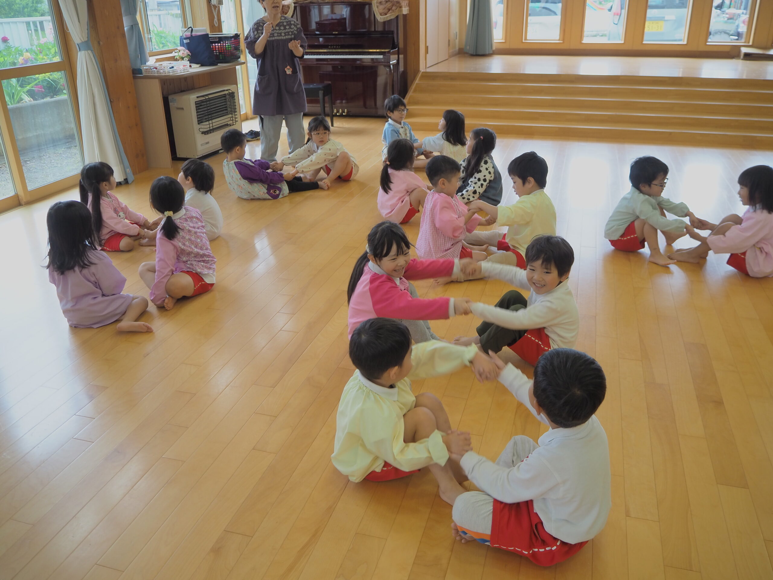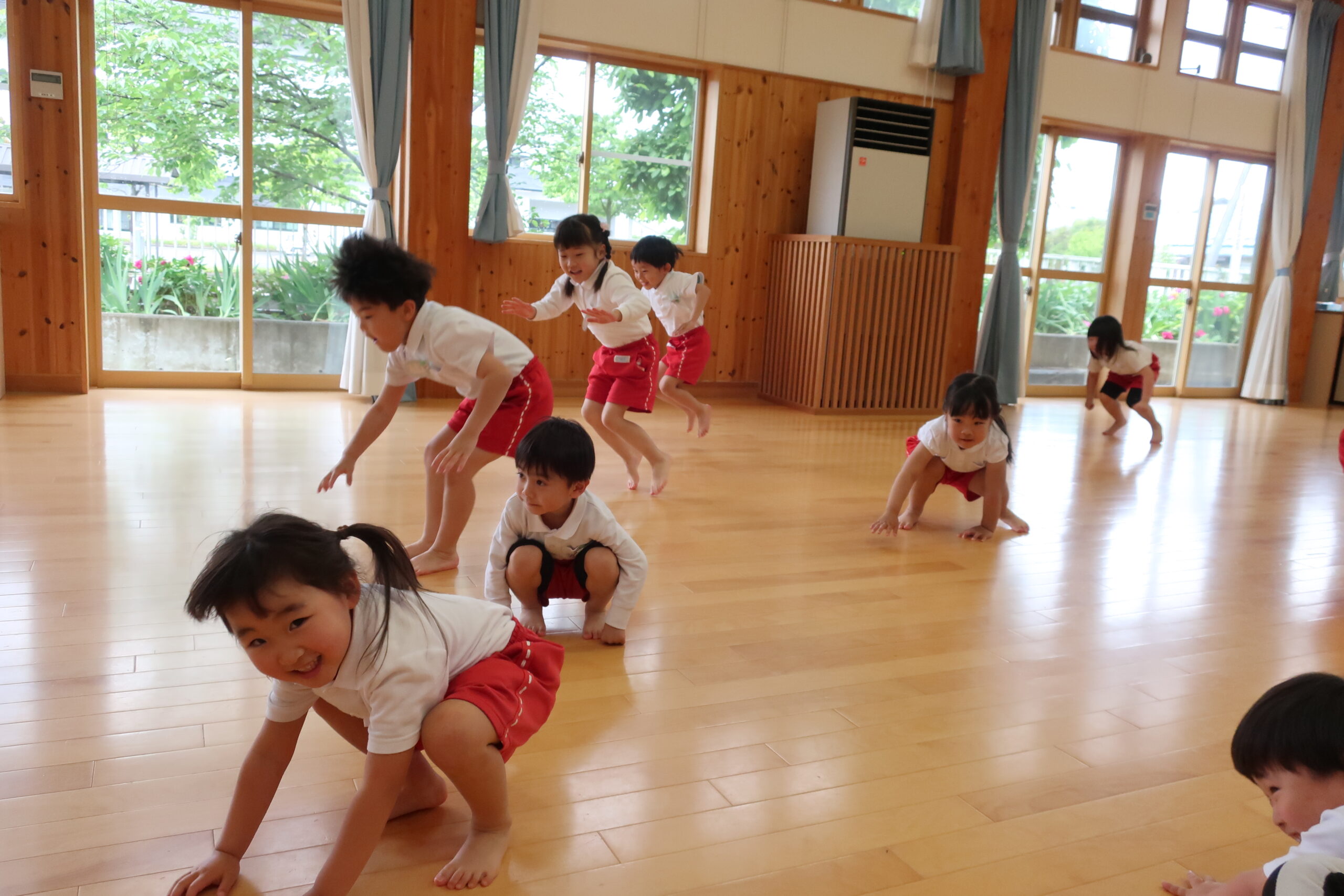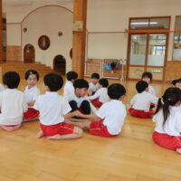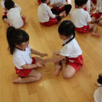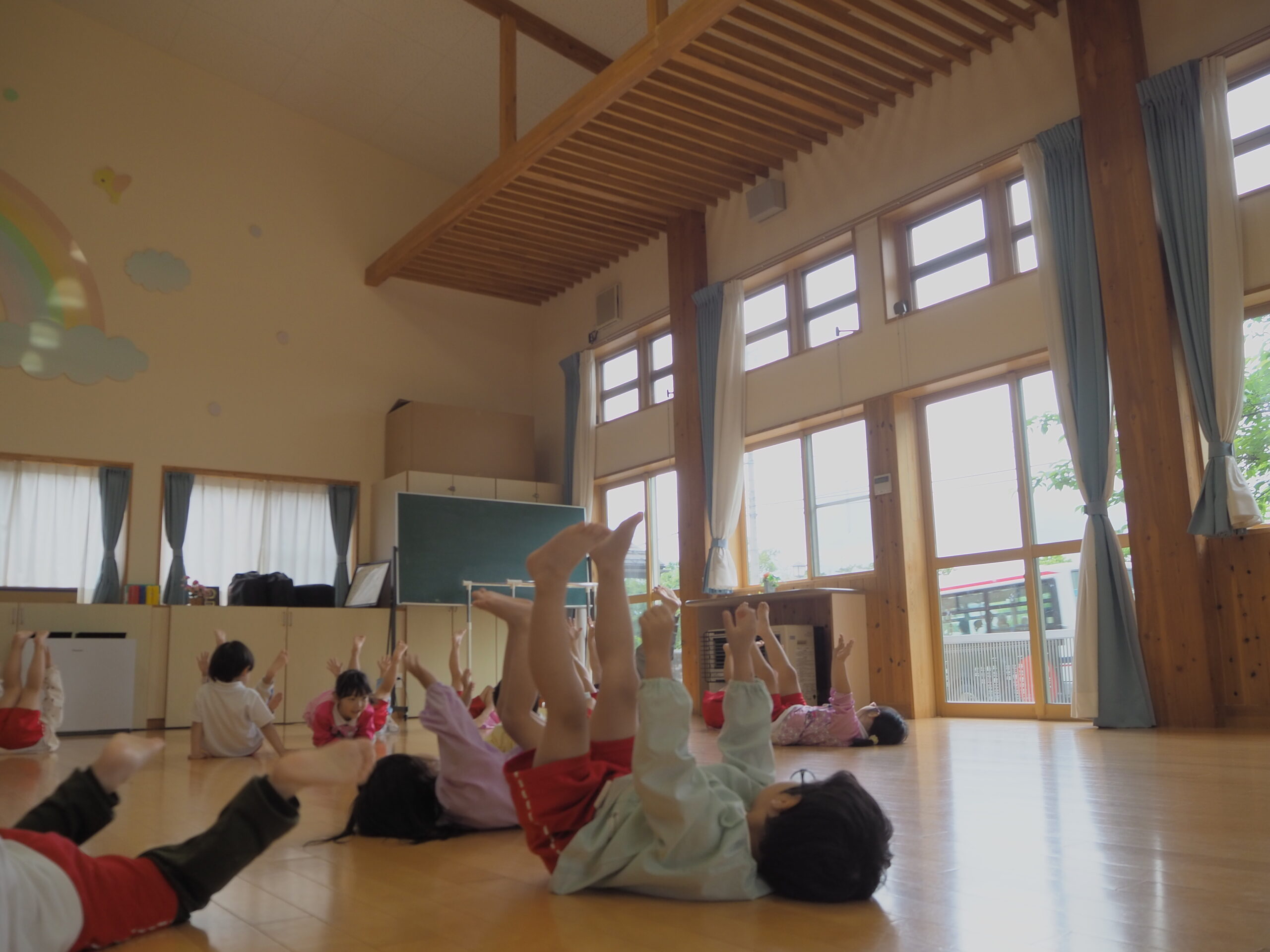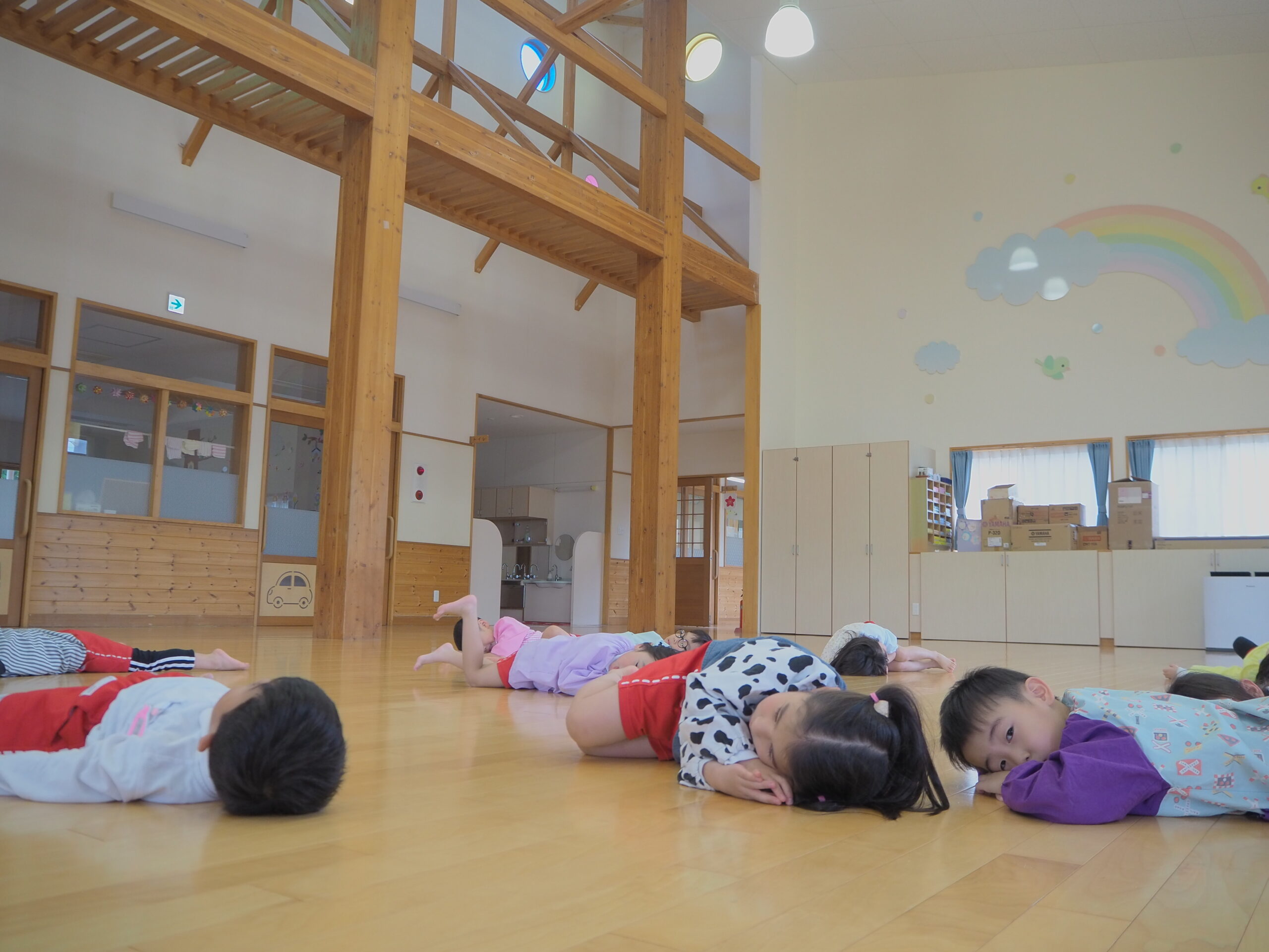 最後にちあき先生がたたいたタンバリンの数に合わせて友達が集まると、円になってユラユラゆれたり、向かい合って手をたたいたりとリズムに合わせてた~くさん身体を動かしました😊たのしかったね!