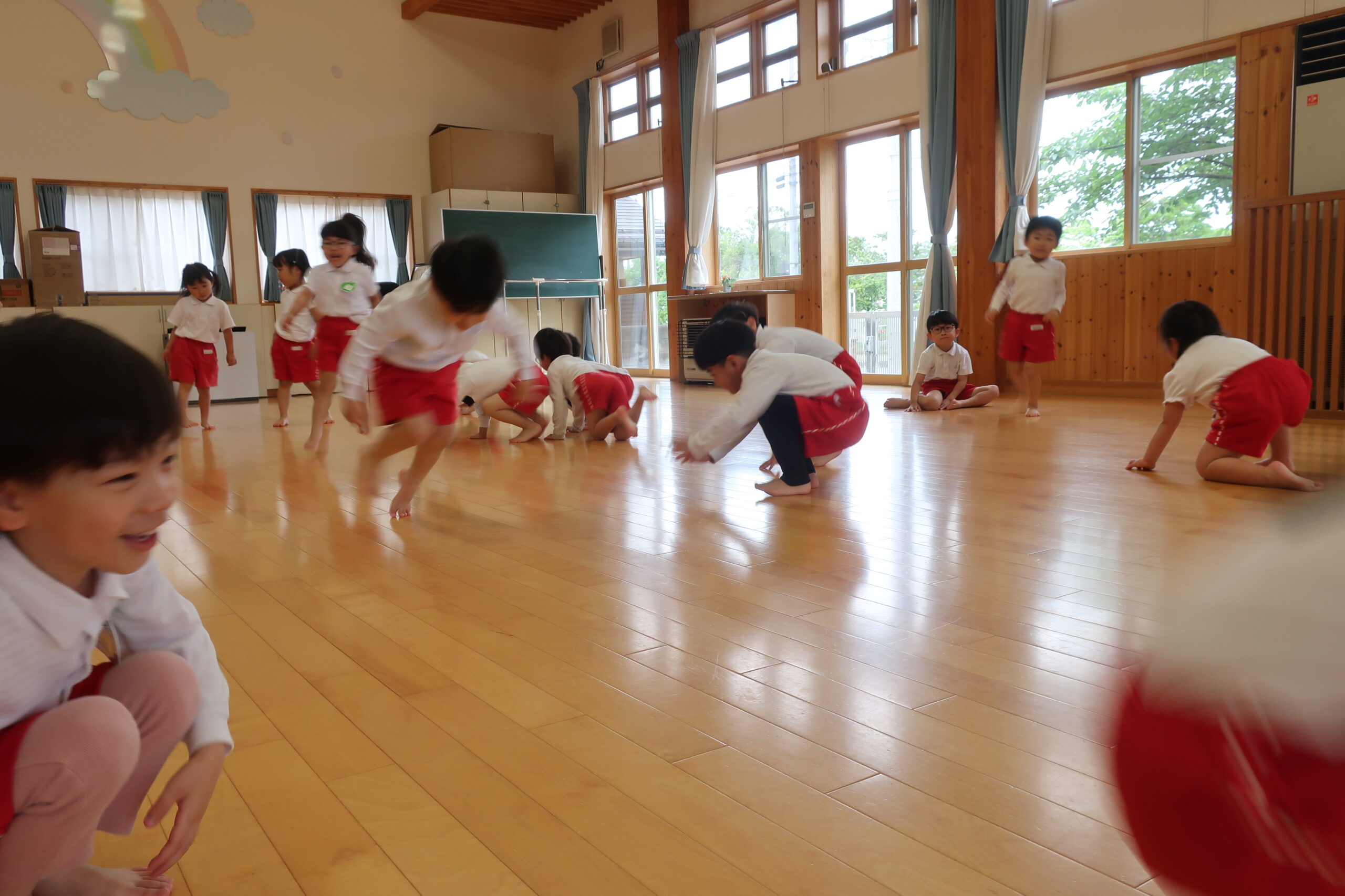 ピアノのリズムに合わせてかえる🐸がジャンプを始めました❕みんなで飛び跳ねながら『かえるのうた』を大合唱🎵