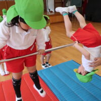次に前回りに挑戦!その前に、「バイク🏍の手」を確認して実際にやってみると「できた~~~!🌟」と大喜び😊「どう?すごいでしょ!」と得意げな表情を見せる子がたくさんいました。