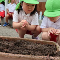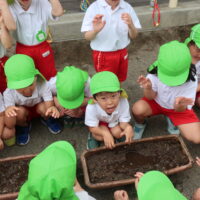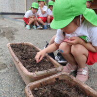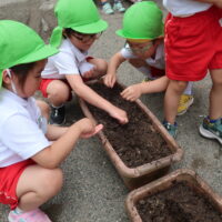 さっそくプランターに順番で種を植え、土のお布団をかけて、お水をあげると「お水ごくごく飲んでるね!」「はやく大きくなるといいね!」と待ち遠しい様子の子ども達でした。