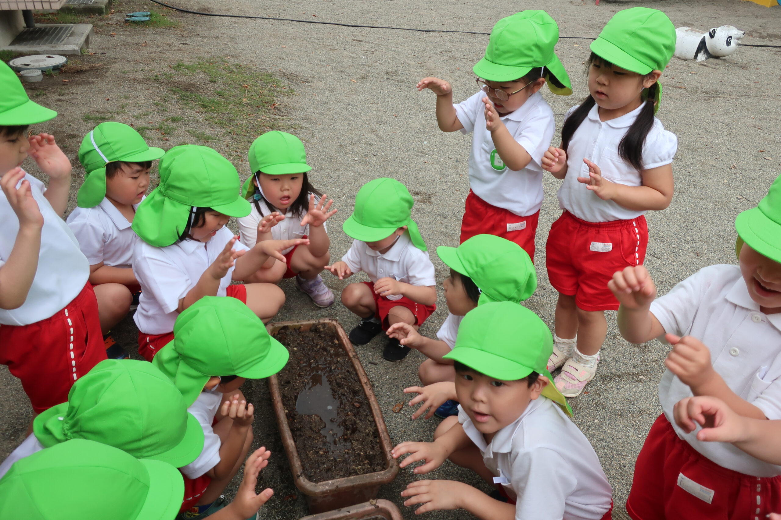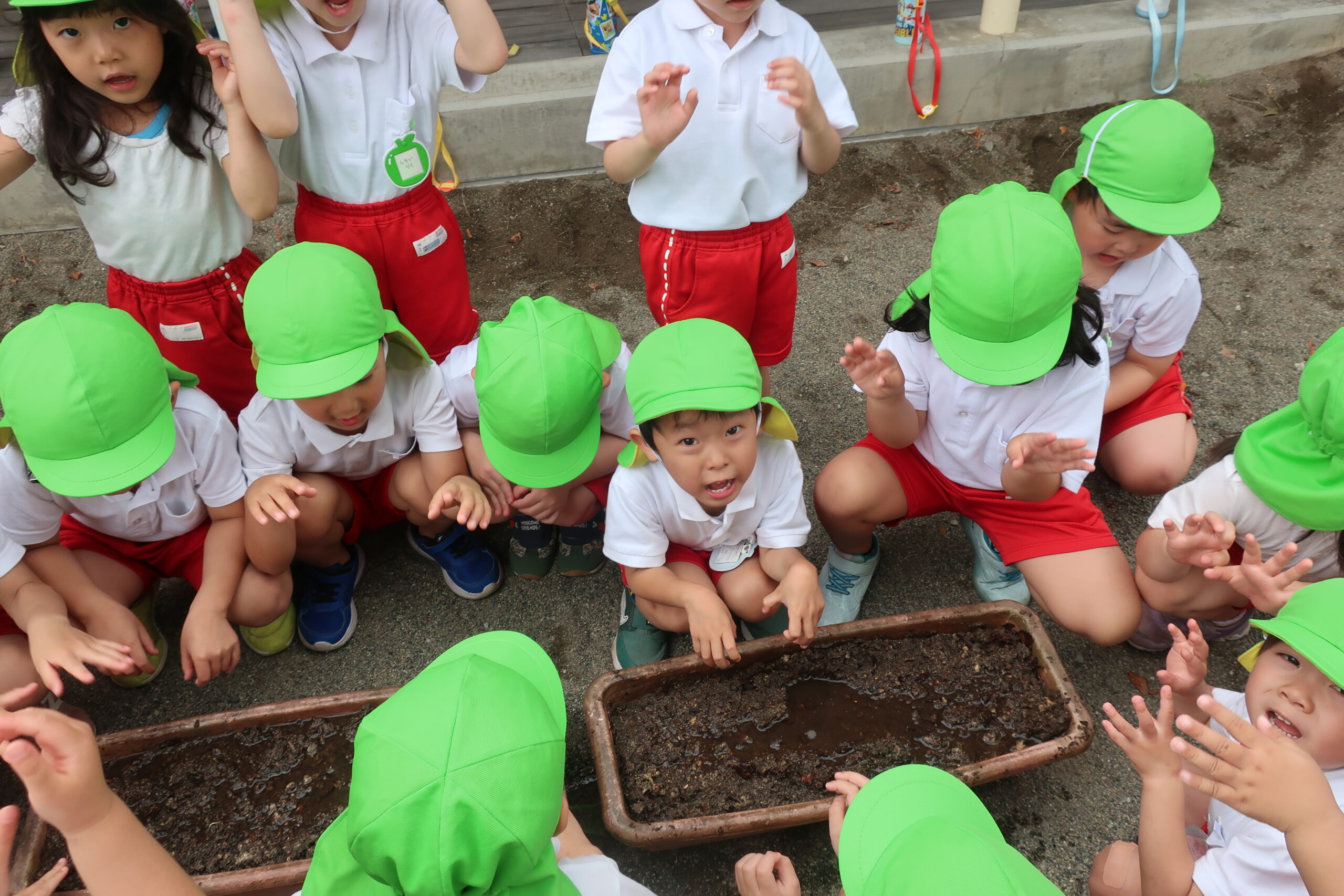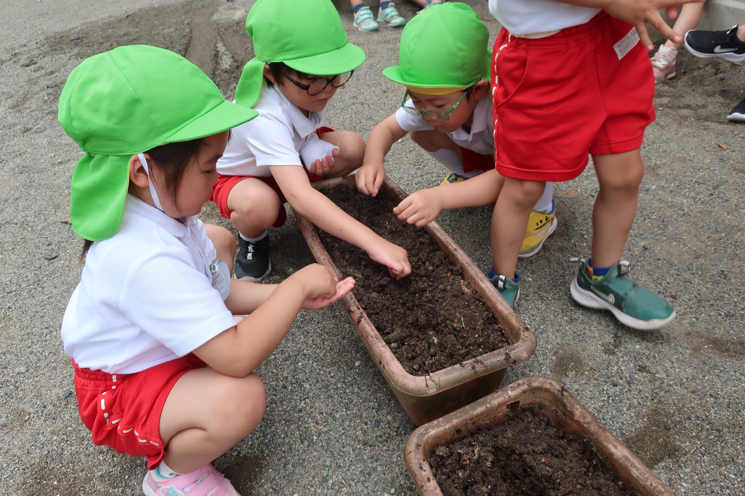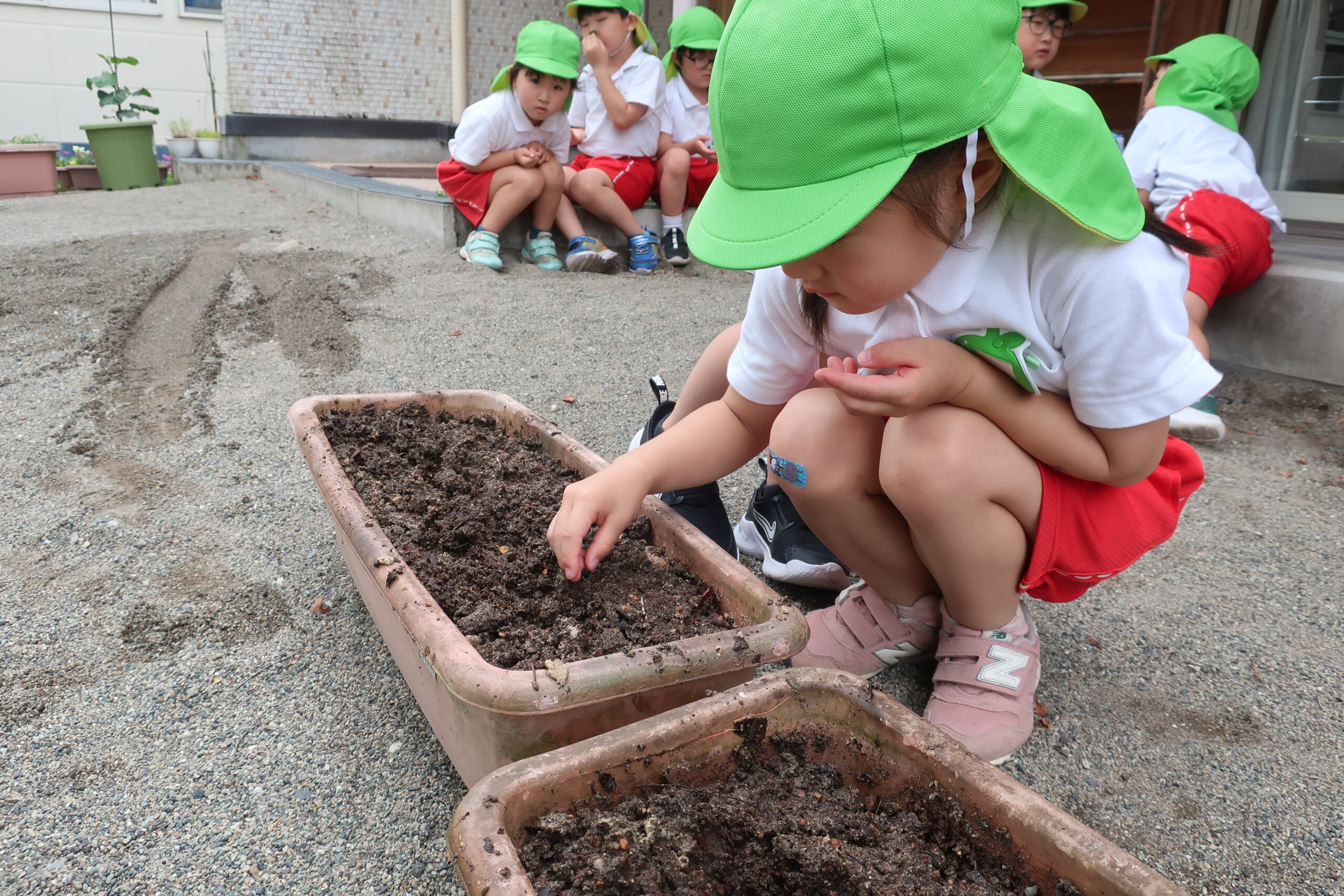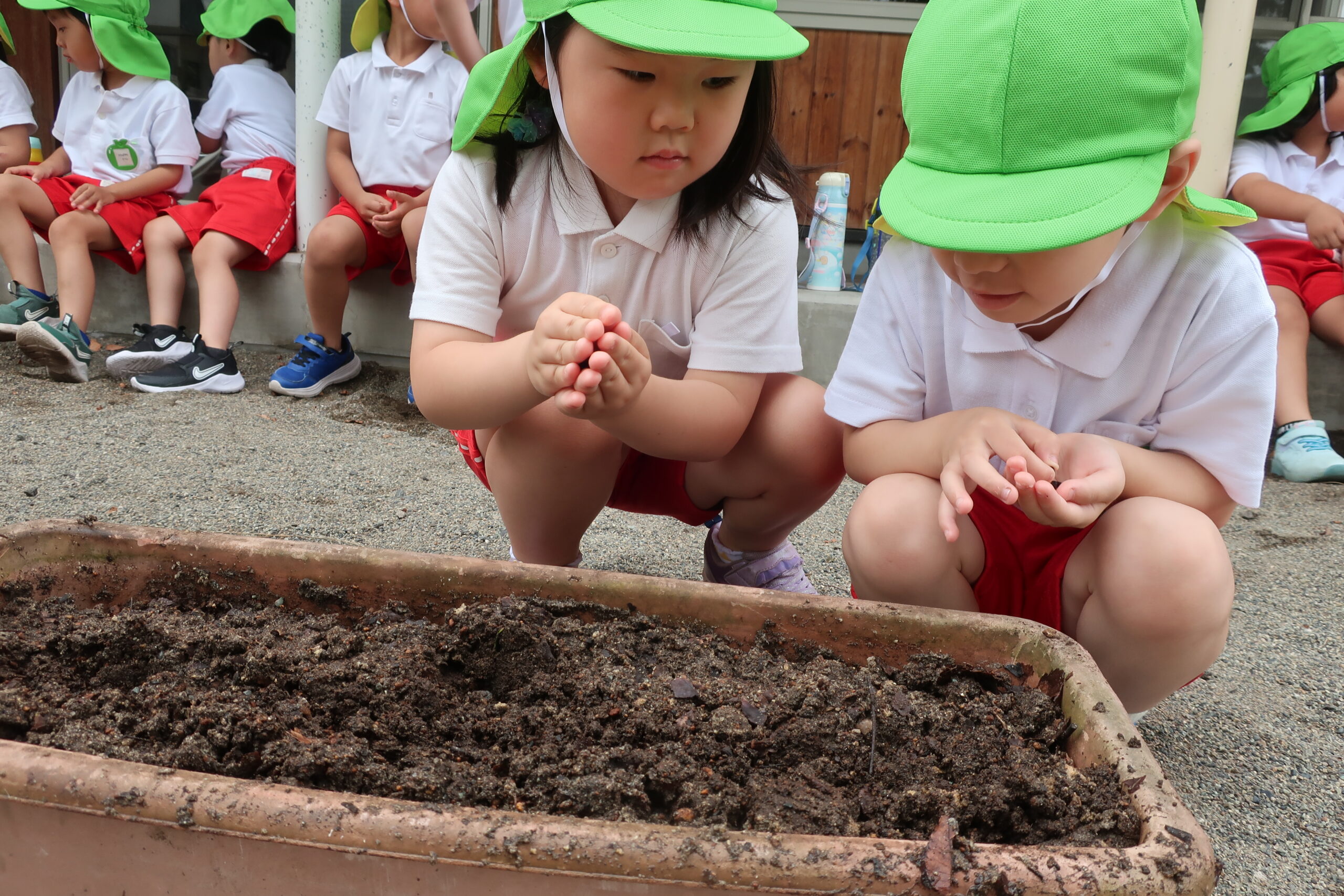 種は年中組に進級する前に「さくらぐみとももぐみになったらみんなで育ててね!」と、今の年長さんからもらったもの。みんな、種をもらったことを覚えていました!