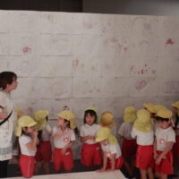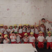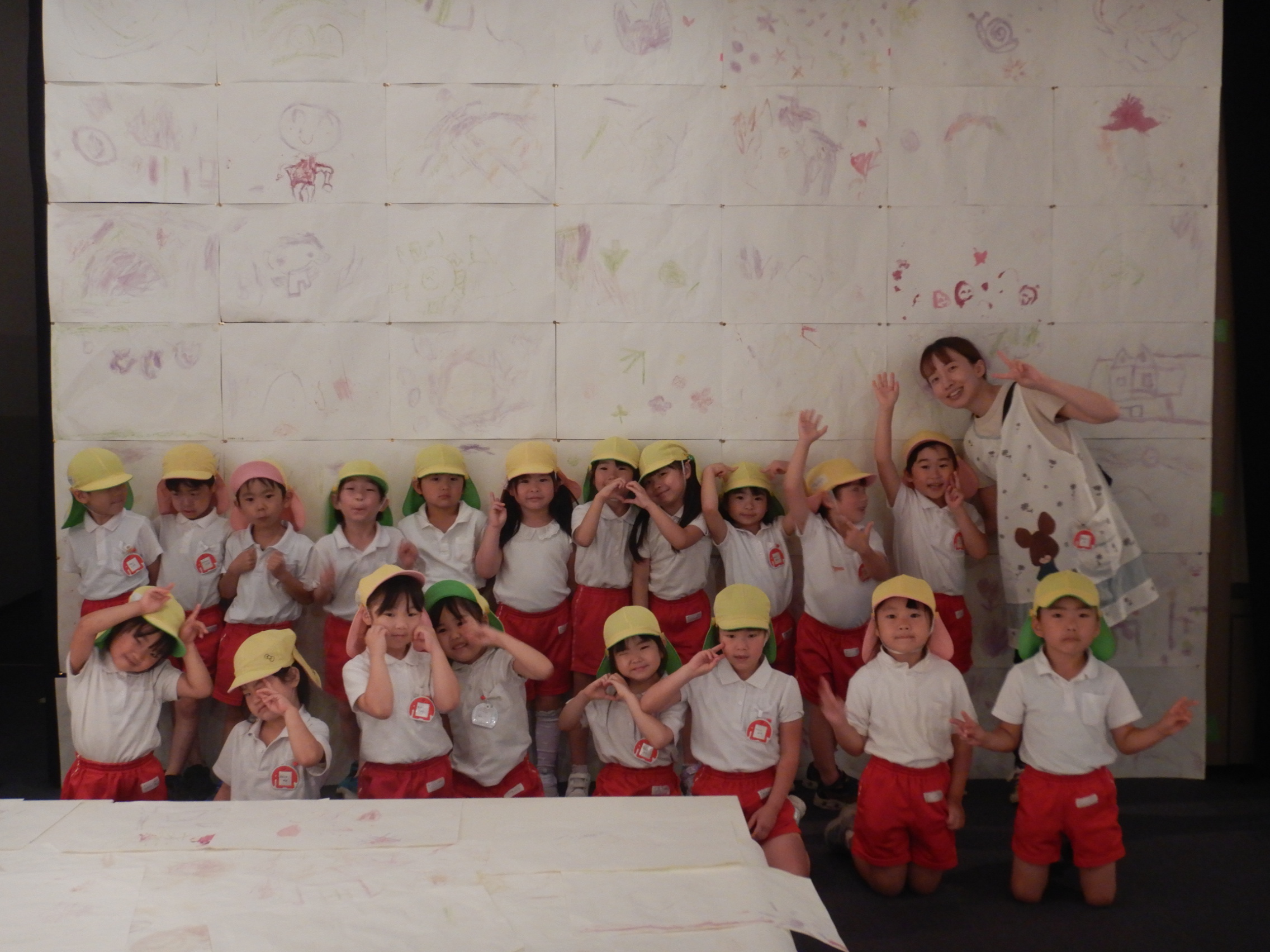 みんなの緑画が壁一面に展示され、「僕のあった!」「私の見つけたよ!」と自分の作品を見つけると嬉しそうな表情を浮かべていました🥰