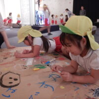 福島県の郷土料理などの絵が飾られていて、お絵描きができるコーナーではみんなの大好きな食べ物(食べると幸せな気持ちになる物)を伸びのびと描き、自分の好きな食べ物について会話を弾ませながら思いおもいに描いていました🌟