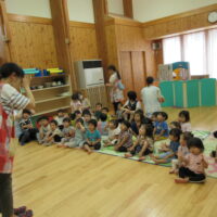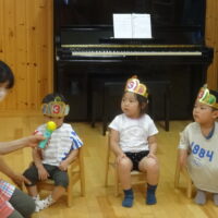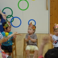 「かたつむり」を歌い、6月のお誕生会が始まりました。