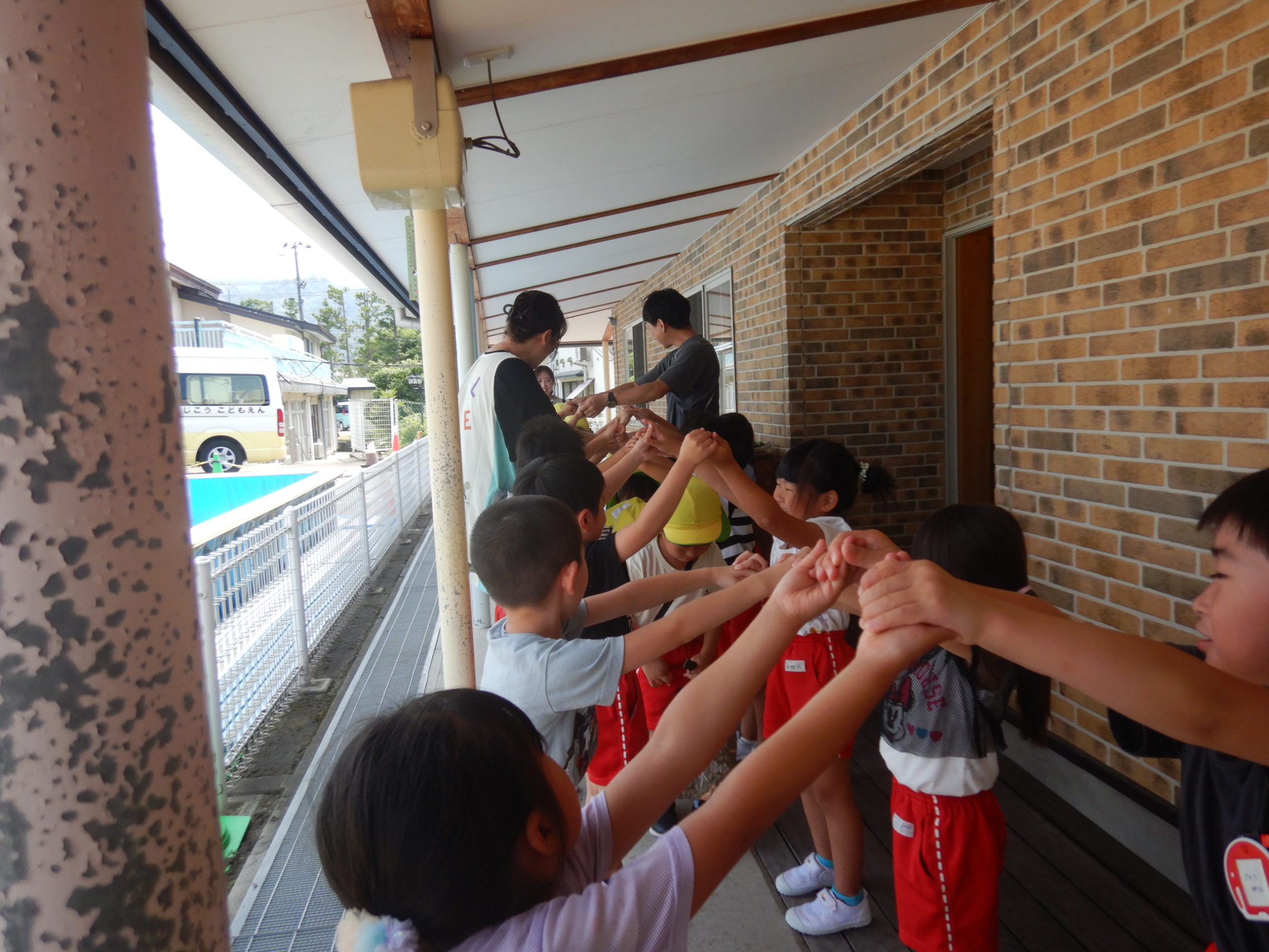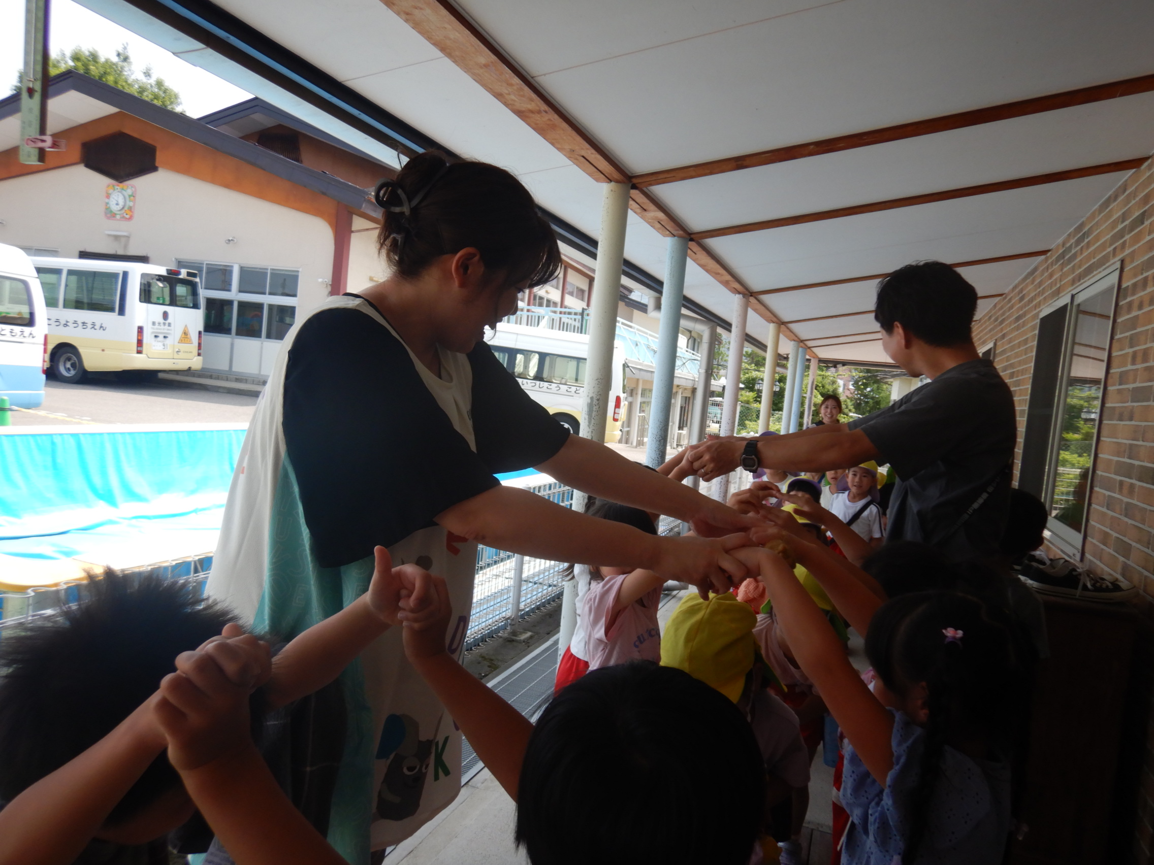 みんなでトンネルを作って「ようこそ~!😊」