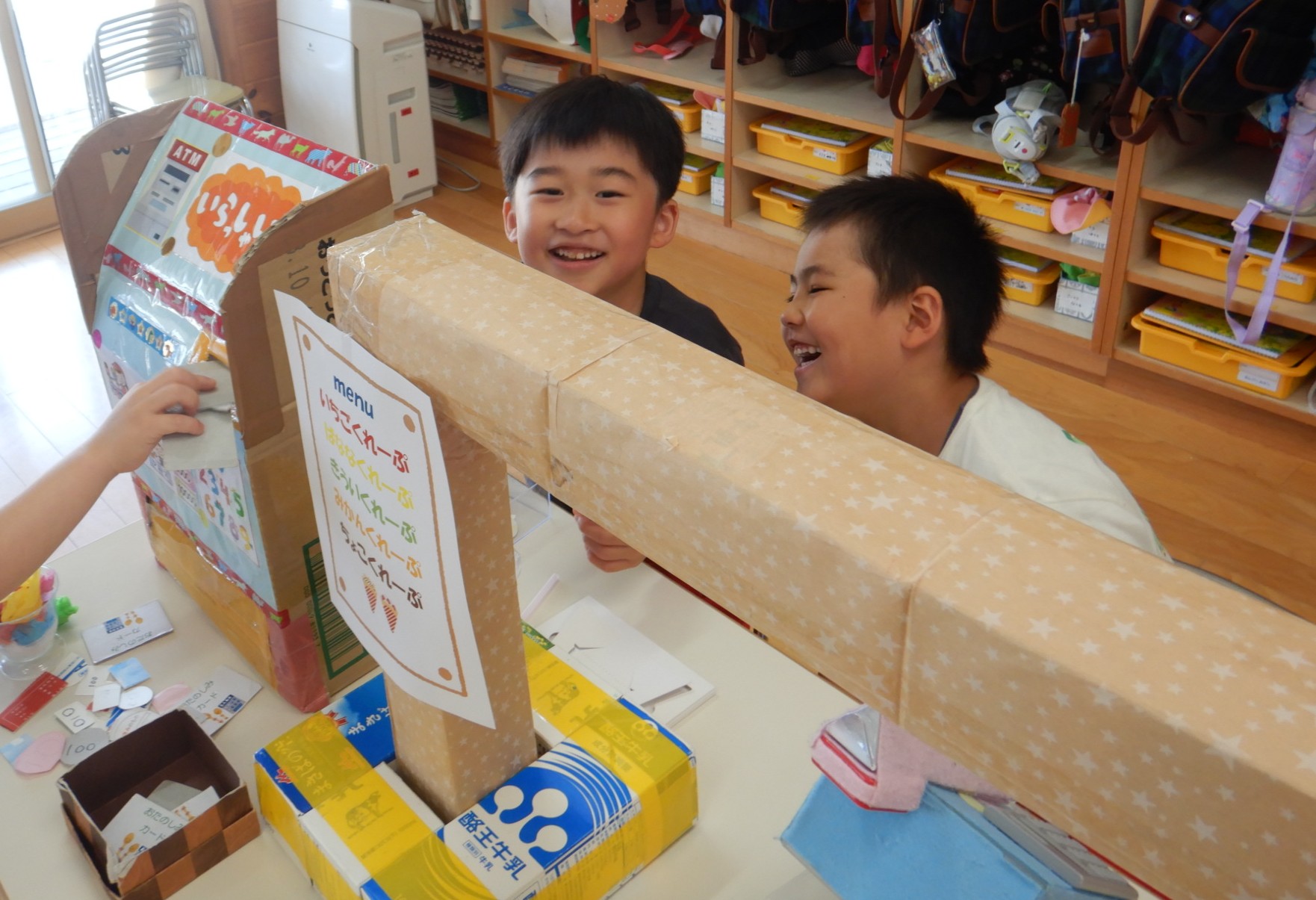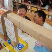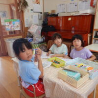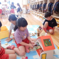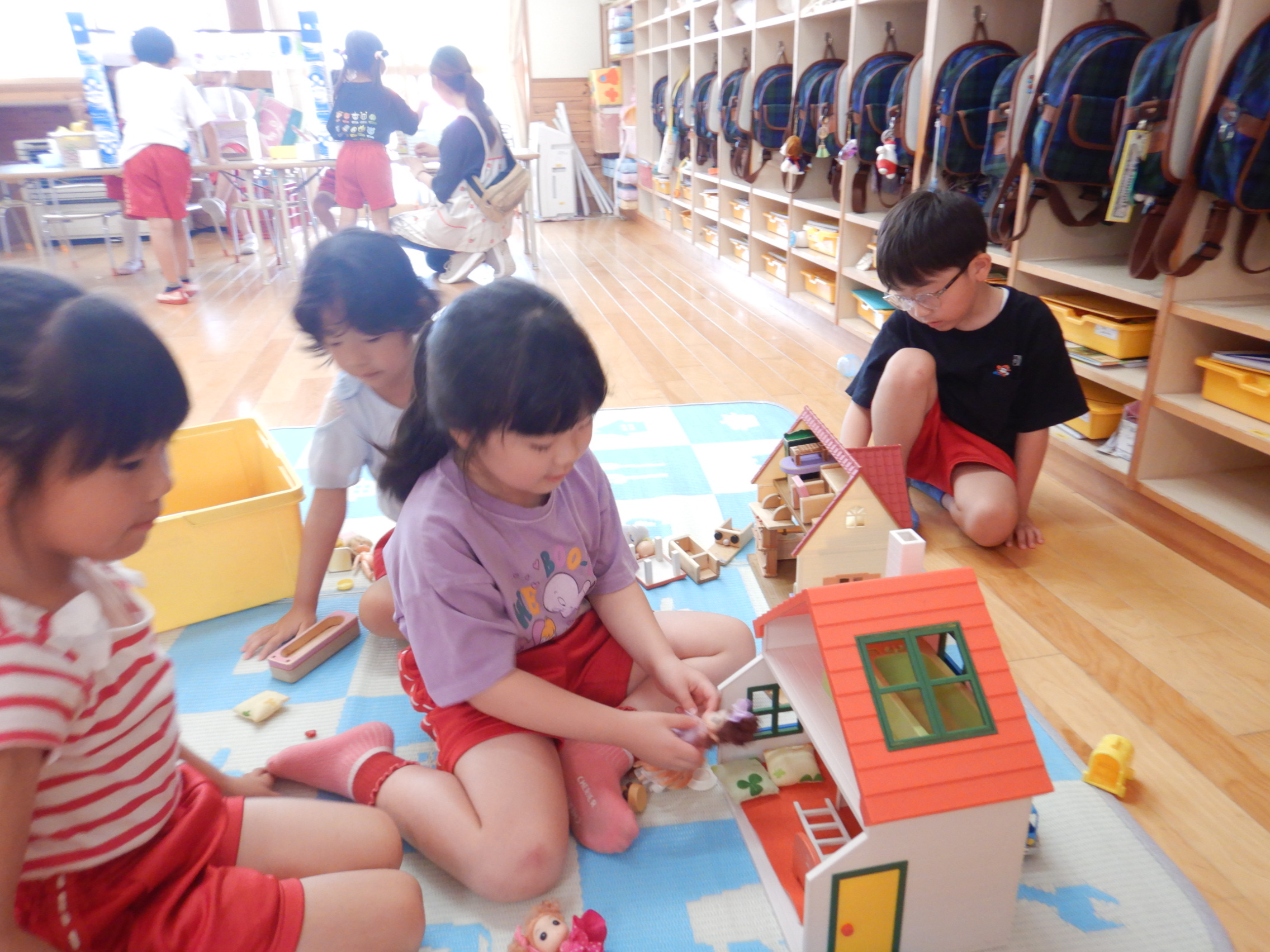 最初は初めましてのお友達にちょっぴ緊張した様子もみられましたが、「これはこうやってやるんだよ!」「これも使っていいよ!」と優しく声を掛け、一緒に遊んでいくうちに自然と打ち解け、どんどん仲良しに🥰