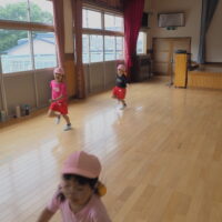最後は後藤先生との鬼ごっこ!後藤先生にタッチされてかき氷に変身した友達を一生懸命助けようとしていた子どもたちです。
