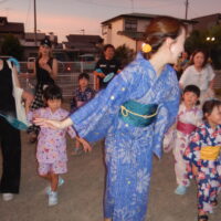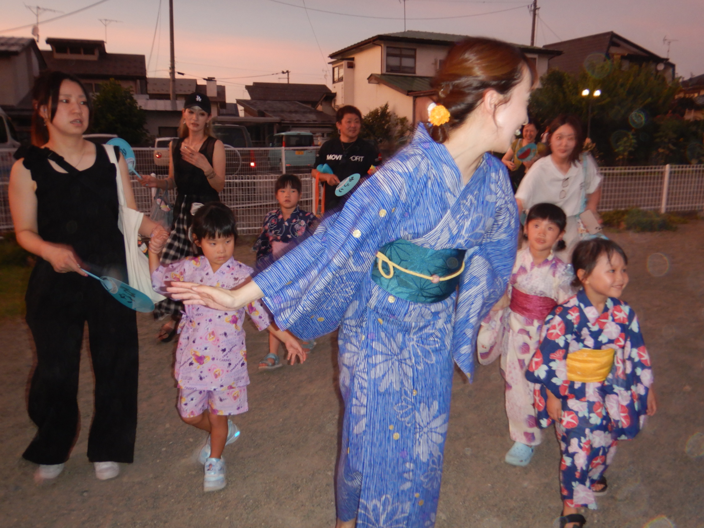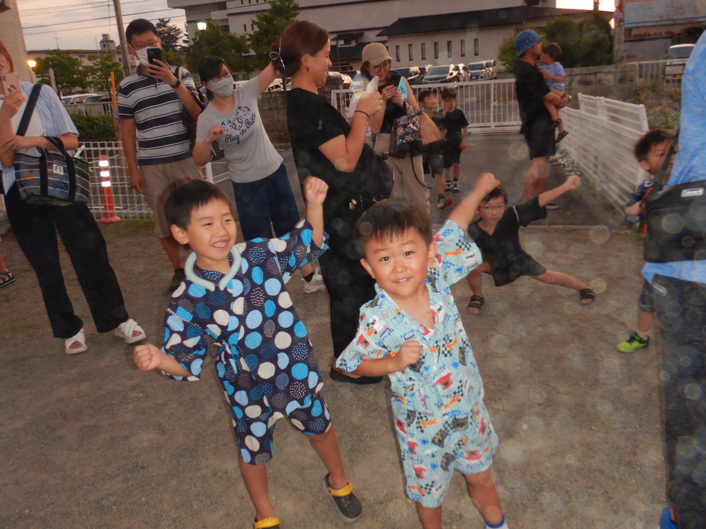 身体の芯まで響く太鼓や空高くまで届く陽気なすりがねの音に合わせて、空が暗くなるまで夢中で踊り、とっても楽しい夏の思い出となりました❤