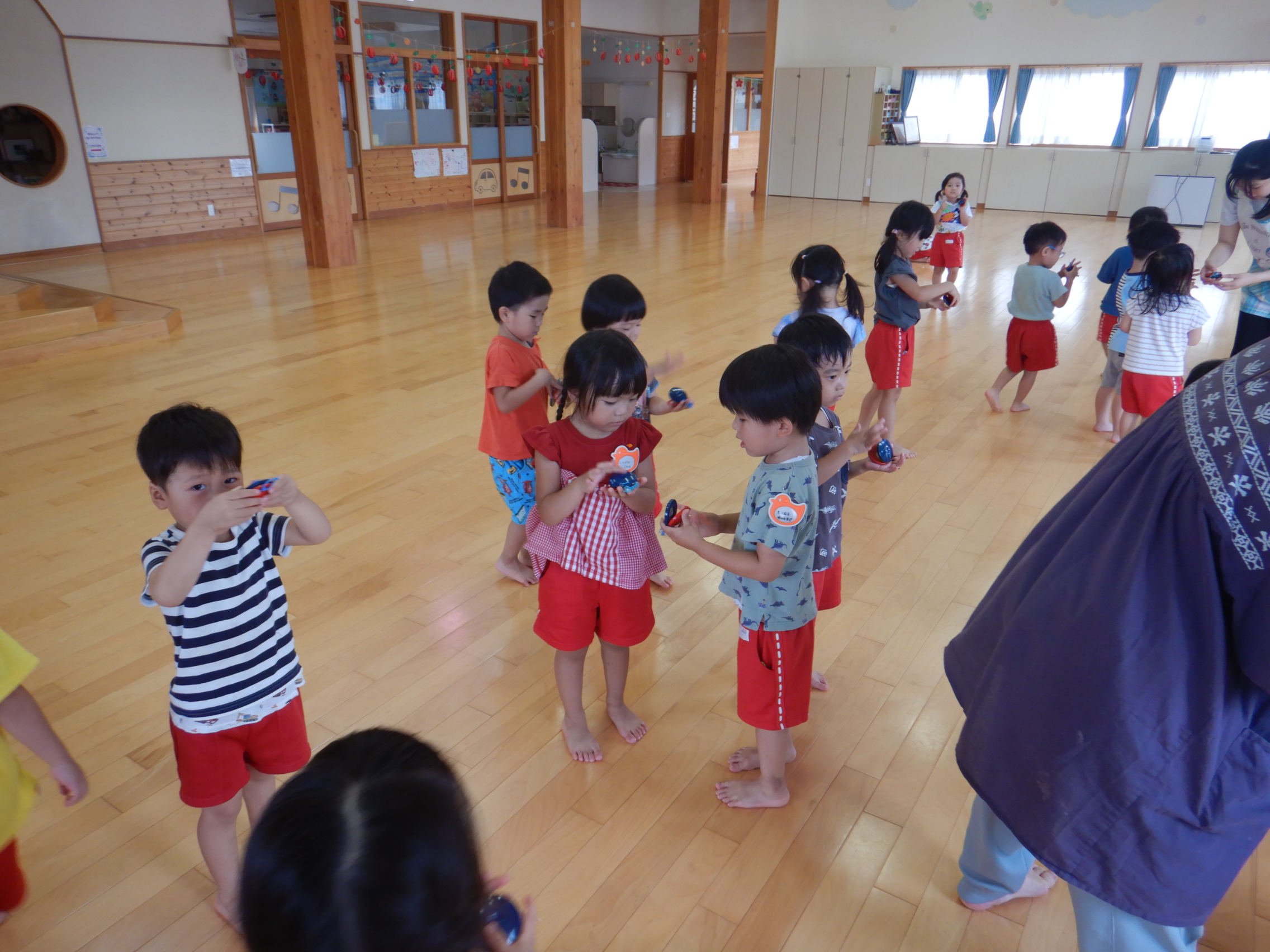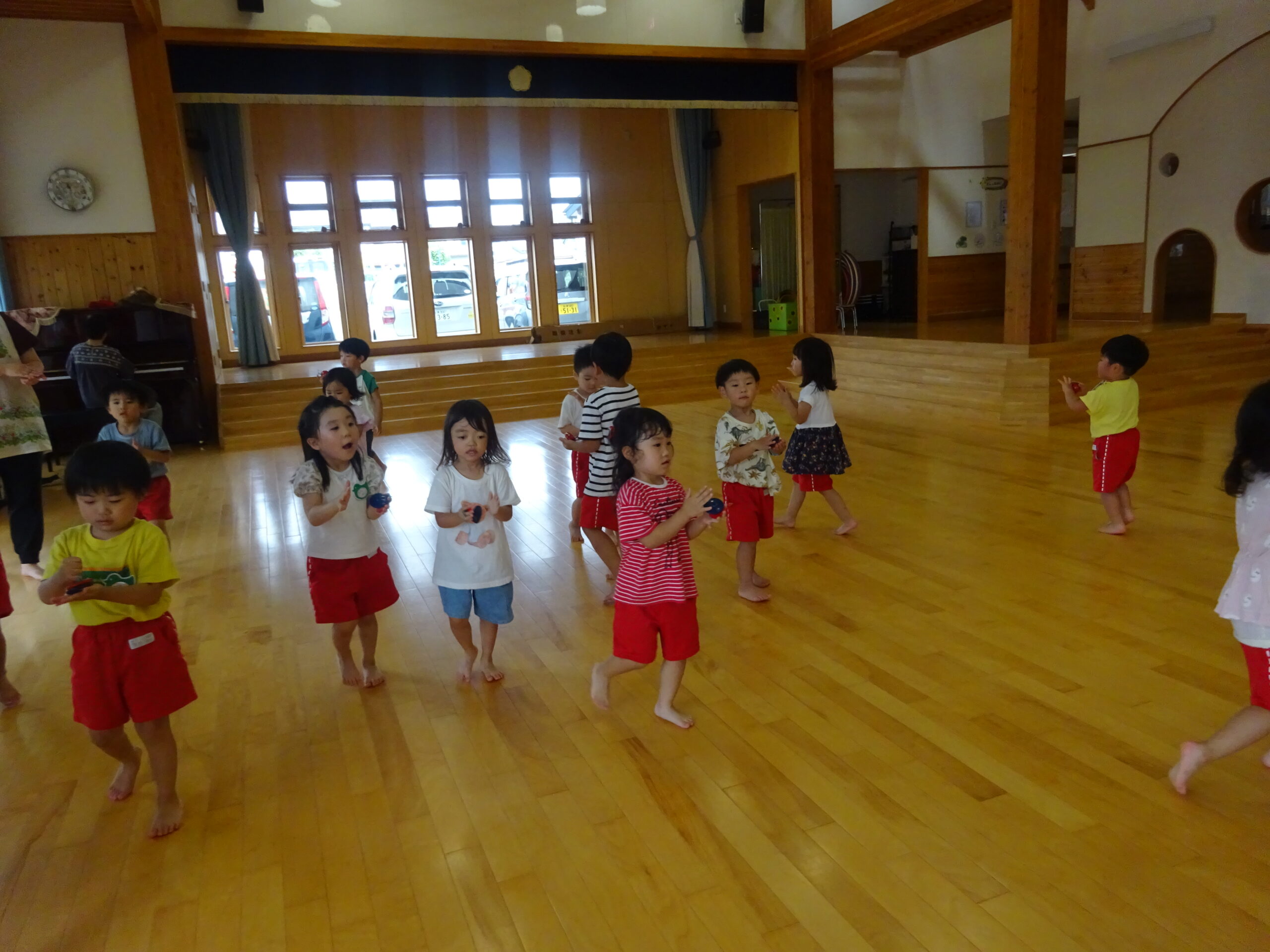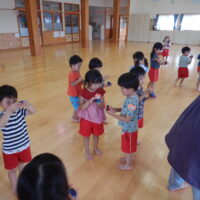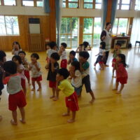 年少組は11日(木)に体操教室、12日(金)にリトミックを行いました。