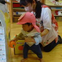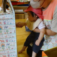 りんご組🍎、おててを伸ばして上手にりんごを採り、ゴールを目指したよ!