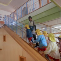 「第二こども園って2階建てなんだ👀!!」「うさぎさんがいるよ🐰」といろいろな場所に釘付けに・・・!