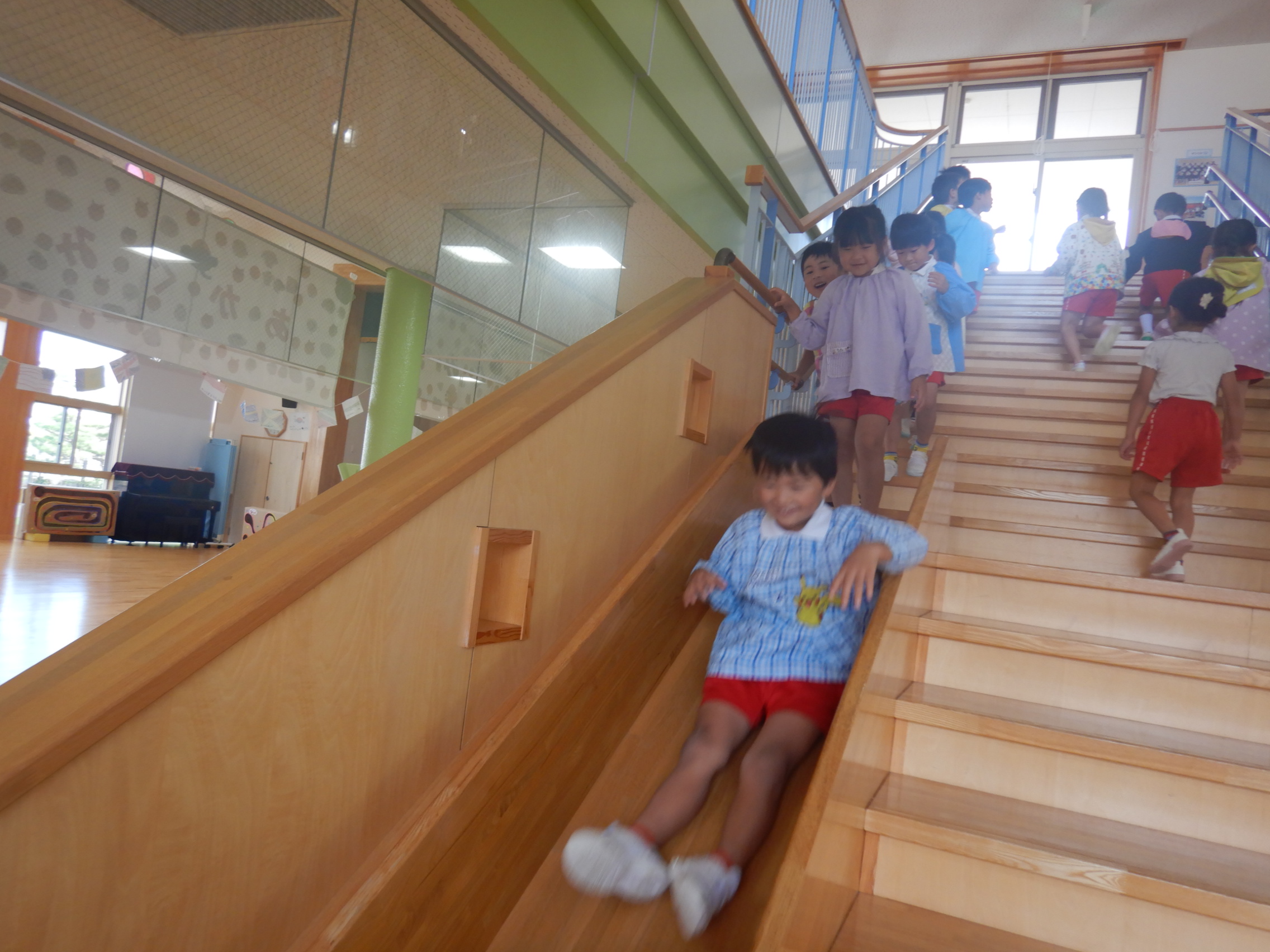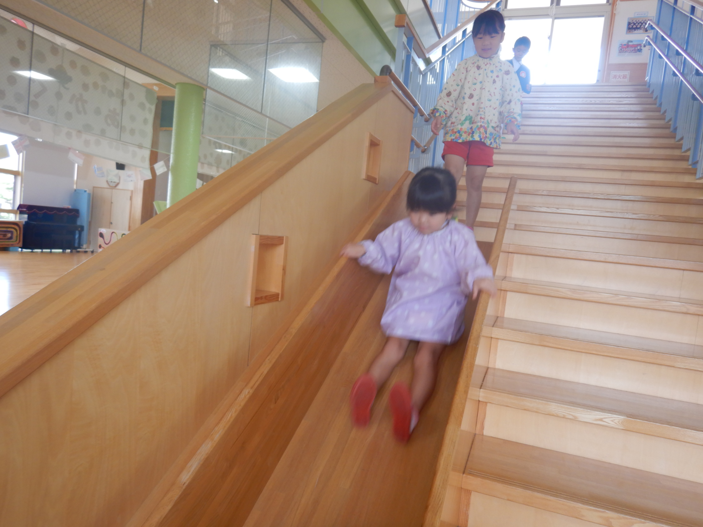 2階へ上がる階段には滑り台もあって順番に滑らせてもらいました😊