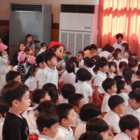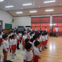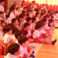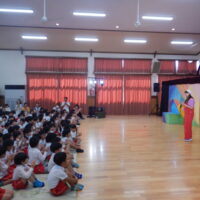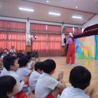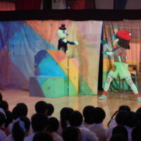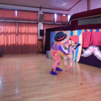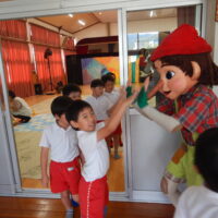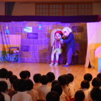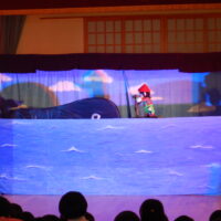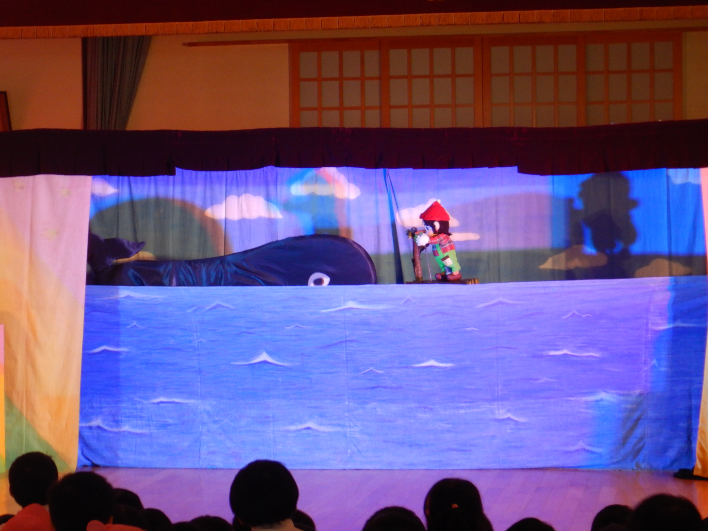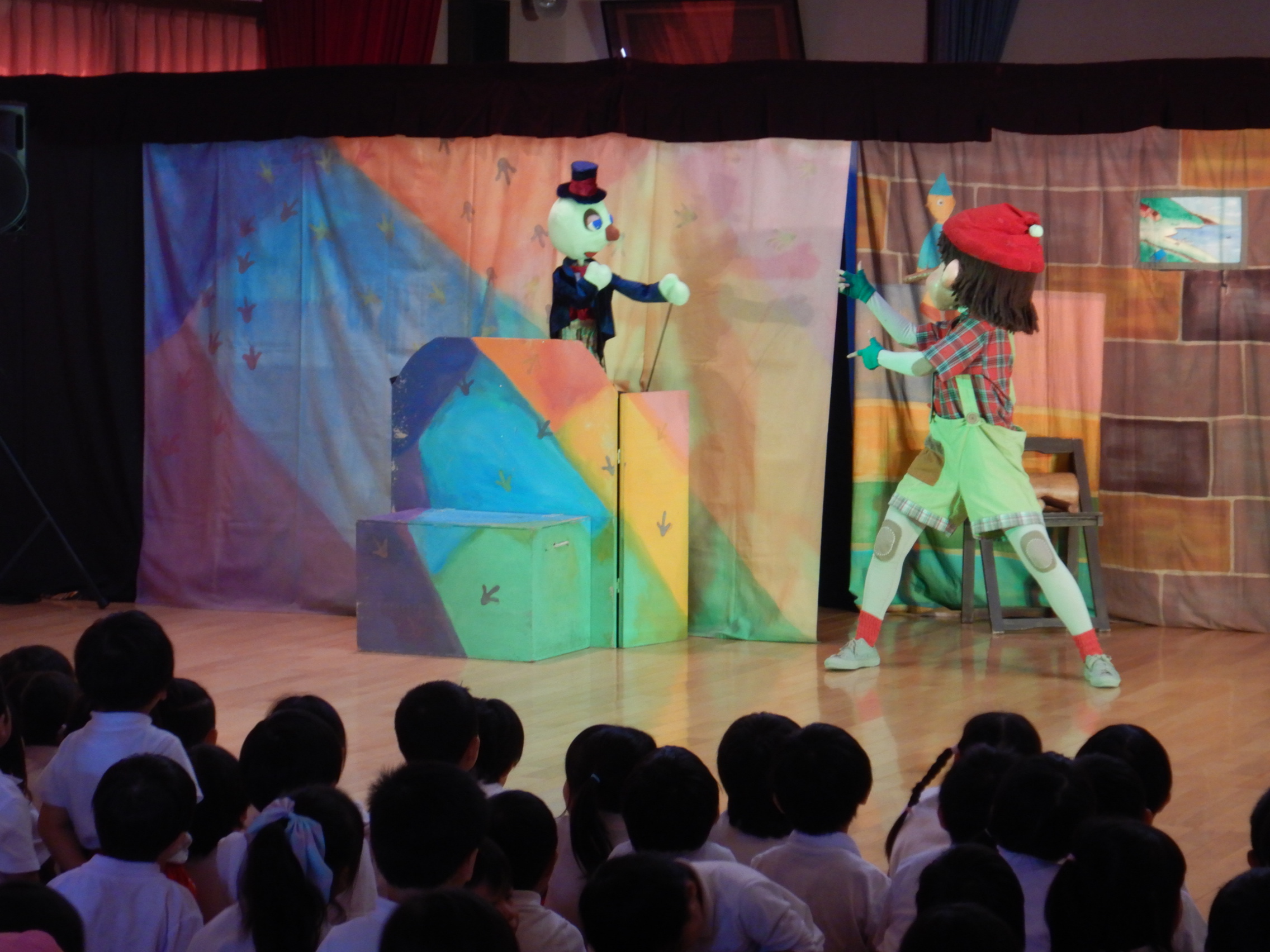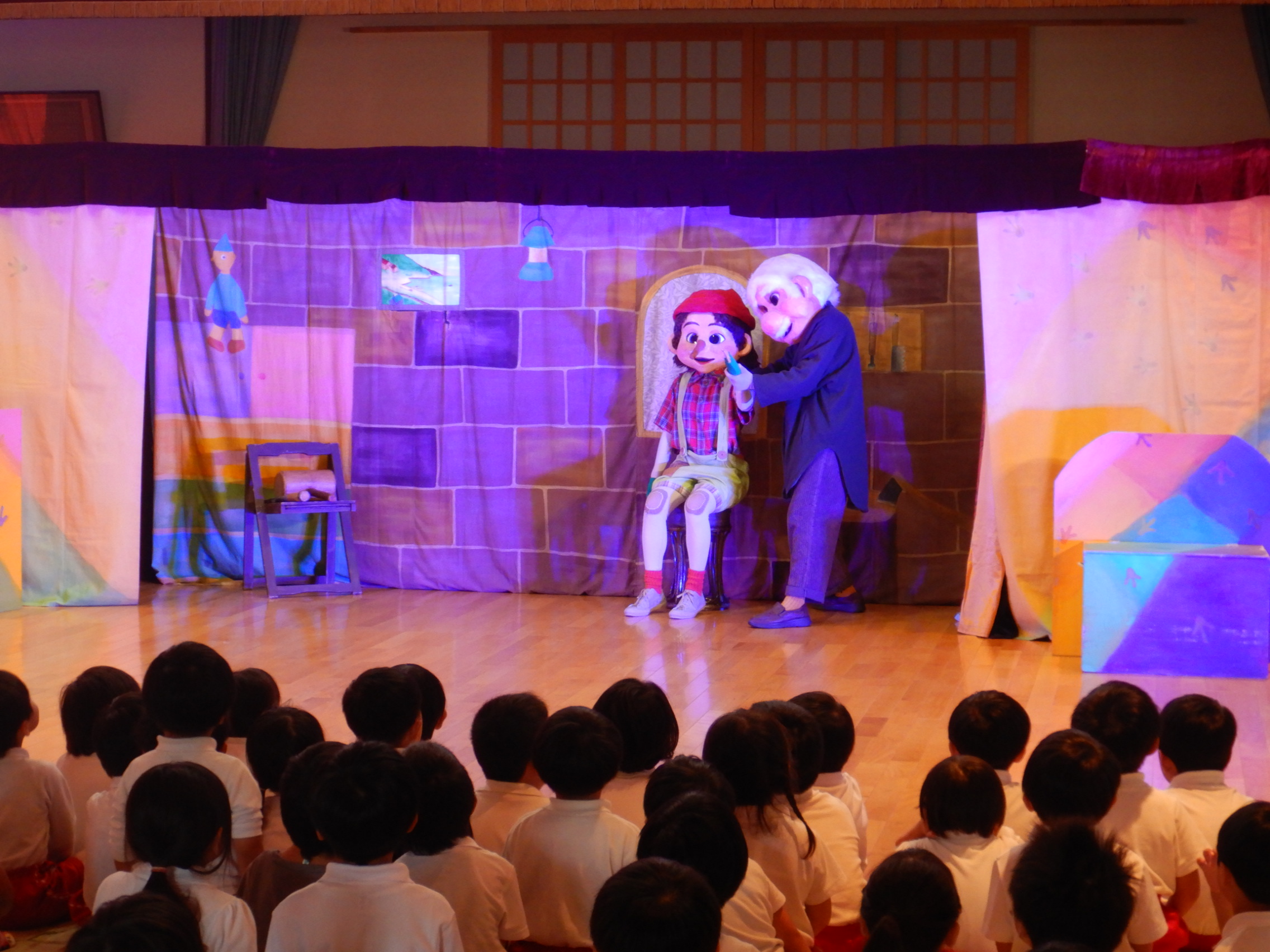 人形劇を見る際のお約束をして いよいよ、今日のお話「ピノキオ」の始まりはじまり~
