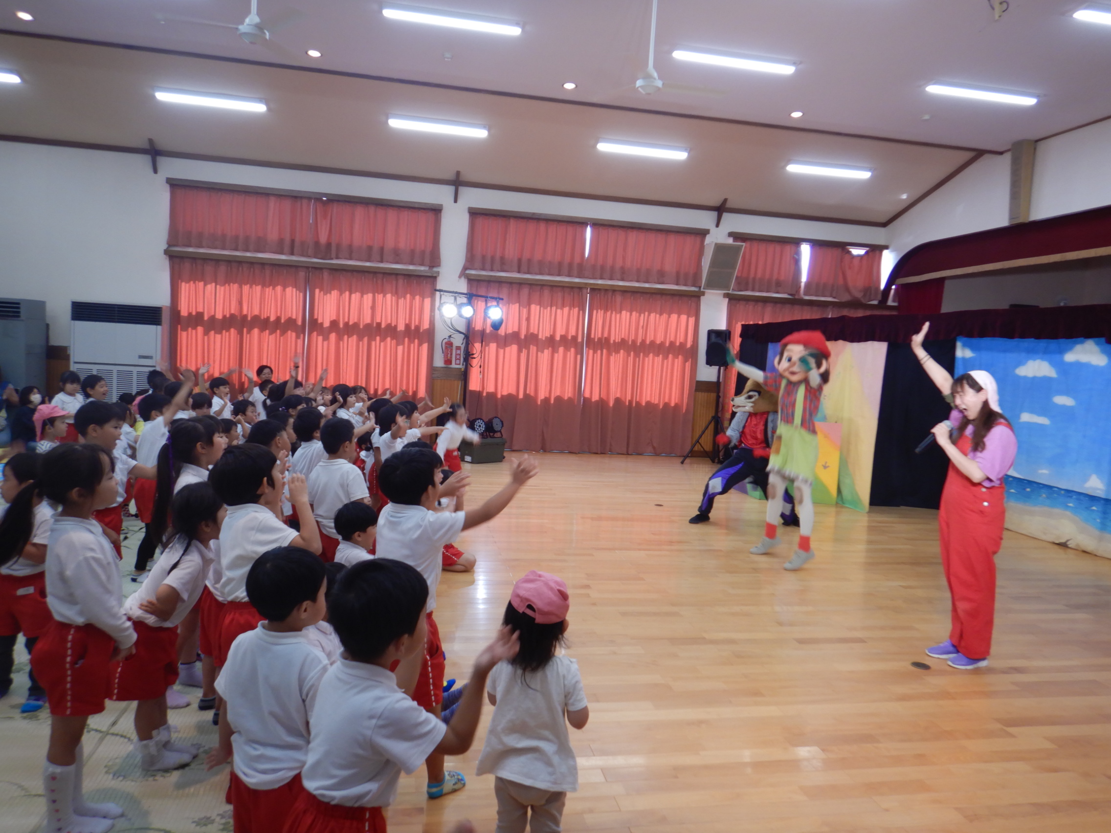 まずは司会のお姉さんが登場し、劇の前に一緒に準備体操🎵 たくさん ぶらぶらしたり のびのびしました☆