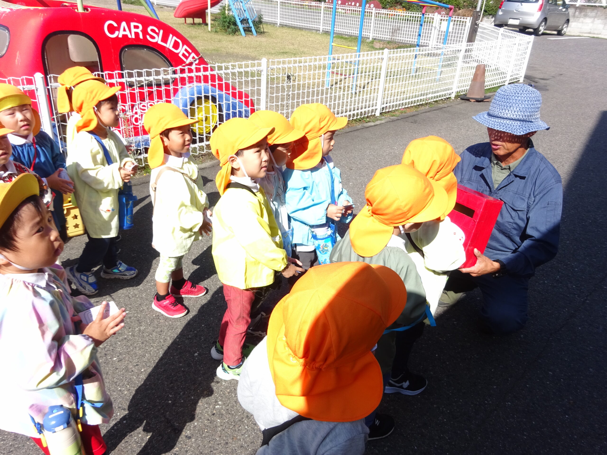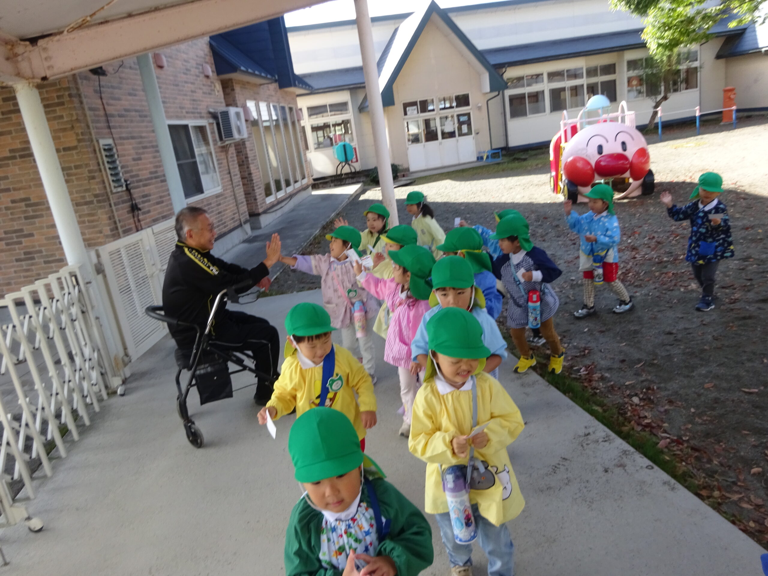 園長先生から「楽しんできてください」とお話をいただき、元気に「いってきます!」とご挨拶をして