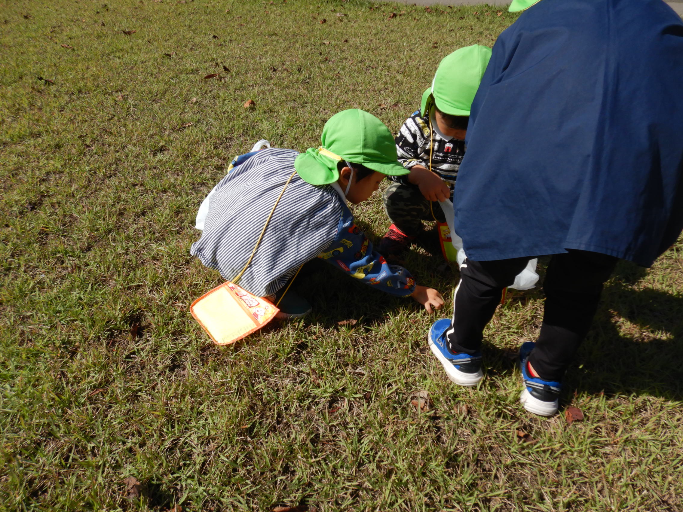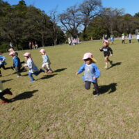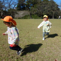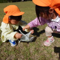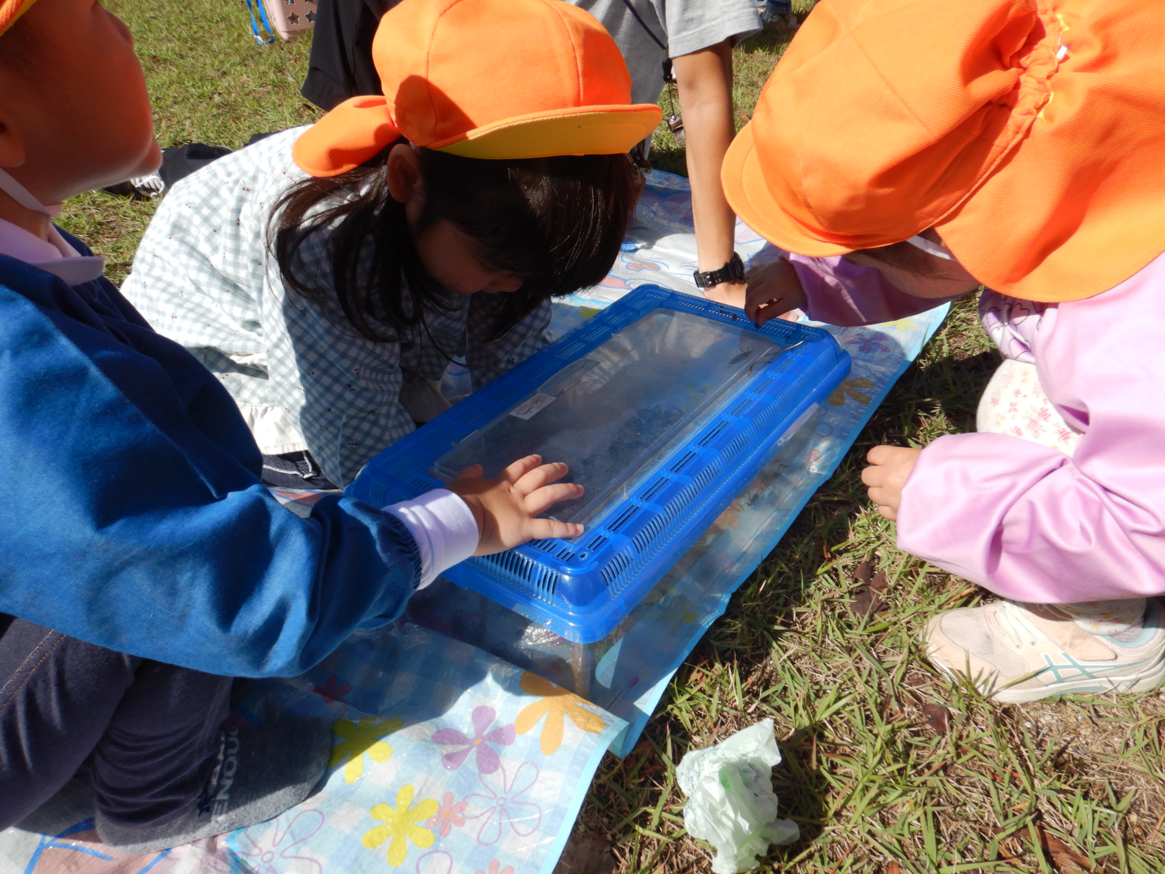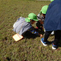 虫を取ろうと姿勢を低くしている子や、図鑑を見ながら虫を見たり、広い芝生の上で走って風を感じたり…