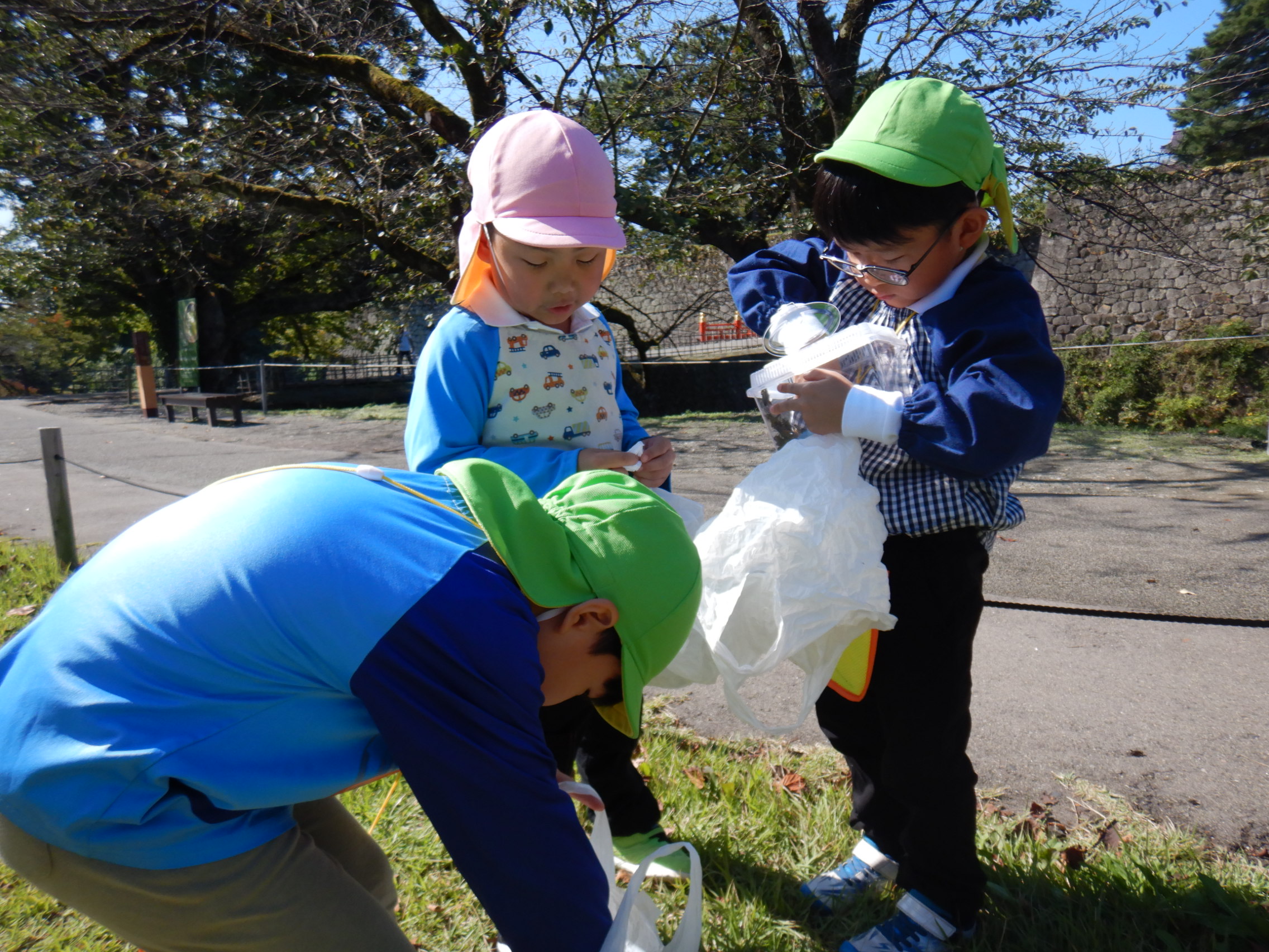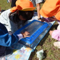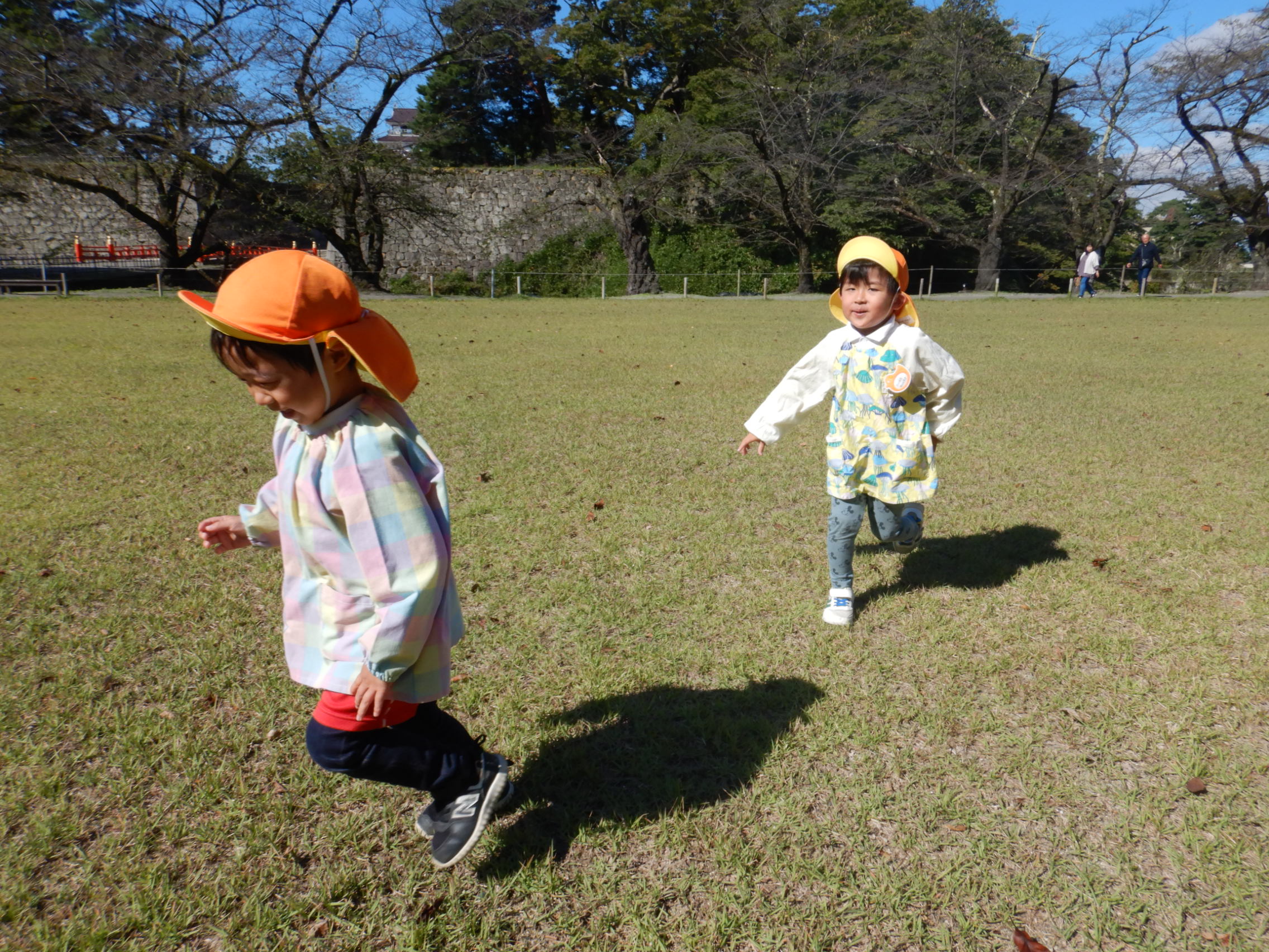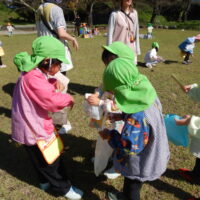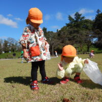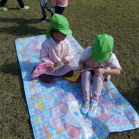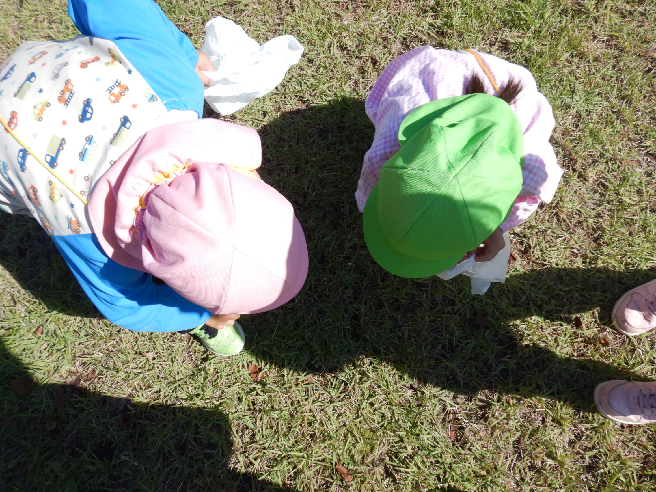 虫を取ろうと姿勢を低くしている子や、図鑑を見ながら虫を見たり、広い芝生の上で走って風を感じたり…