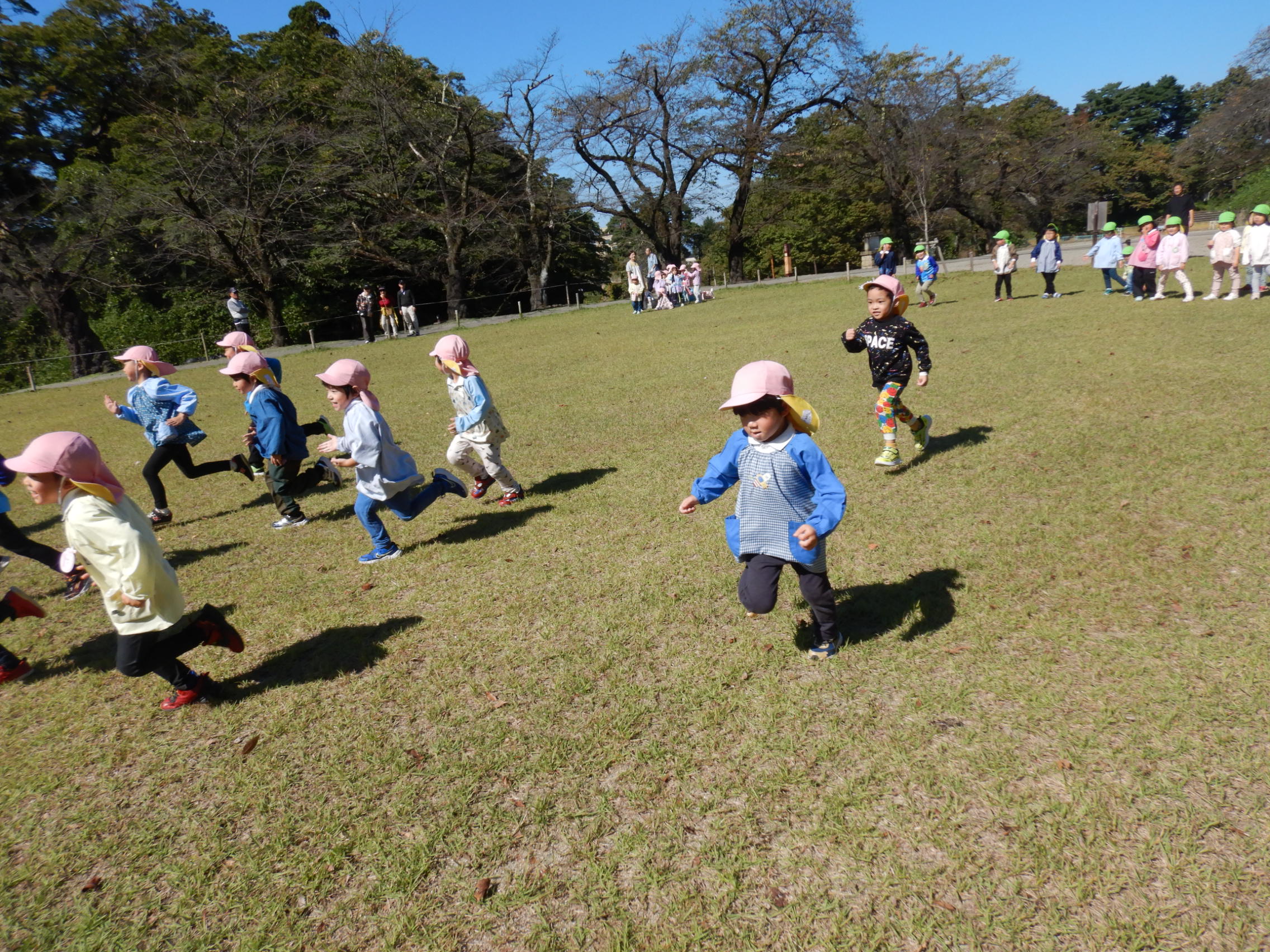 年中組は最後に、よーいどん!をしてきました。「がんばれ~」と友達を応援したり走り終えると「楽しかった~!!」といった声が