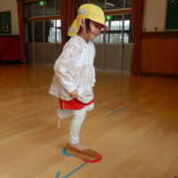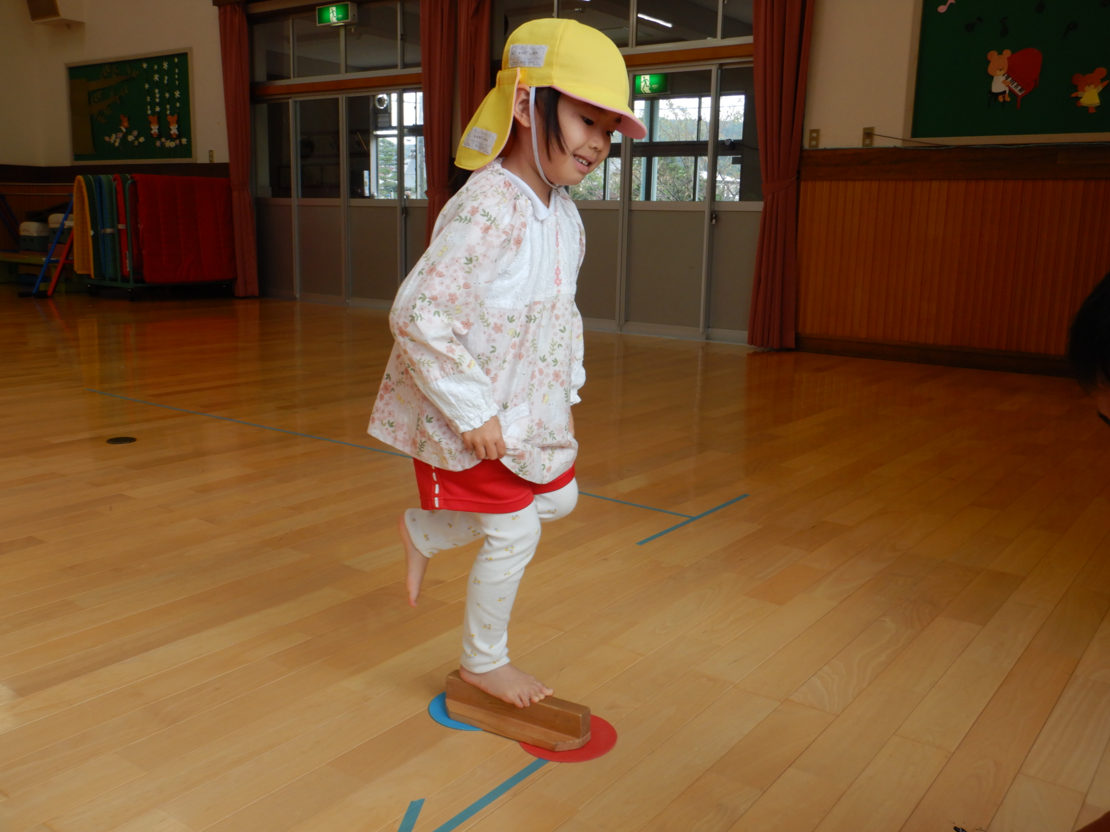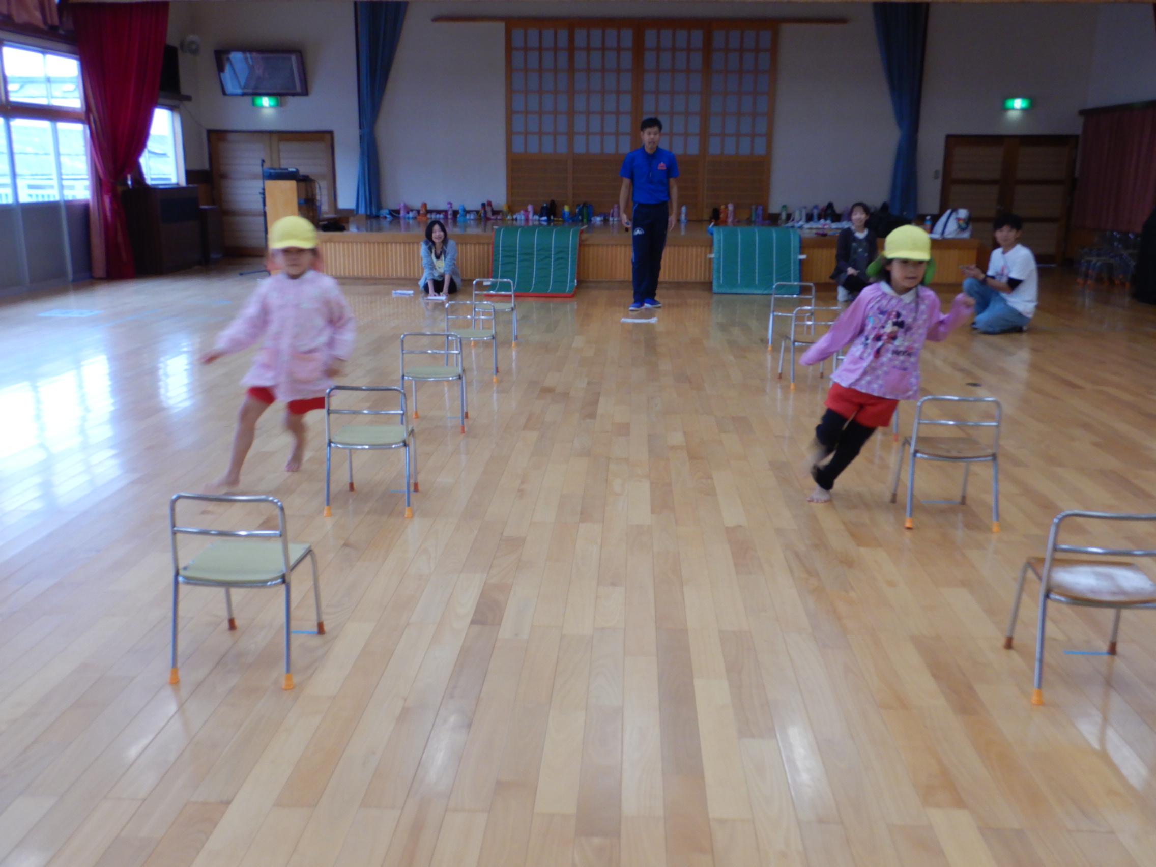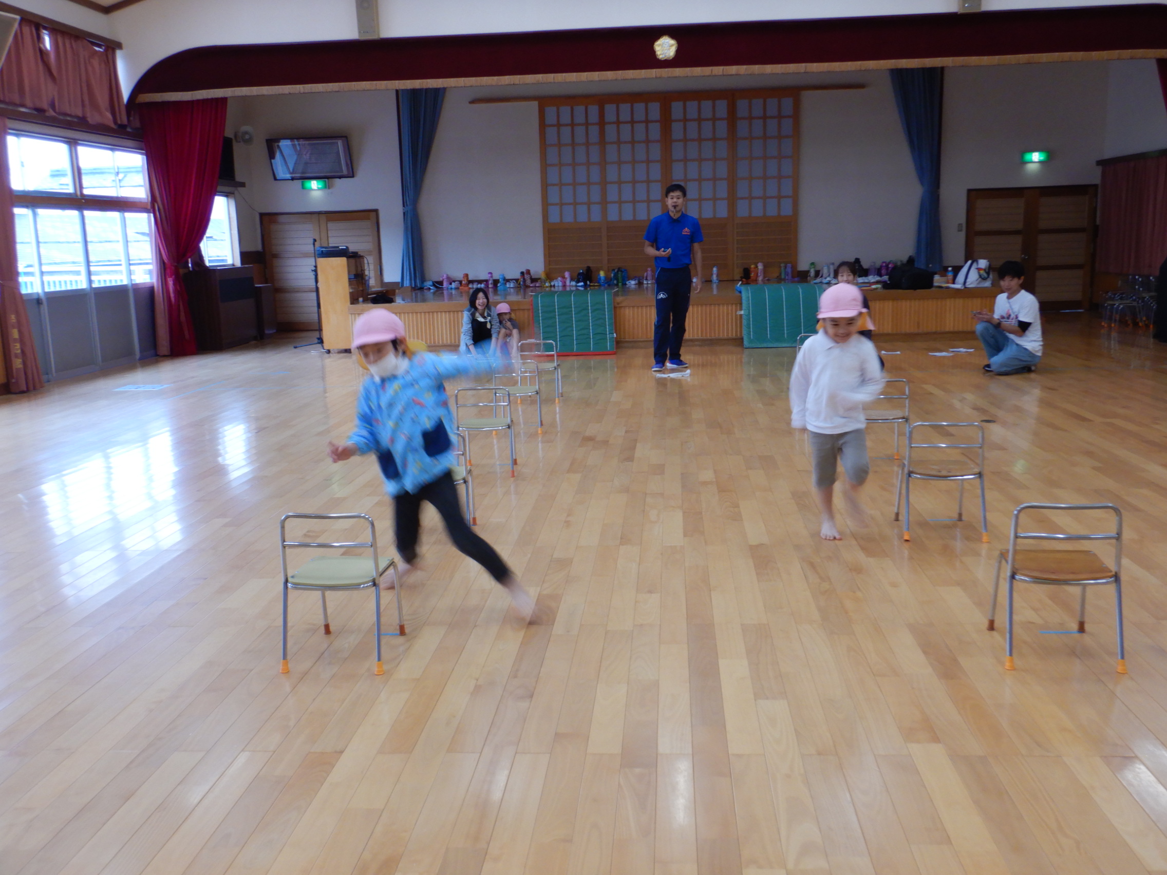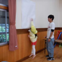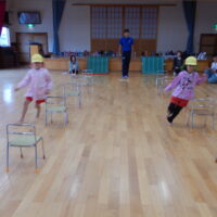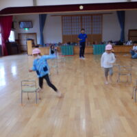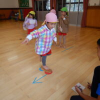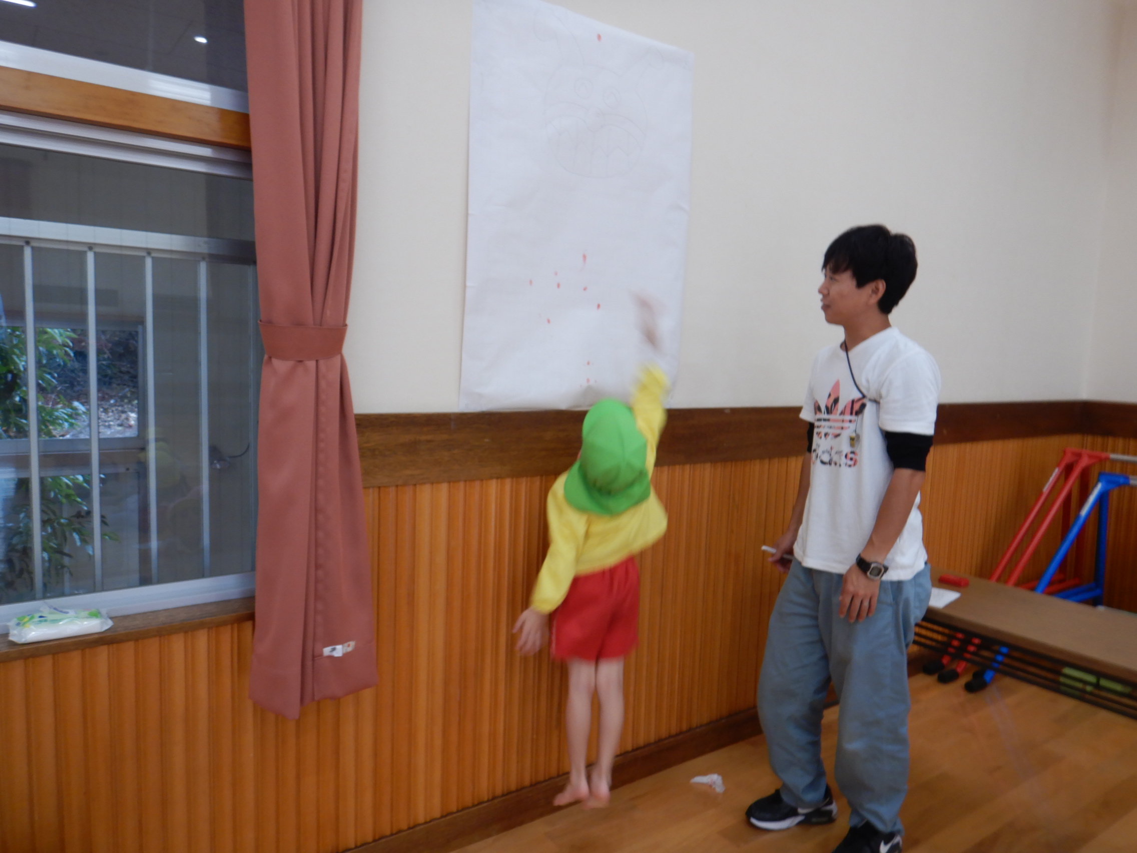 年長児みんなで体育館に集まり、体操の後藤先生と一緒に体力測定を行いました💪