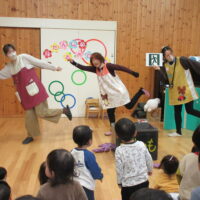 誕生会の後に、避難についての劇を見ました。