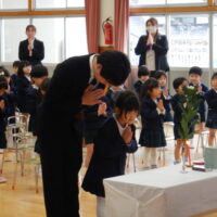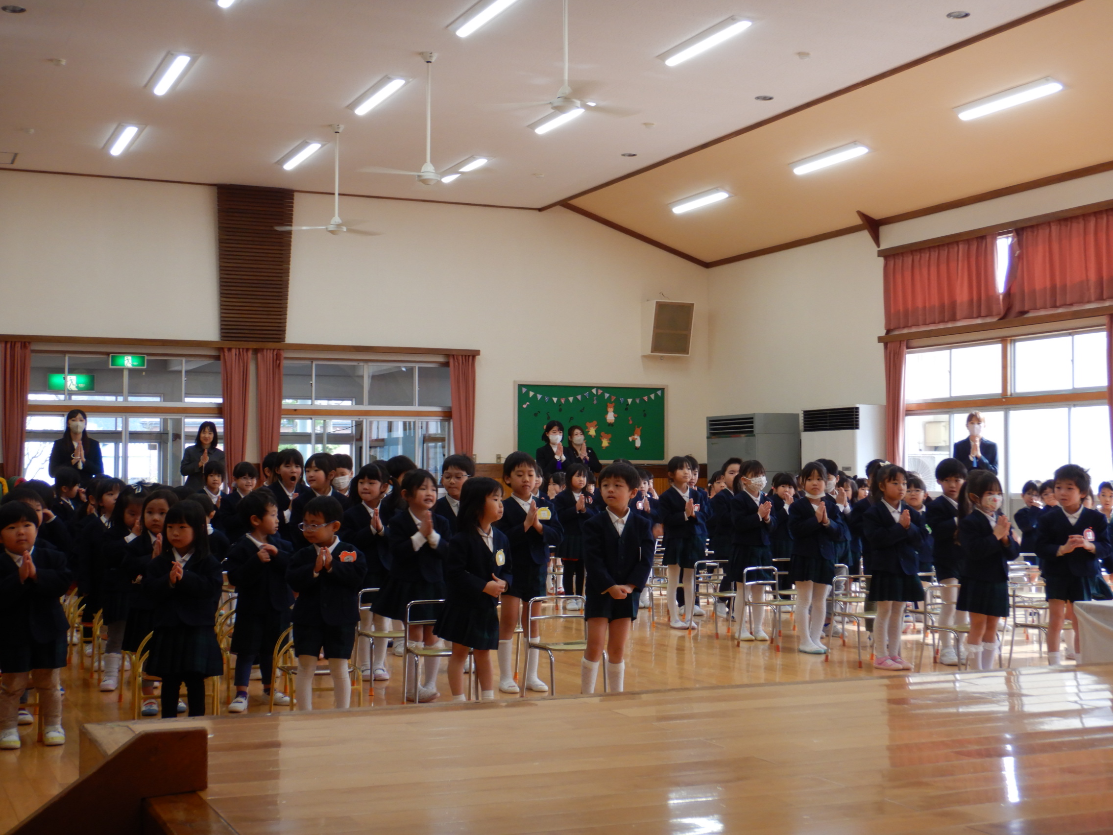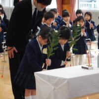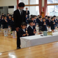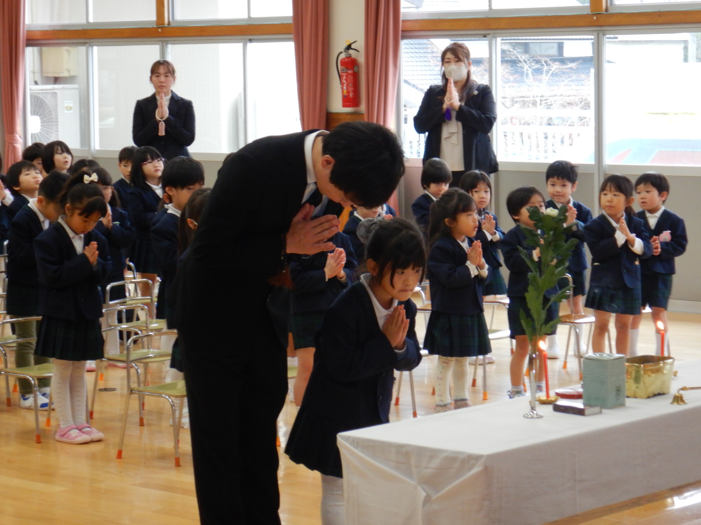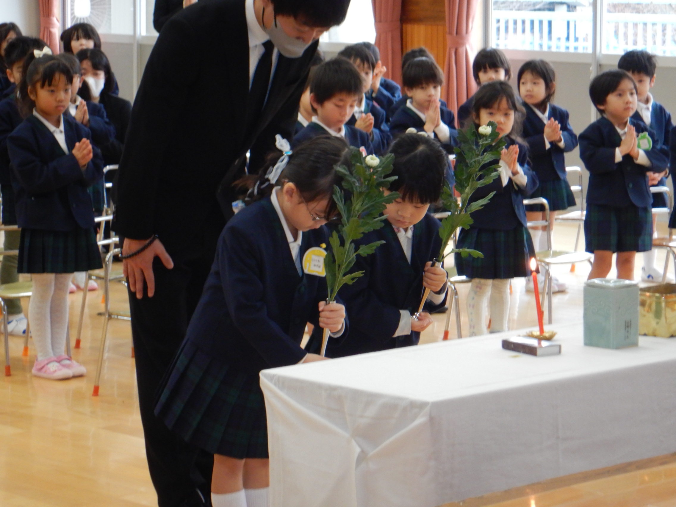 年長組の代表のお友達が献灯・献花・献香を行い、焼香のお友達に合わせてみんなでお参りをしました。