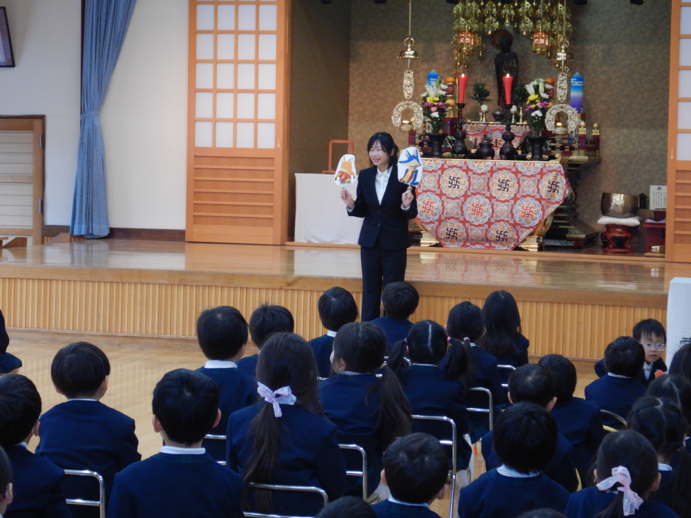 最後にいつも優しく見守ってくださっているほとけさまに感謝の気持ちを込めて「ほとけさまのうた」を歌い、みんなで「ちかいのことば」を唱和しました。