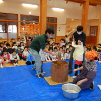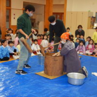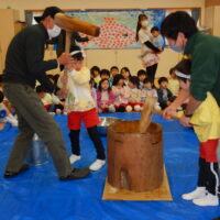 子ども報恩講が終わったあとは、お待ちかねのもちつきです!