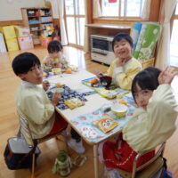 先生からおもちはお米からできていることを教えてもらうと、「え~!!」とビックリした様子😲