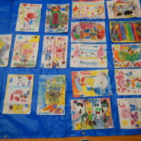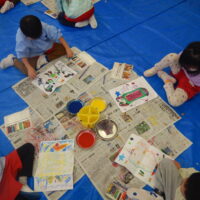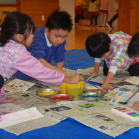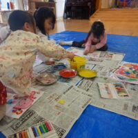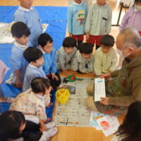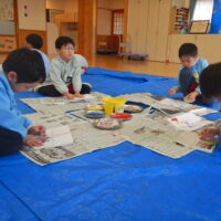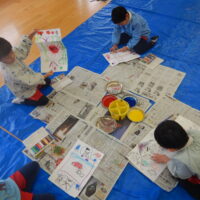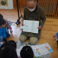 12月8日(月)に「Z折りの絵は楽しいよ!」という題材で馬場先生ご指導のもと、年長児で絵画教室を行いました。