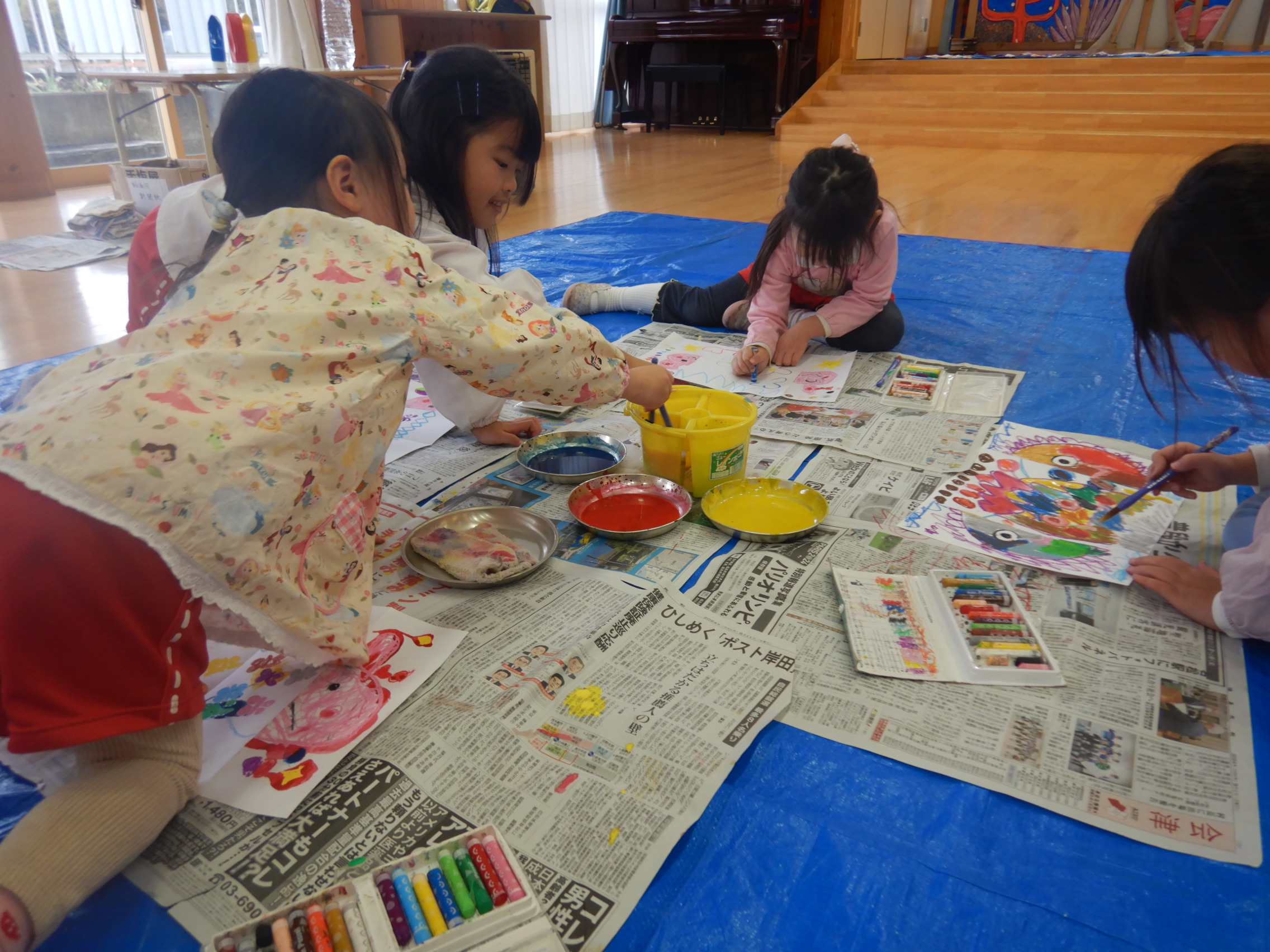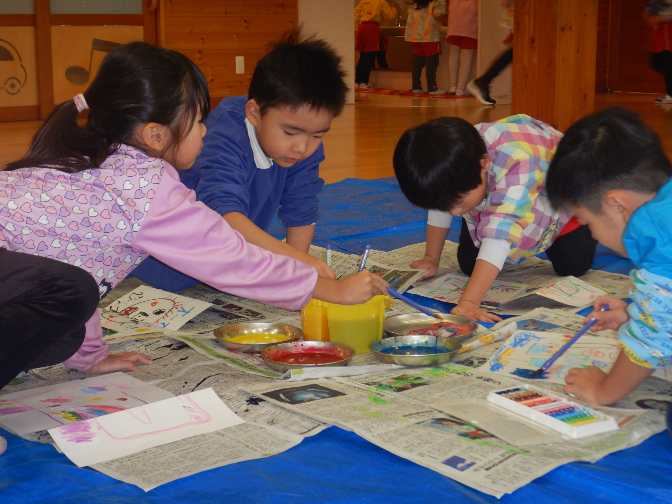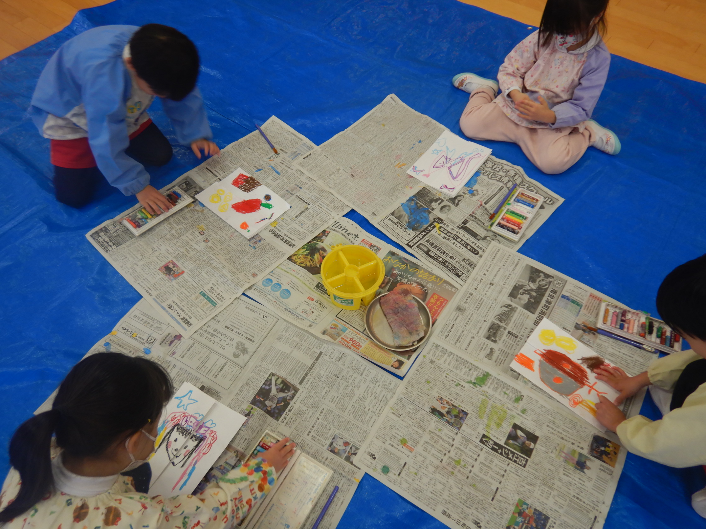 12月8日(月)に「Z折りの絵は楽しいよ!」という題材で馬場先生ご指導のもと、年長児で絵画教室を行いました。