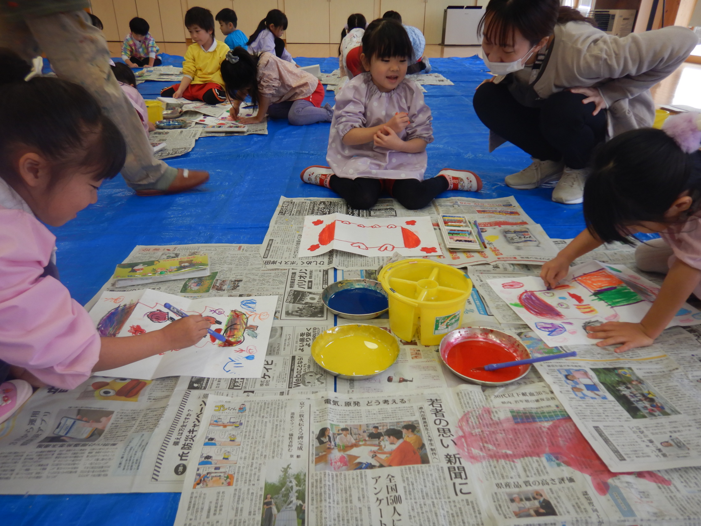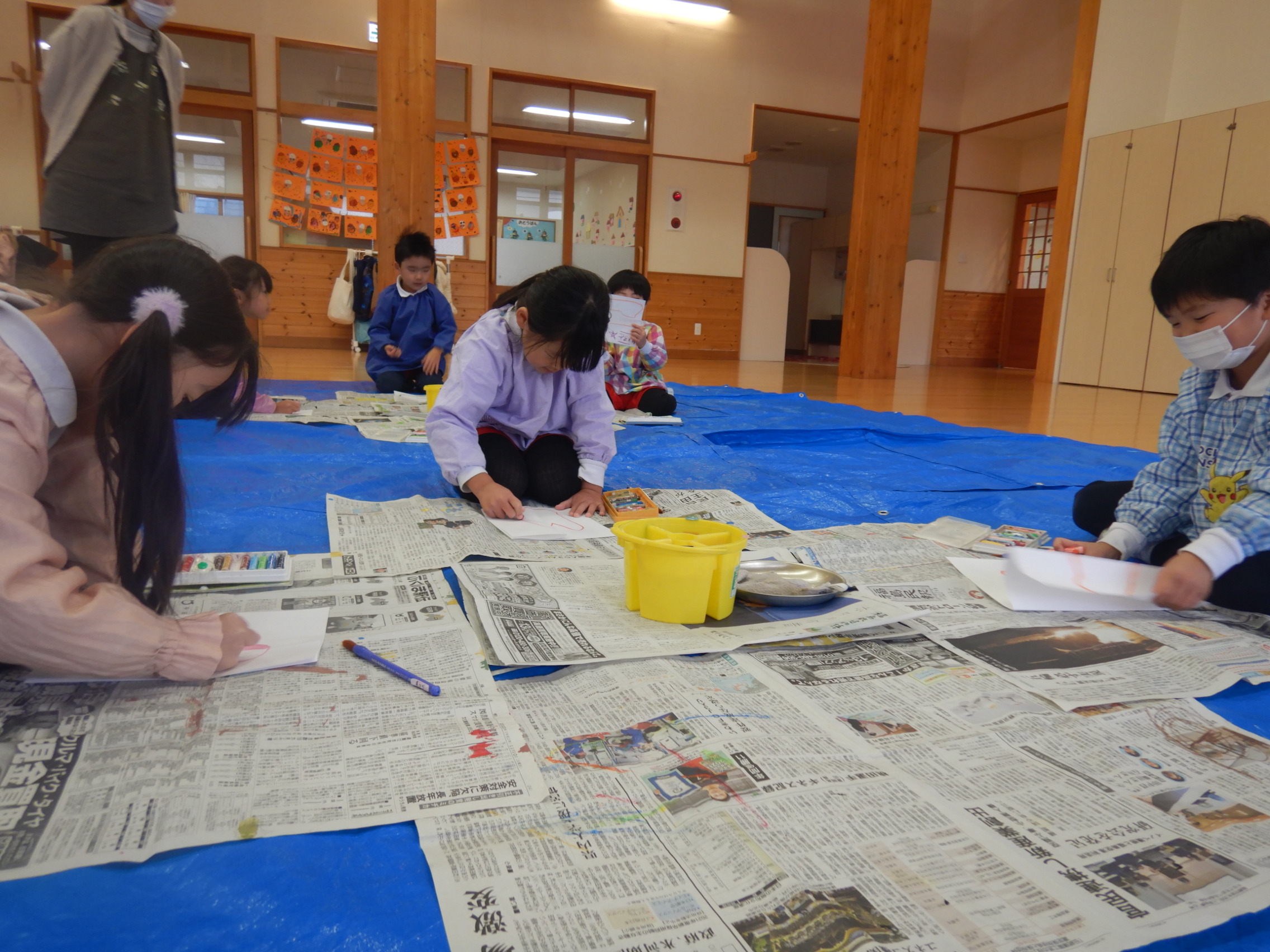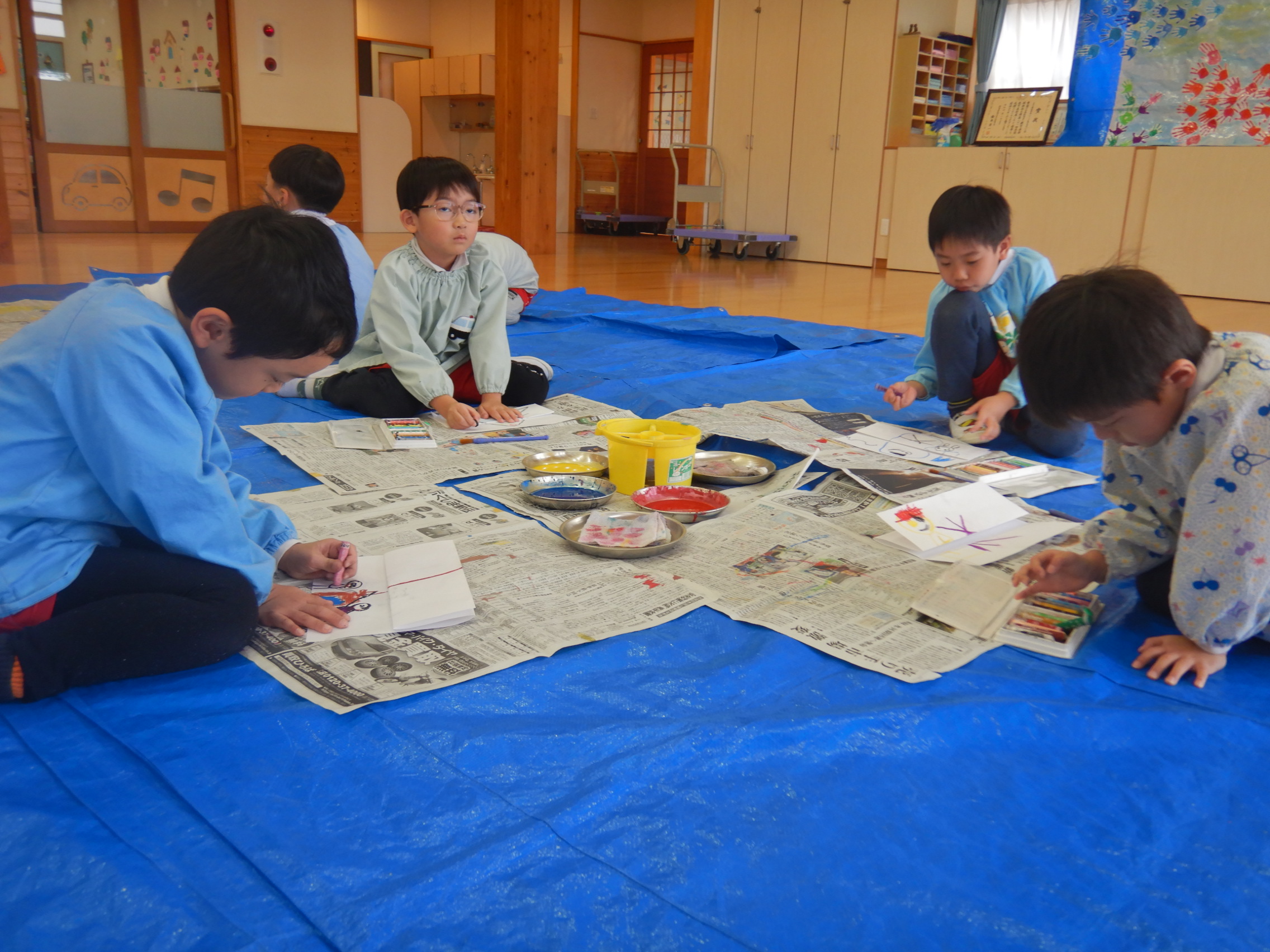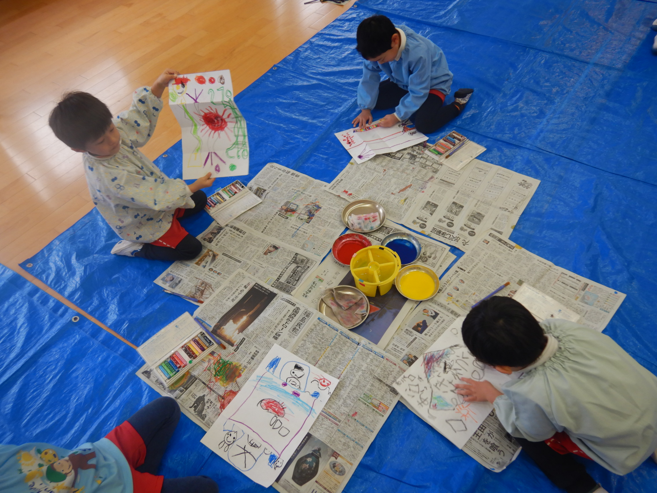 12月8日(月)に「Z折りの絵は楽しいよ!」という題材で馬場先生ご指導のもと、年長児で絵画教室を行いました。