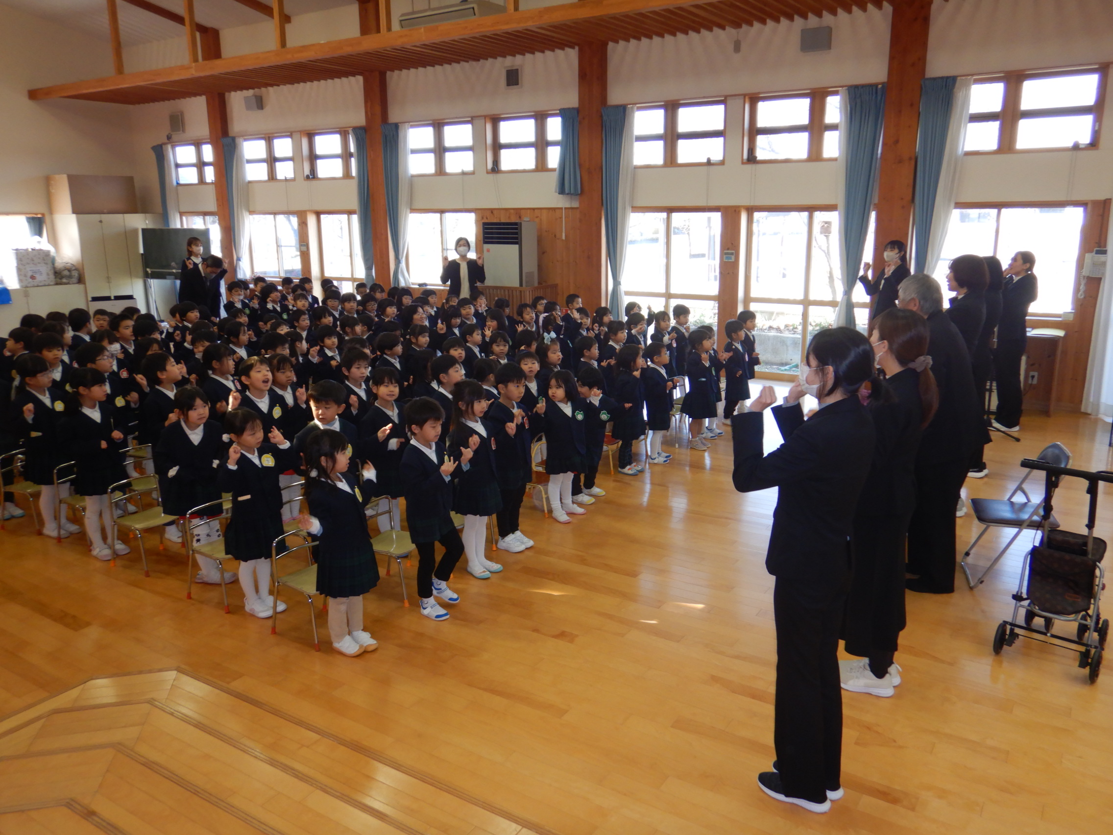 終業式では、園長先生のお話を素敵な姿勢で聞き、冬休みの過ごし方を確認しました。それからみんなで🎵おしょうがつのうたを歌い、冬休み期間を楽しみにしている子ども達です。