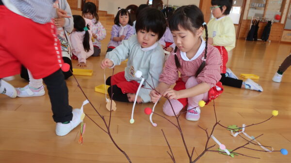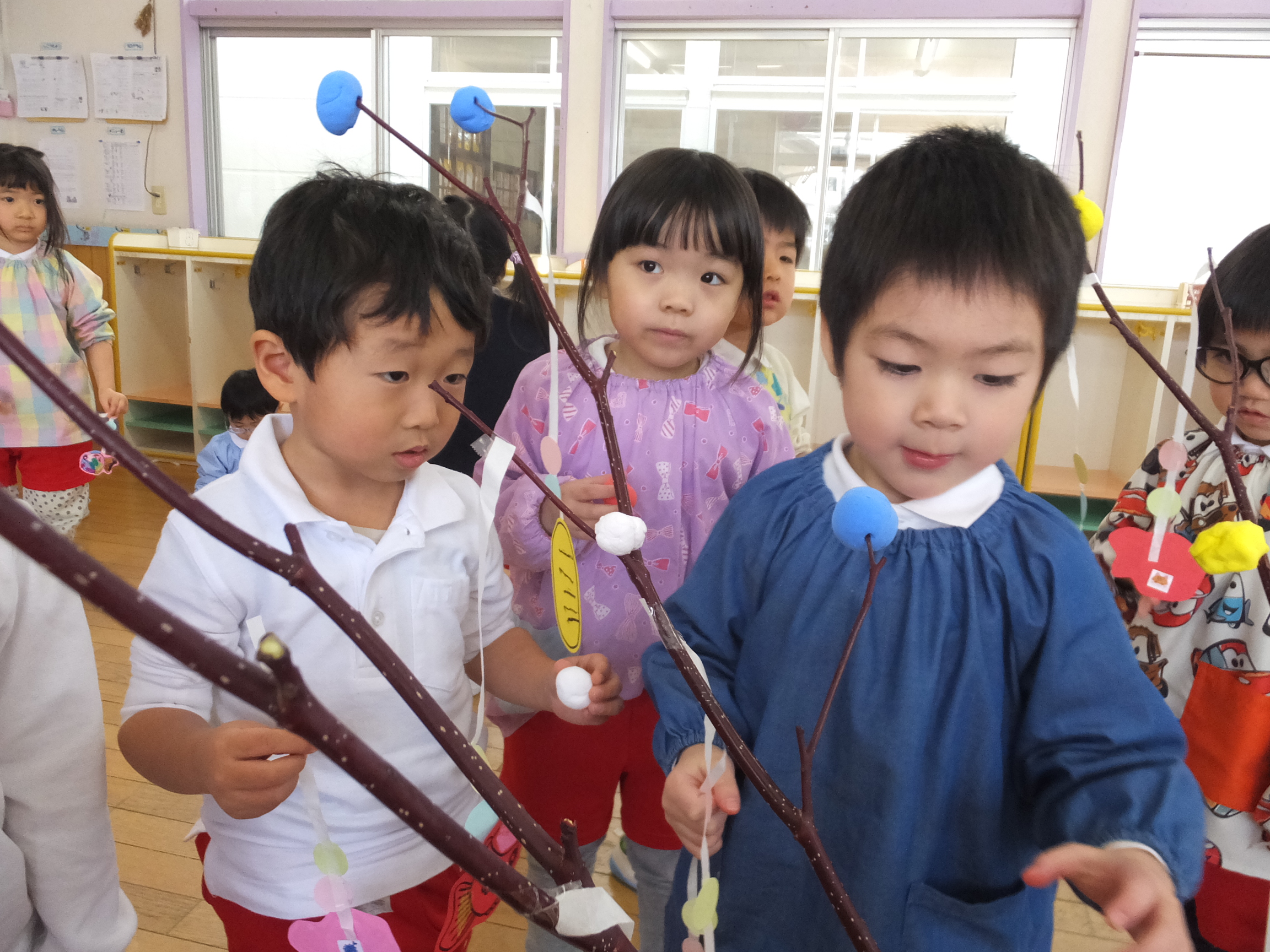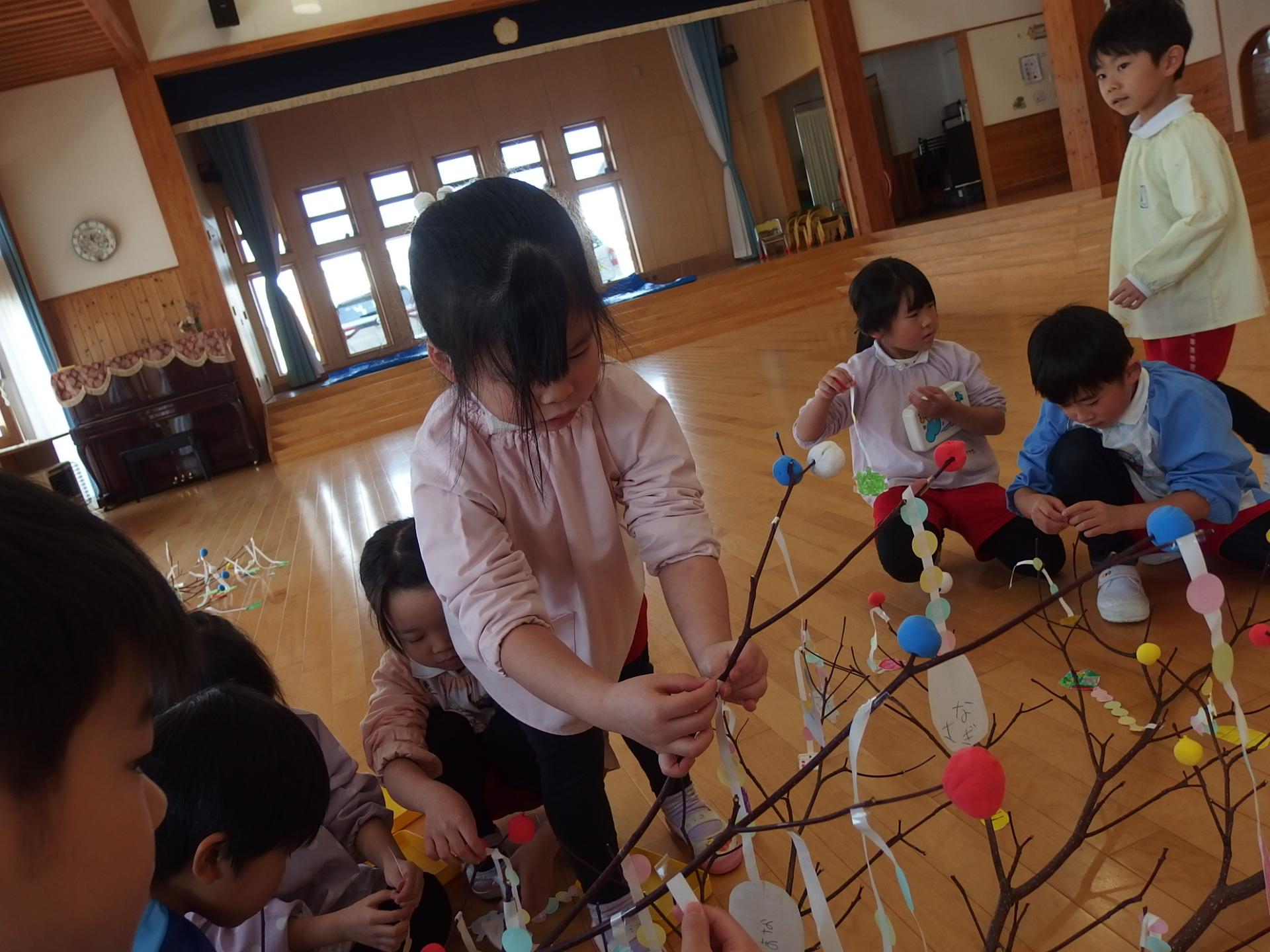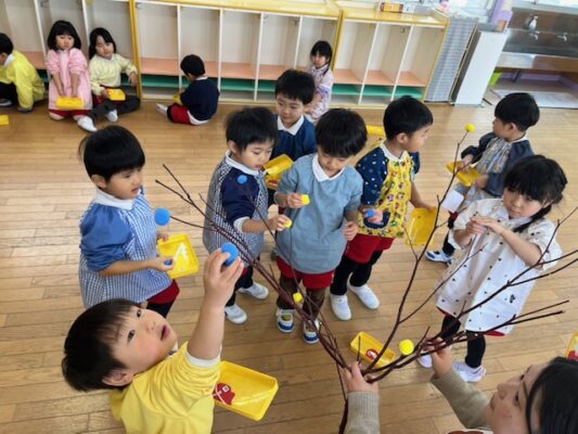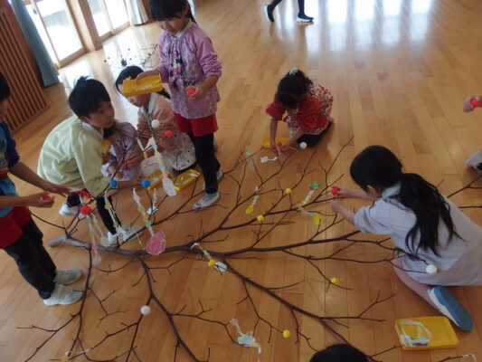 全員の飾りつけが終わると、とても華やかなみず木に大変身🎵