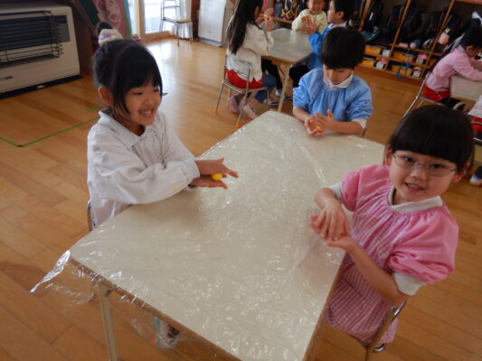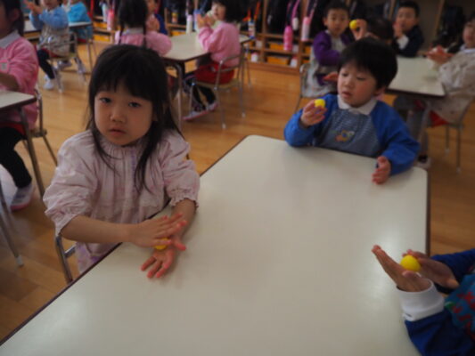 お団子は色とりどりの紙粘土を一人一個、両手を上手に使ってきれいなまん丸に🙆🏻‍♀️🙆🏻