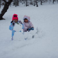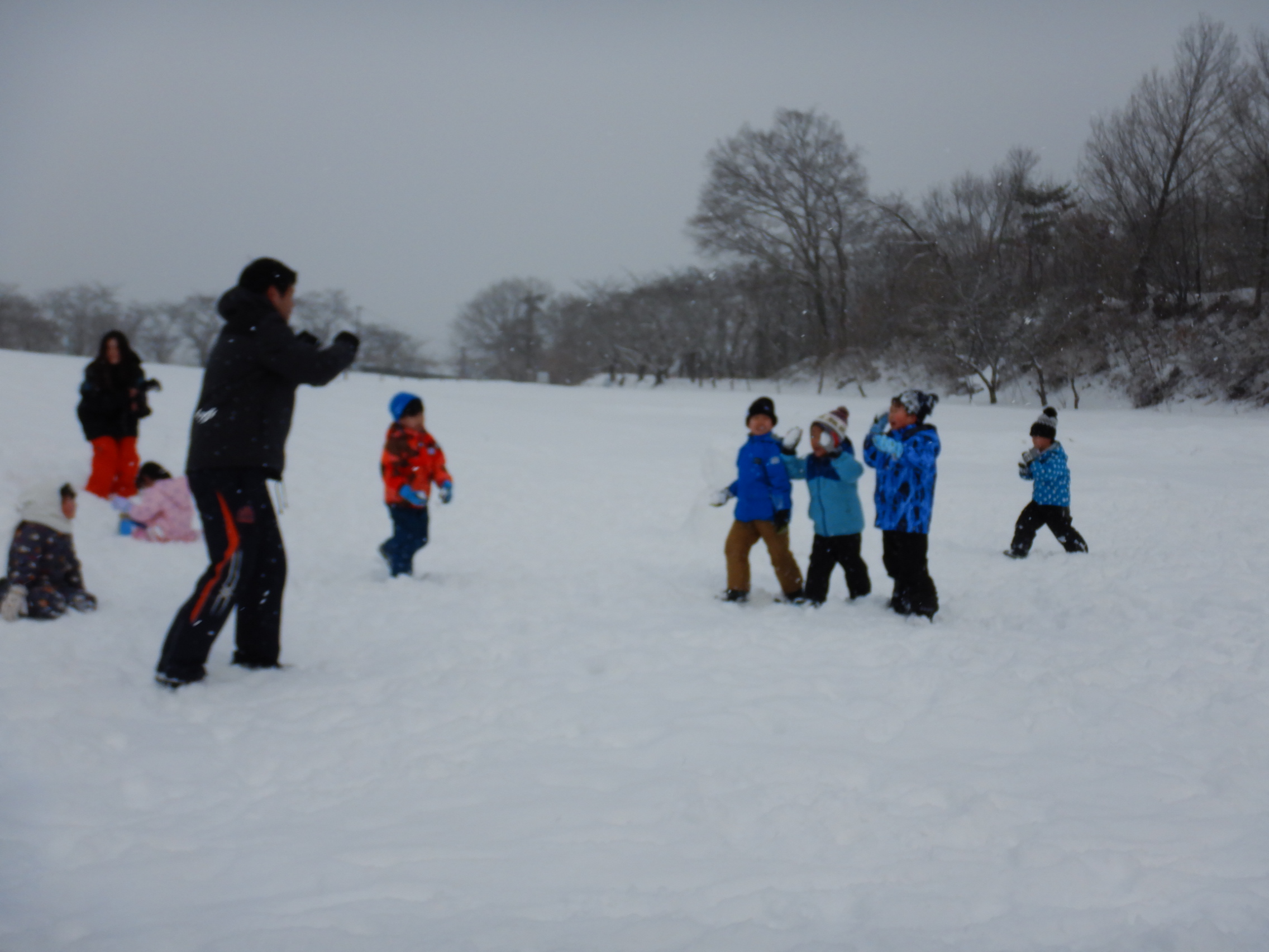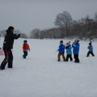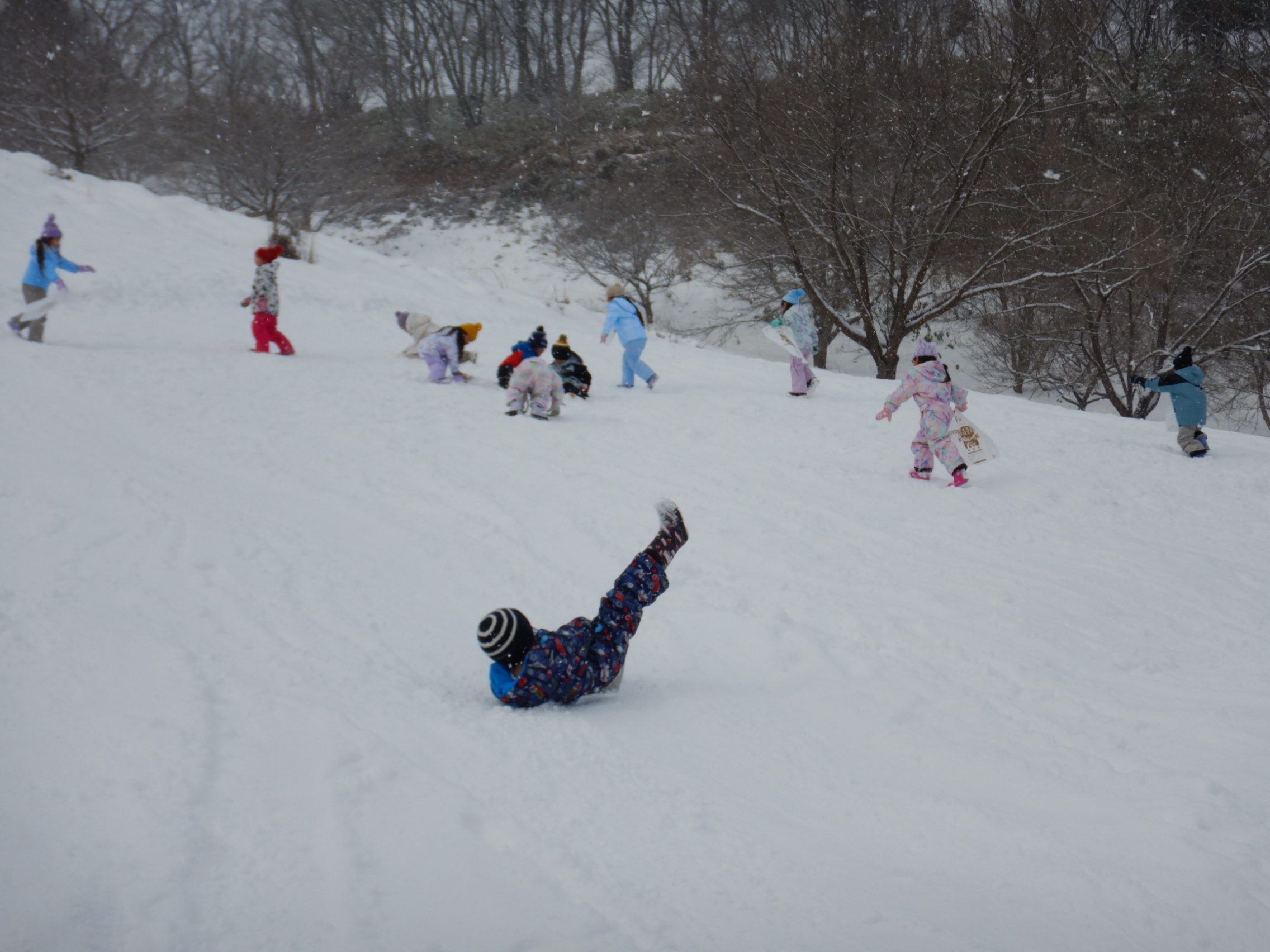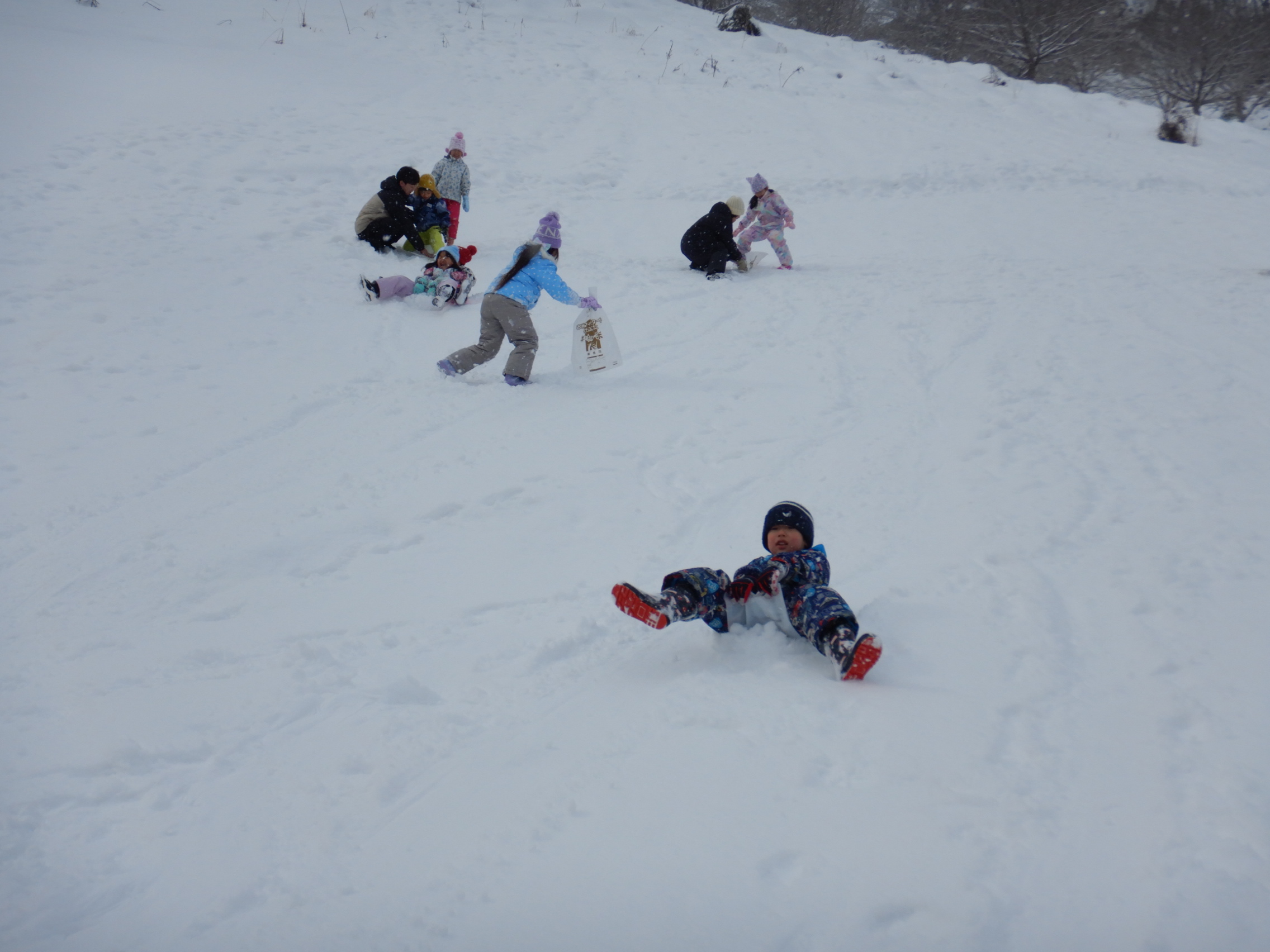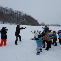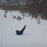 シートを使って滑る子、転がる子、スキーウェアでも滑れることに気付きぺんぎんに変身する子、雪合戦や雪だるまづくりをする子。
