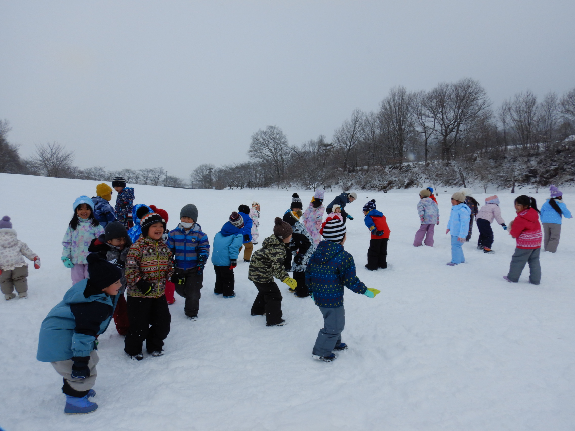 活動中ゆっくりと降る雪に「きれーい」という子どものつぶやきも聞こえるほど穏やかな天候の中活動することができほんとに良かったです😊