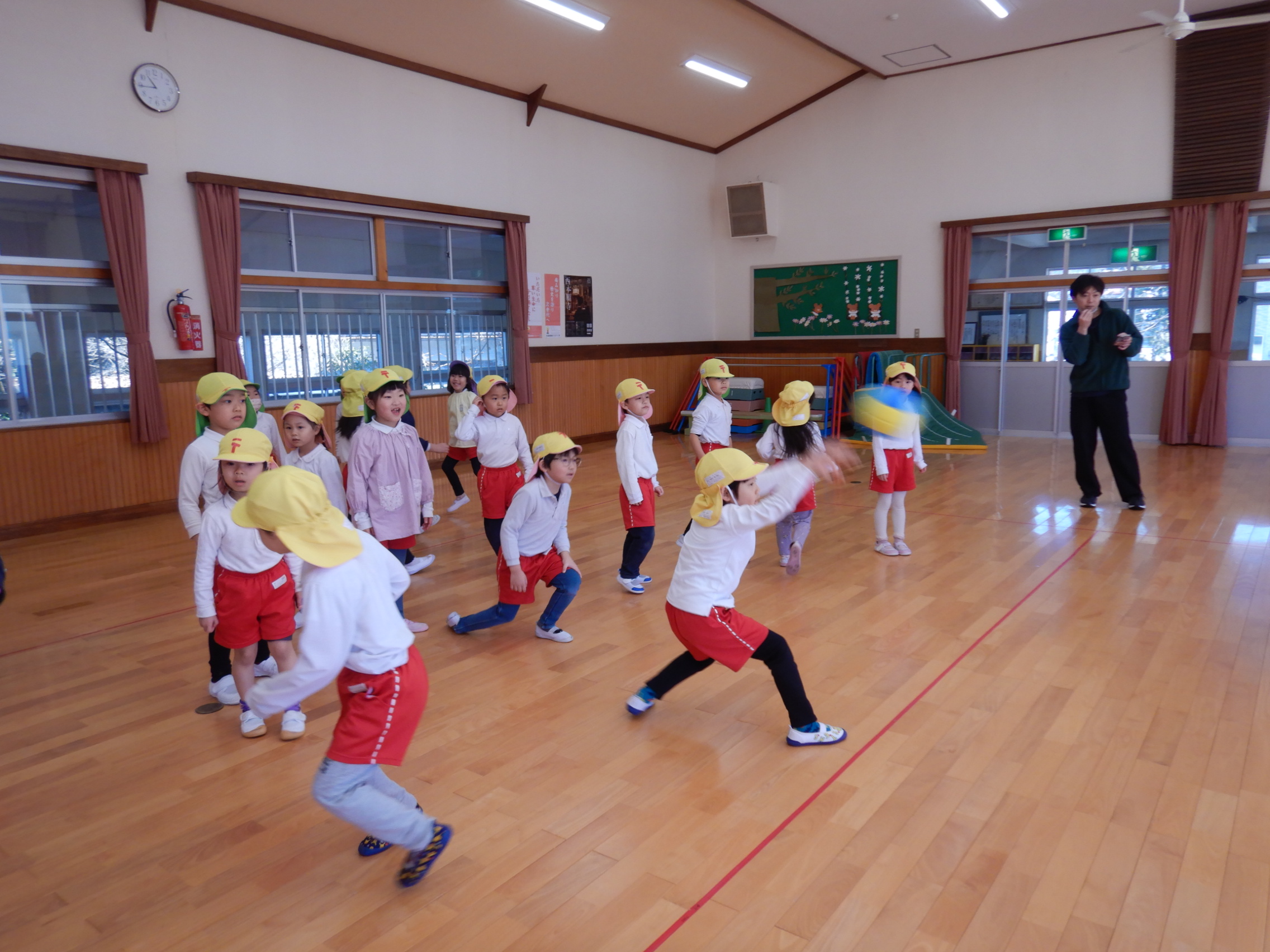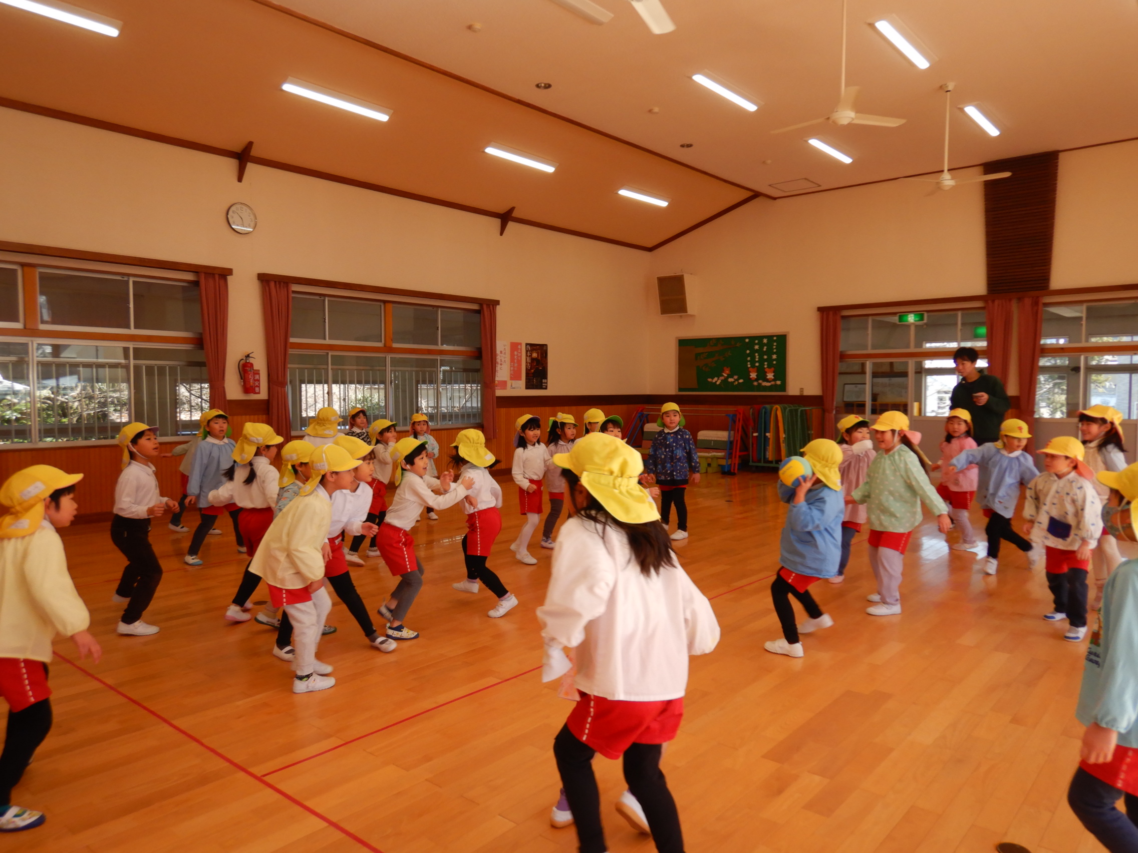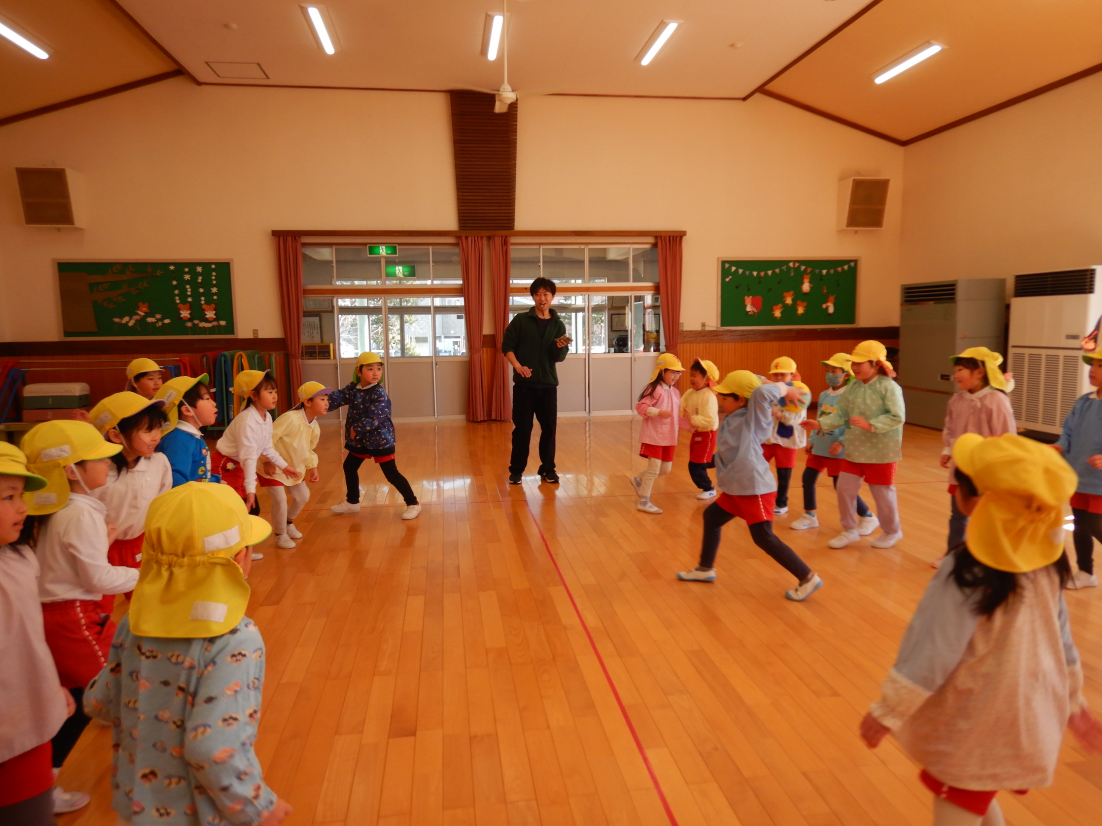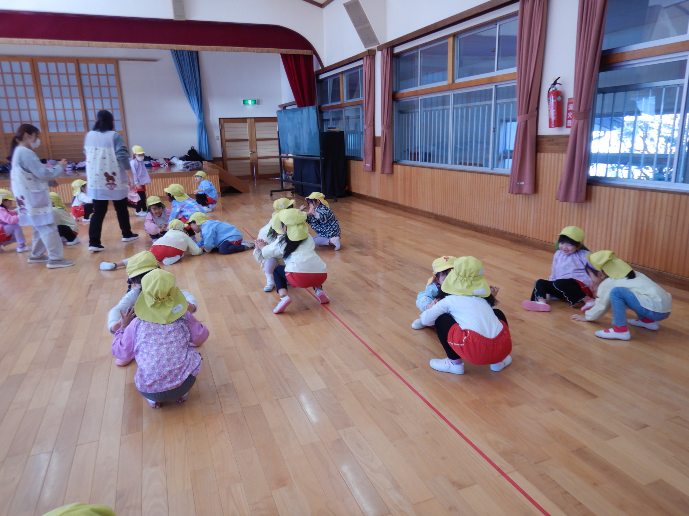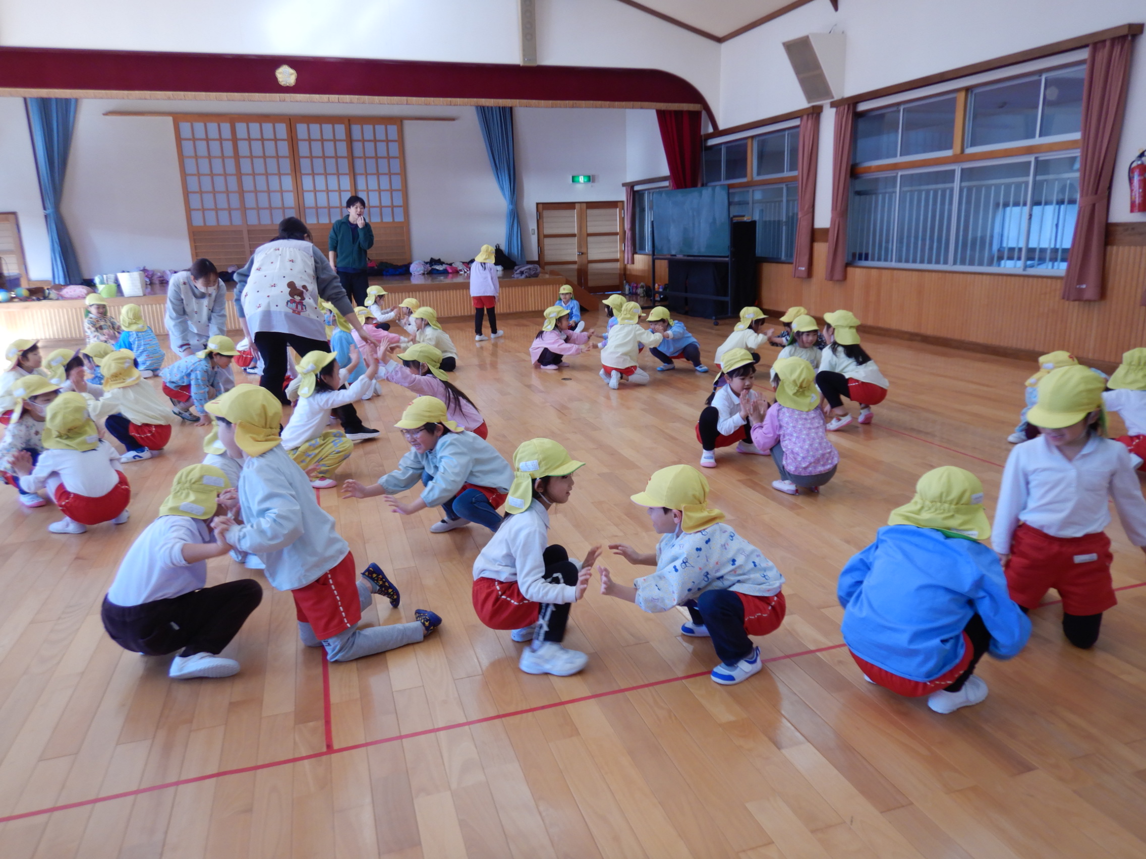 ちょっぴり照れている子もいましたが、準備体操が終わる頃には仲良しに💓