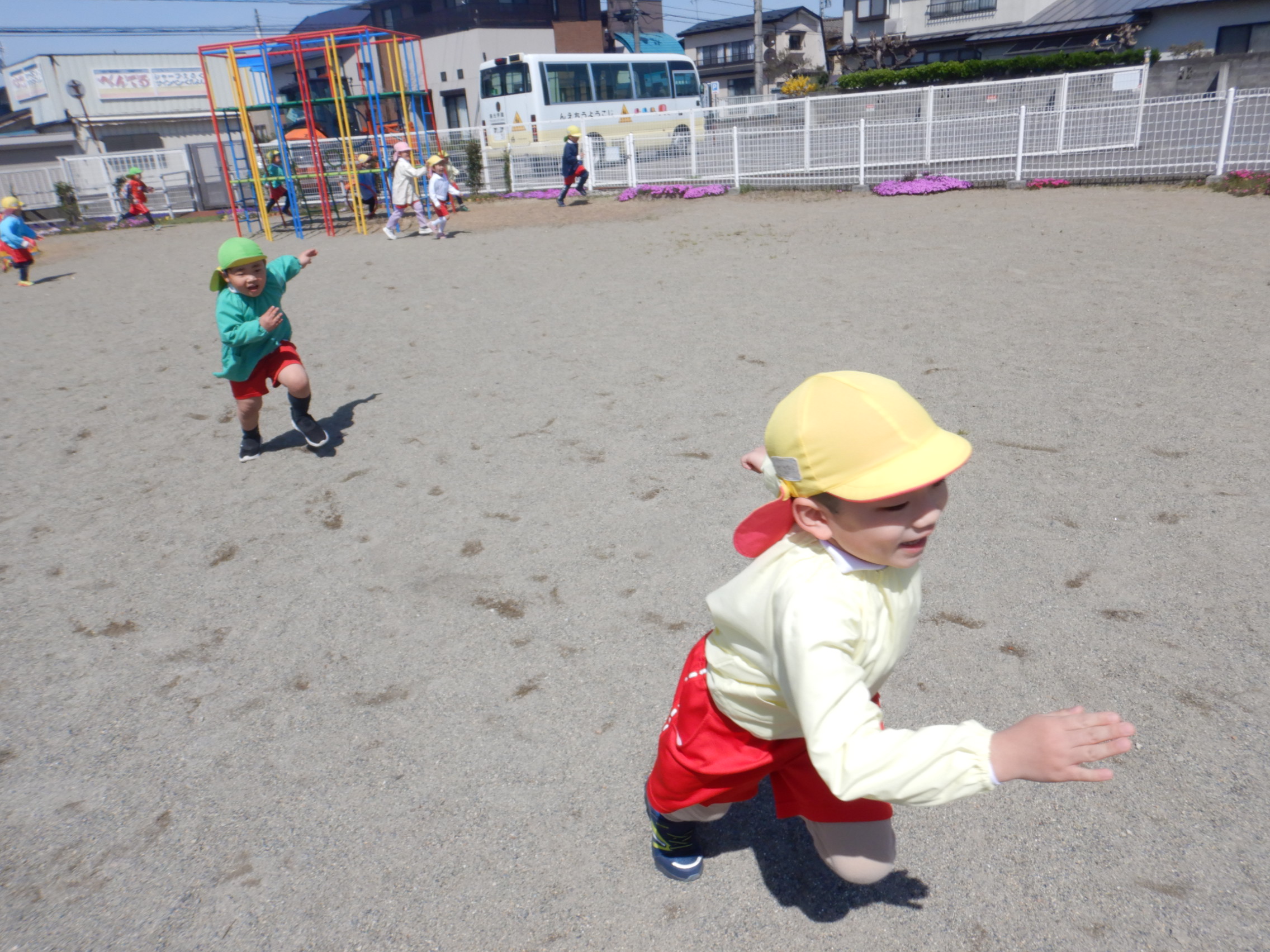 新しい赤色と黄色のバッジを胸に「年長さんになったんだよね」と誇らしげに話す姿が見られ、進級した喜びと期待に胸を膨らませて毎日とても生き生きとした表情を見せてくれます。