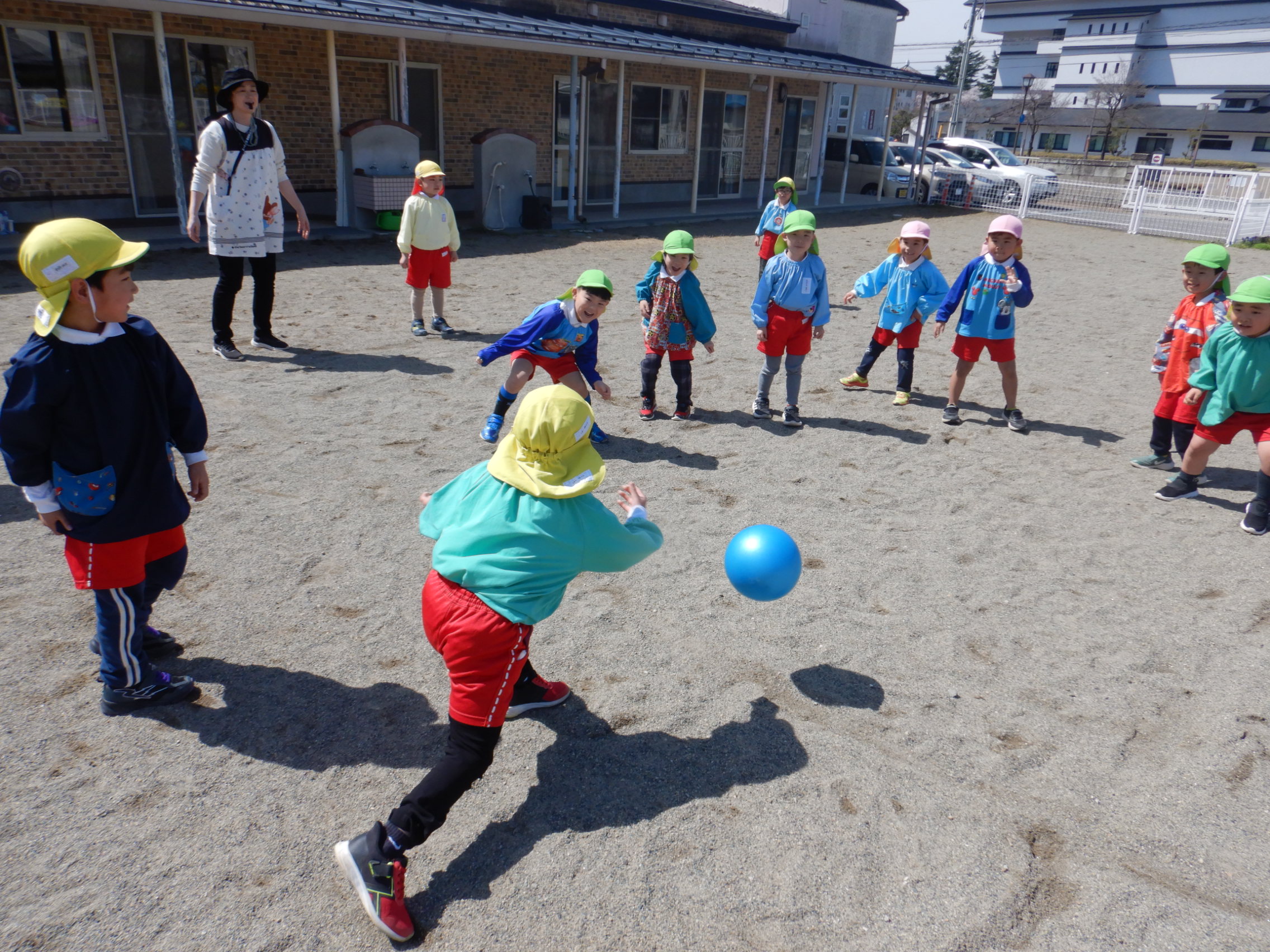 そして、お部屋でお友達と一緒に好きな遊びをしたり、広いグラウンドで力いっぱい駆けまわったり、遊びも全力で楽しんでいます!最近のブームはドッジボールで、少しずつルールを覚えながらスピード感あふれる試合が繰り広げられています。