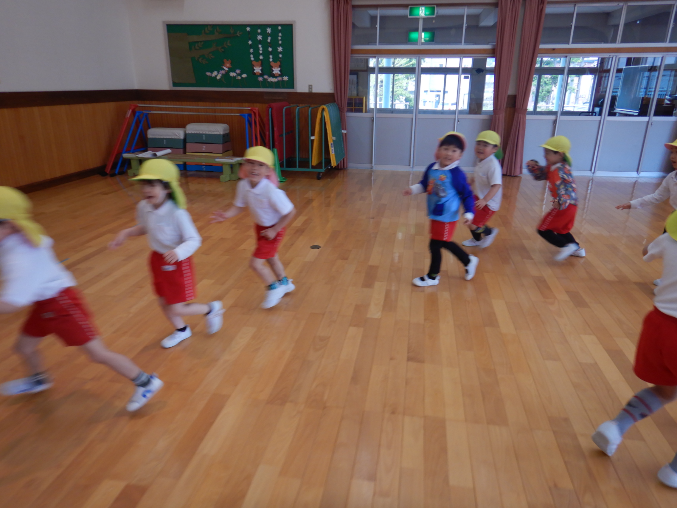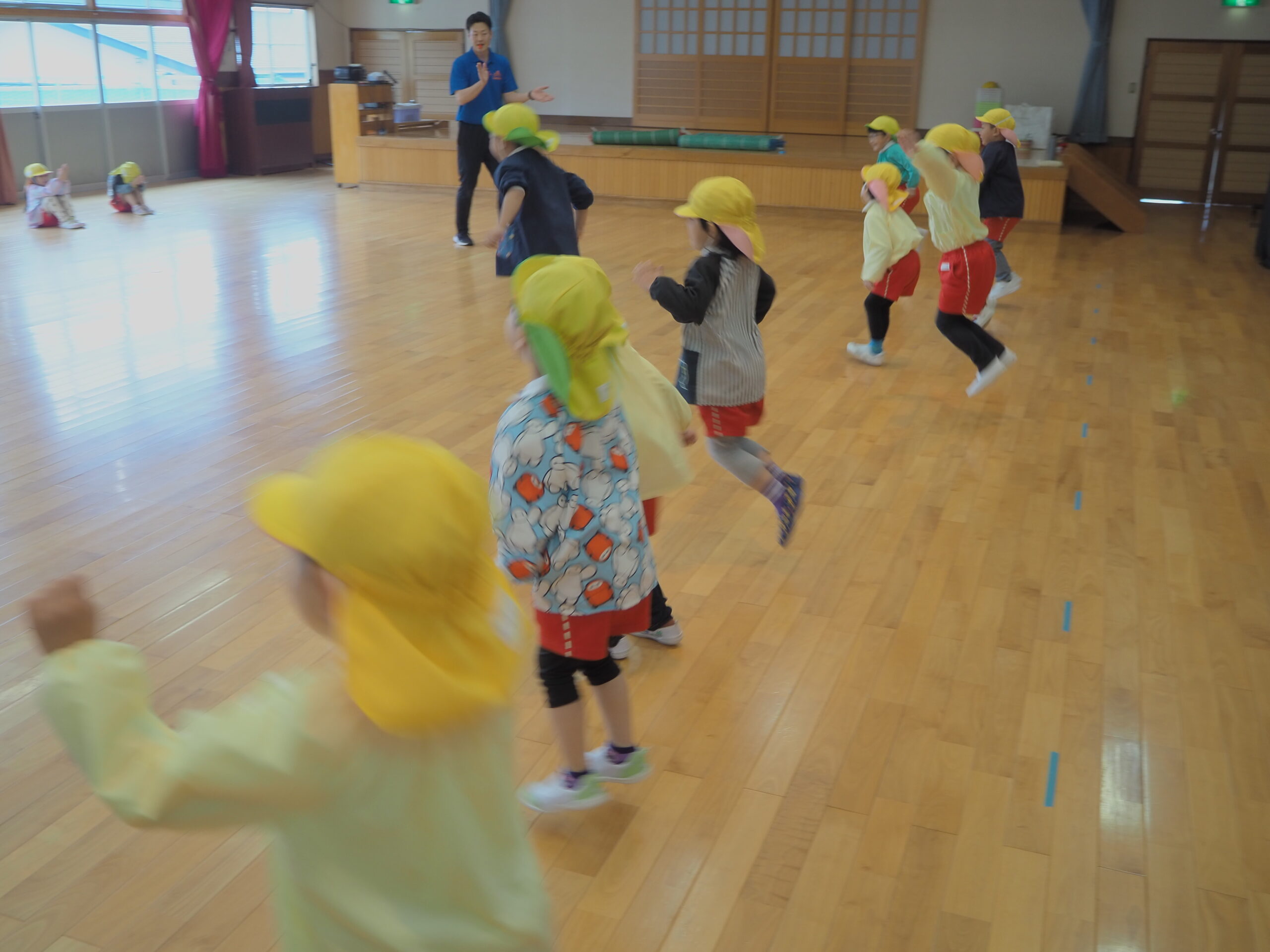 一列になって走り出し、岡部先生の「ストップ!」の号令で好きなポーズをしたり