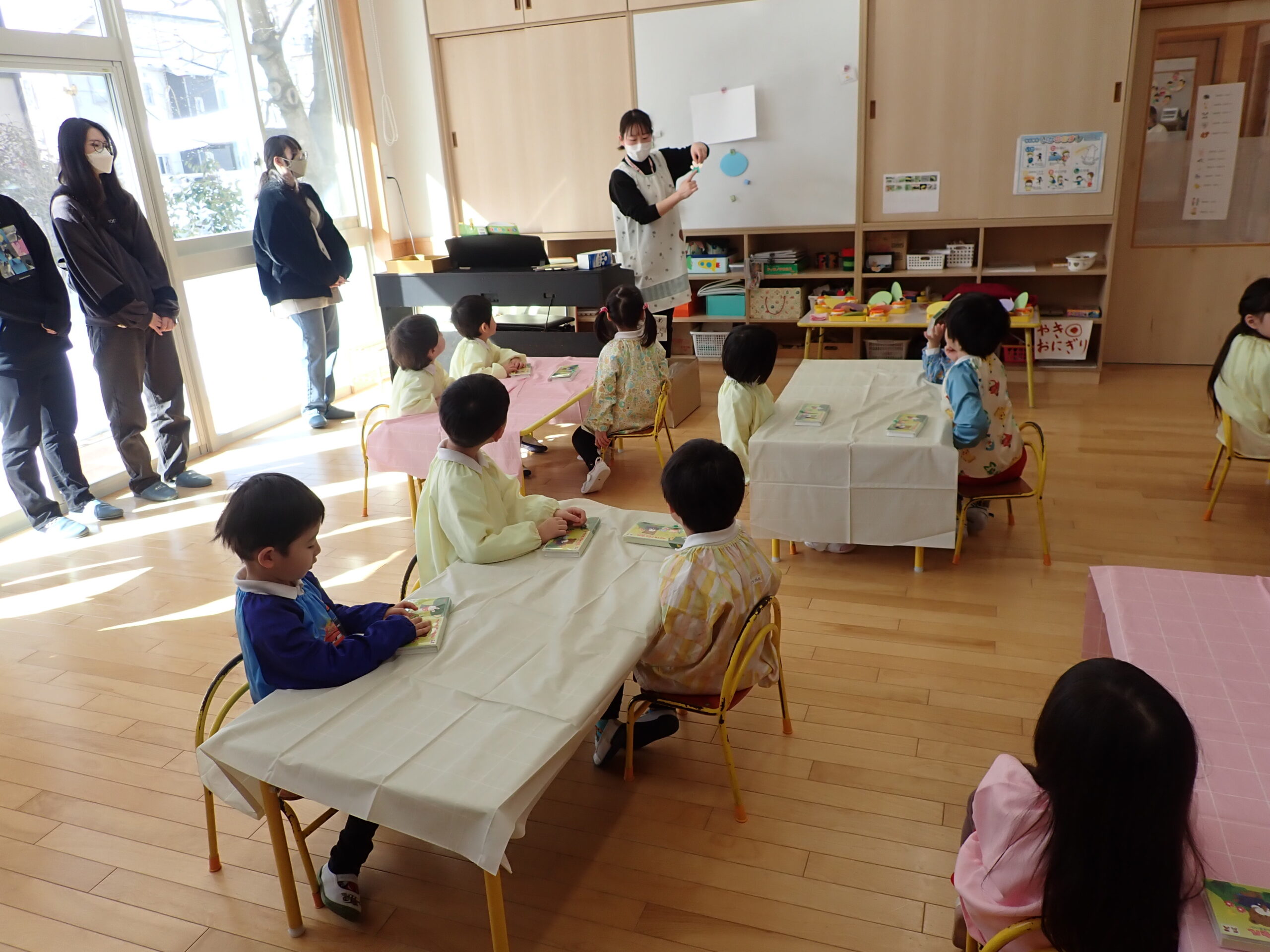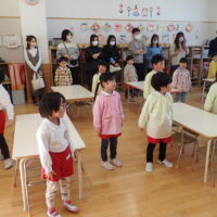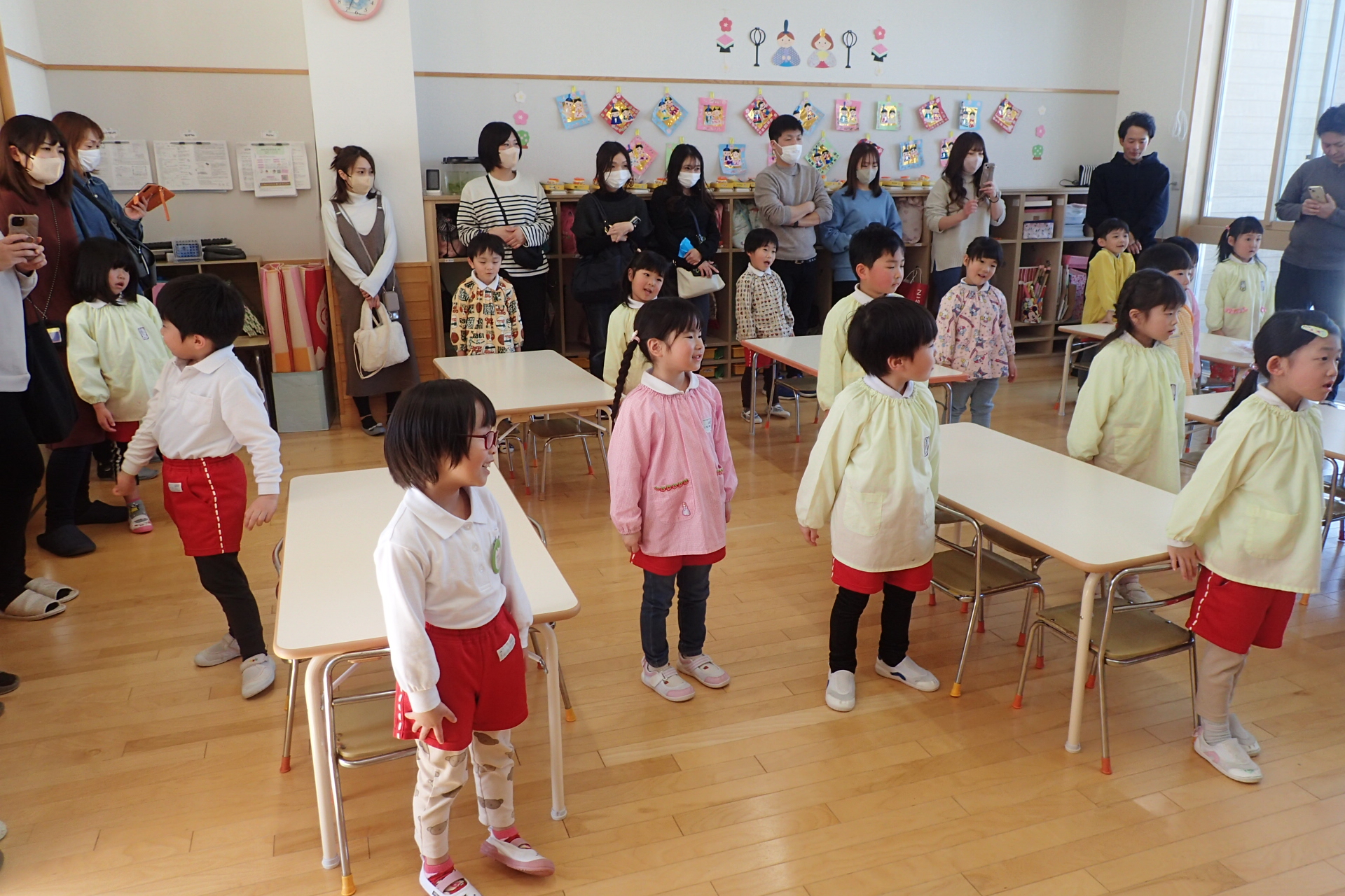 本日2月15日(土)は今年度最後の「保育参観」でした。昨日まで自由登園となり会えないお友だちもいましたが、今日はとってもいい天気のなかお家の人と元気に登園してくれました✨